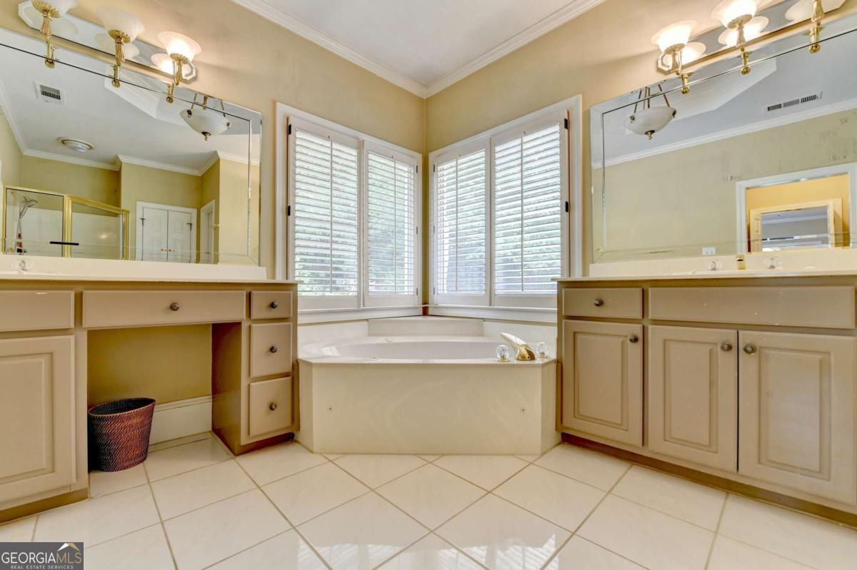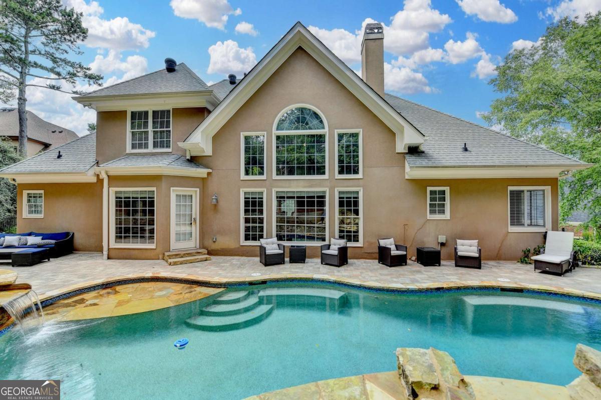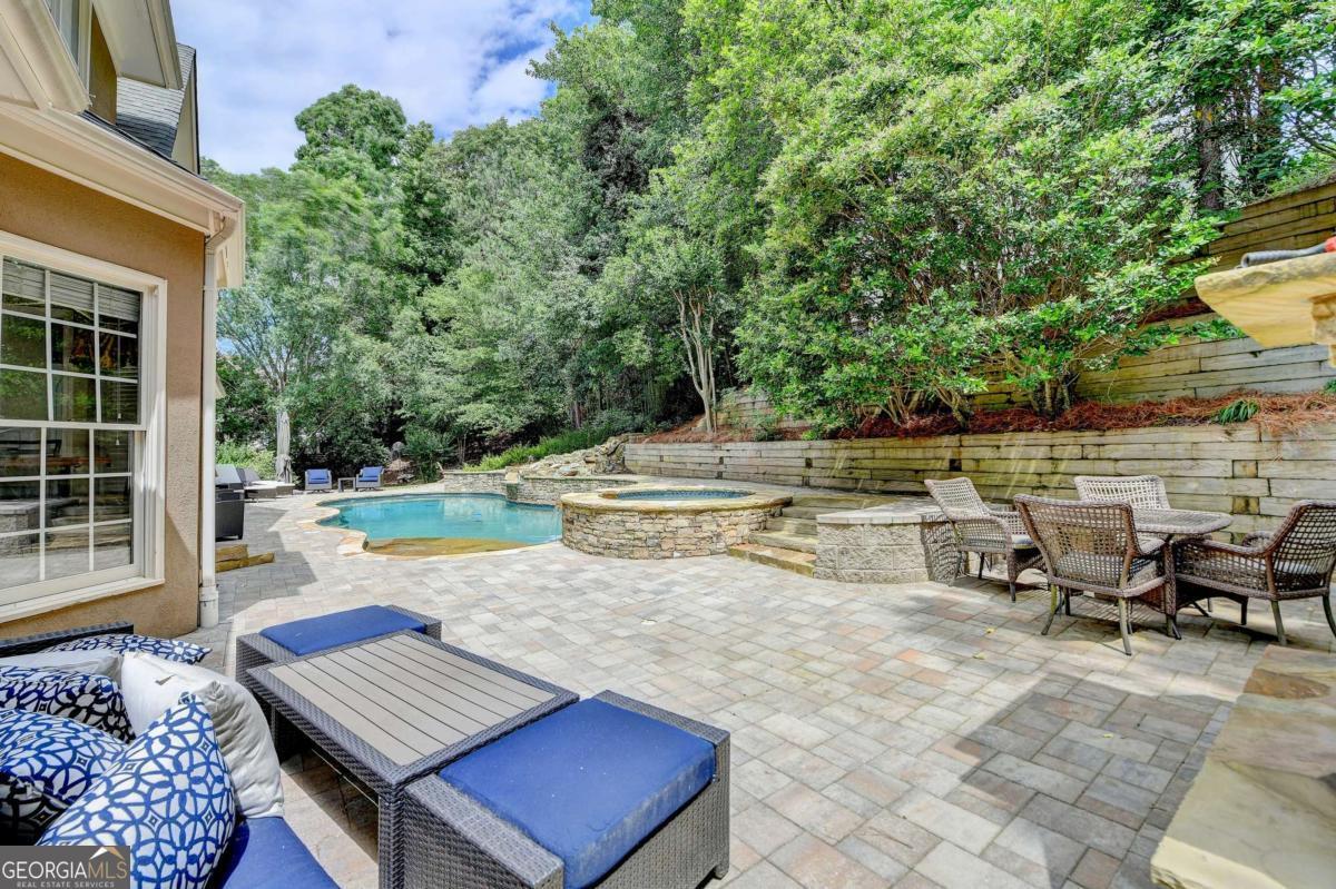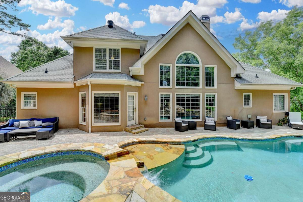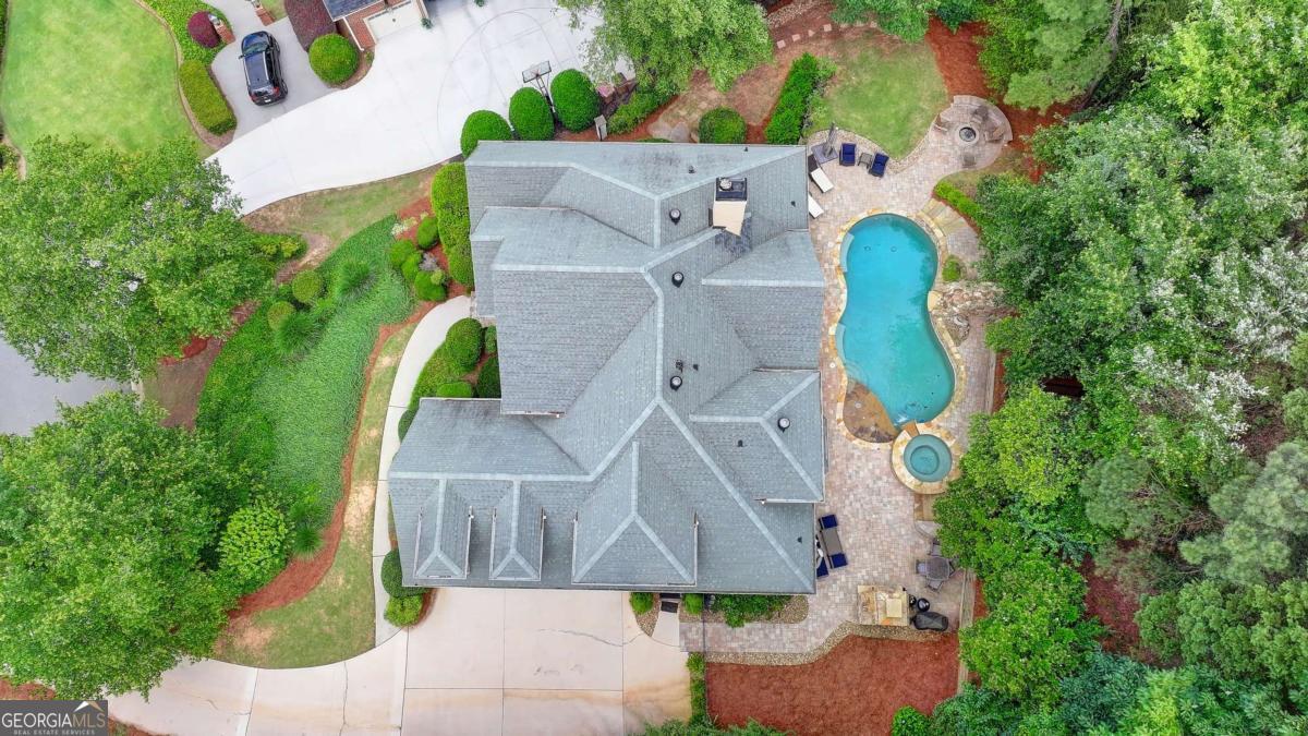 Gorgeous 5 bed/4.5 bath MASTER-ON-MAIN home with HEATED SALTWATER POOL and finished TERRACE LEVEL on a private, CUL-DE-SAC. Step through the arched stone entryway into the 2 story hardwood foyer with double tray ceiling. To your right is the family-sized DINING ROOM with crown and picture frame molding, bayed window and hardwood floor. French doors open to the elegant OFFICE with custom cabinetry, vaulted ceiling and convenient door to the master-on-main bedroom! The grand FAMILY ROOM features a 2 story vaulted ceiling, marble fireplace, custom built-ins and wall of windows overlooking the stunning POOL and private backyard. The gourmet kitchen is perfect for the family chef and features custom cabinetry, a large eat-in island, quartz countertops, stainless steel appliances, a gas cooktop, DOUBLE WALL OVEN, tile backsplash, hardwood floor, WALK-IN PANTRY and work station. This large open plan space also features a bayed BREAKFAST ROOM with door to the expansive patio and luxurious POOL! The romantic MAIN FLOOR MASTER suite features a double tray ceiling and a spa bath with tile floor and shower, double vanity, custom cabinetry, WHIRLPOOL TUB and HIS-AND-HERS closets with built-in cabinetry. A convenient mud/laundry room with SINK and a pretty powder room complete the main level. Upstairs are FOUR large bedrooms, each with crown molding. These large bedrooms share 2 tiled Jack-and-Jill tiled bathrooms; 1 with a double vanity and custom cabinetry. The finished terrace level features wood floors, a family room, a large GAME room, bar with tray ceiling, stain-grade cabinetry, wine fridge, bar fridge and beer KEGORATOR. A MEDIA ROOM, EXERCISE area and huge built-in SAUNA, full bathroom with TILE FLOOR and shower complete this expansive space! This exquisite home's outdoor spaces are sublime! Beautifully designed to create numerous entertaining and relaxing areas! HEATED SALTWATER POOL with a large hot tub and stone pavers, stack stone FIREPLACE, cozy FIREPIT and spacious patio areas. The backyard is completely PRIVATE and beautifully landscaped! This is an incredible opportunity to own a home in the prestigious GOLF/SWIM/TENNIS/GATED Laurel Springs community! Along with being in the SOUGHT-AFTER LAMBERT HIGH SCHOOL district, it features 24-HOUR SECURITY, a private JACK NICKLAUS GOLF COURSE, clubhouse with fitness center, TENNIS courts and tennis team, pickleball courts, swimming POOL with kid's pool and waterslide, swim team, playground area and so much more! The perfect place to call home! ***This home is being sold AS-IS and no epairs will be made by Seller***
