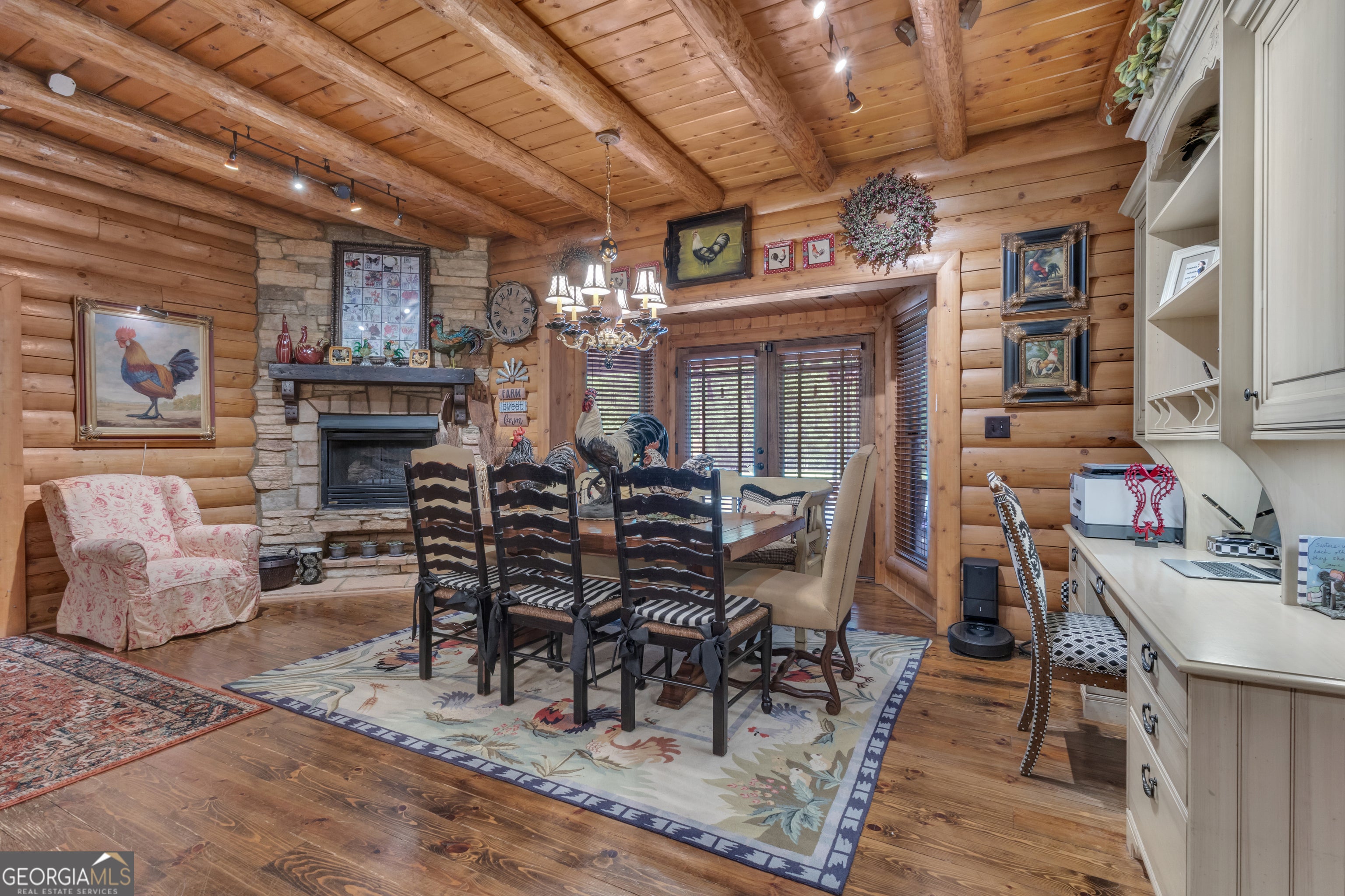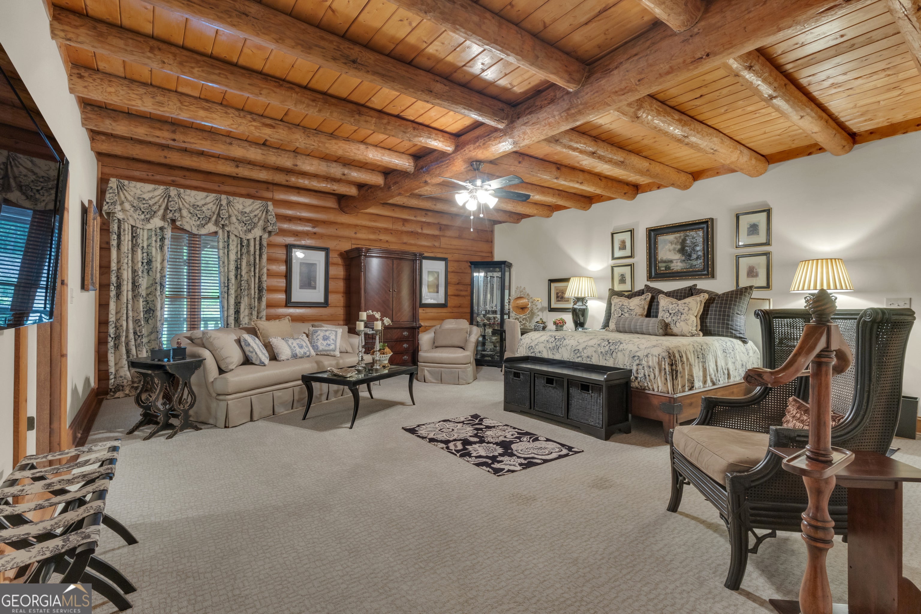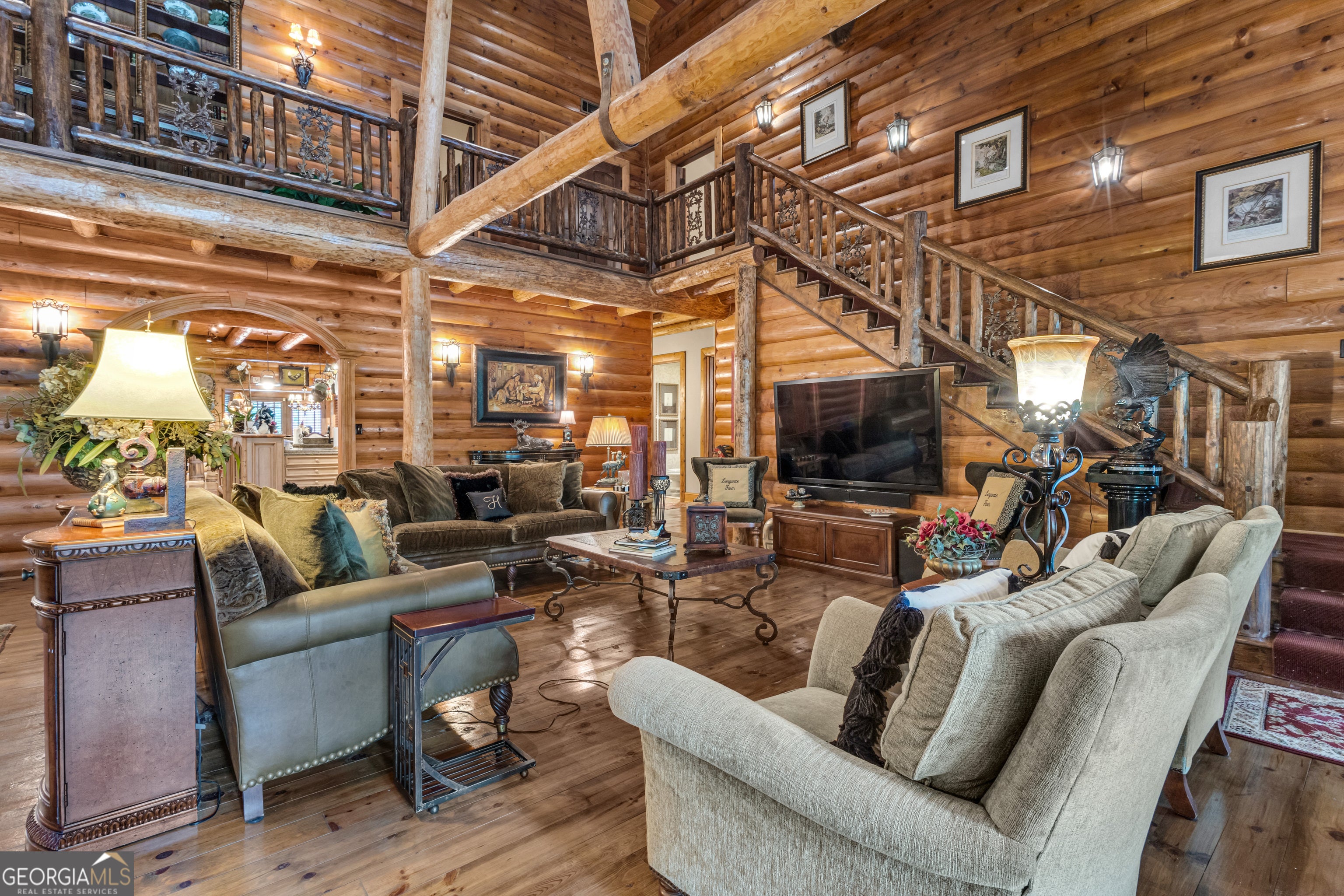 Watch Video! Experience unmatched luxury and recreation on 357 acres with over a mile of Flint River frontage and 4,000 ft along Bear Creek. This gated estate features a custom built loghouse and multiple high-quality steel Morton buildings. LOGHOUSE Stunning custom-built main house. Drive up to your own mountain style log retreat with a welcoming waterfall and around 20,000 finished sq ft. 2-story foyer entry and formal living space. A total of 5 bedrooms and 7 full bathrooms at the main house. There are two primary suites on the main floor. Custom kitchen with two working islands featuring copper hightops, breakfast area with fireplace, 3 ovens, large gas cooktop, built-in fridge and freezer. Laundry rooms on the main floor and upper floor. Pool with hot tub and stone fireplace. 12 seat theater with rumble seats. Gym room & sauna. Double deep garage holds 6+ cars with two industrial height doors and one standard door. Head upstairs to 3 suites, one suite is set up as an executive home office. Come hang out in the basement and be transported to an elegant lounge area with several gathering spaces, fireplace, library, copper ceiling, multiple TVs, full bar, wood paneled walls and columns, and game room with full bath. Large bonus room with full bath. Featured utility info: whole house automatic generator, 7 AC units, meridian phone system, Control4System for whole home TV controls, Rain Bird sprinkler system, commercial water drains. SMOKEHOUSE is your separate entertainment venue that includes a large performance theater with a full stage, 24 premium seats, flexible space for additional tables and seating, conference room, catering kitchen, and large stone patio space with firepit. CHICKENHOUSE Make way for your vehicles and guests at the Chickenhouse with Bunkhouse. This is a hotel style guest house with 5 bedrooms and 5.5 bathrooms connected to two enclosed drive through maintenance bays for vehicles, and open bays for additional RV and recreational storage. Water and air compressors built-in on each side of the shops. Fuel tanks on site. Additional 4 RV hook up stations with two around the private pond with electricity and water plus a blackwater connection site near two of the RV pads in front of the Chickenhouse. Both the Chickenhouse & Smokehouse are on backup generators. HORSEBARN Bring your animals to this 11 stall stables featuring a tack room with laundry hook ups, office with half bath, storage room, wash stall. Connected to 3 paddocks. GOKART TRACK & BARN Small GoKart Track and barn is located just off the main property road and also leads to the Equipment Sheds, three additional open bay storage buildings tucked away in the woods on the path to recreational trails. LOCATION Over one mile of road frontage on Woolsey Rd. Conveniently located about 4 miles to the local regional airport south of Atlanta and less than 24 miles from Hartsfield-Jackson Atlanta International Airport. 13 miles to Piedmont Fayette Hospital or 17 miles to Piedmont Henry. 15 miles to Trilith Studios.