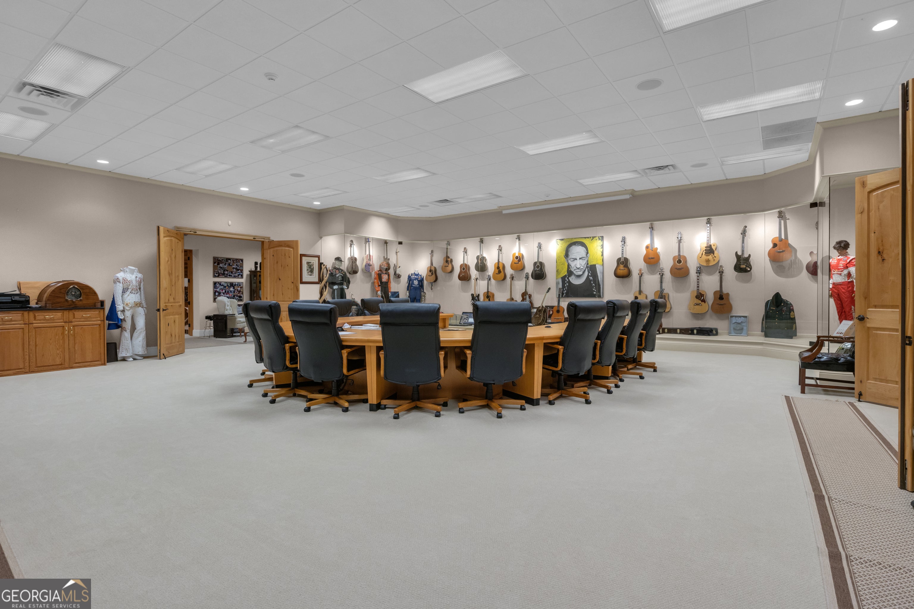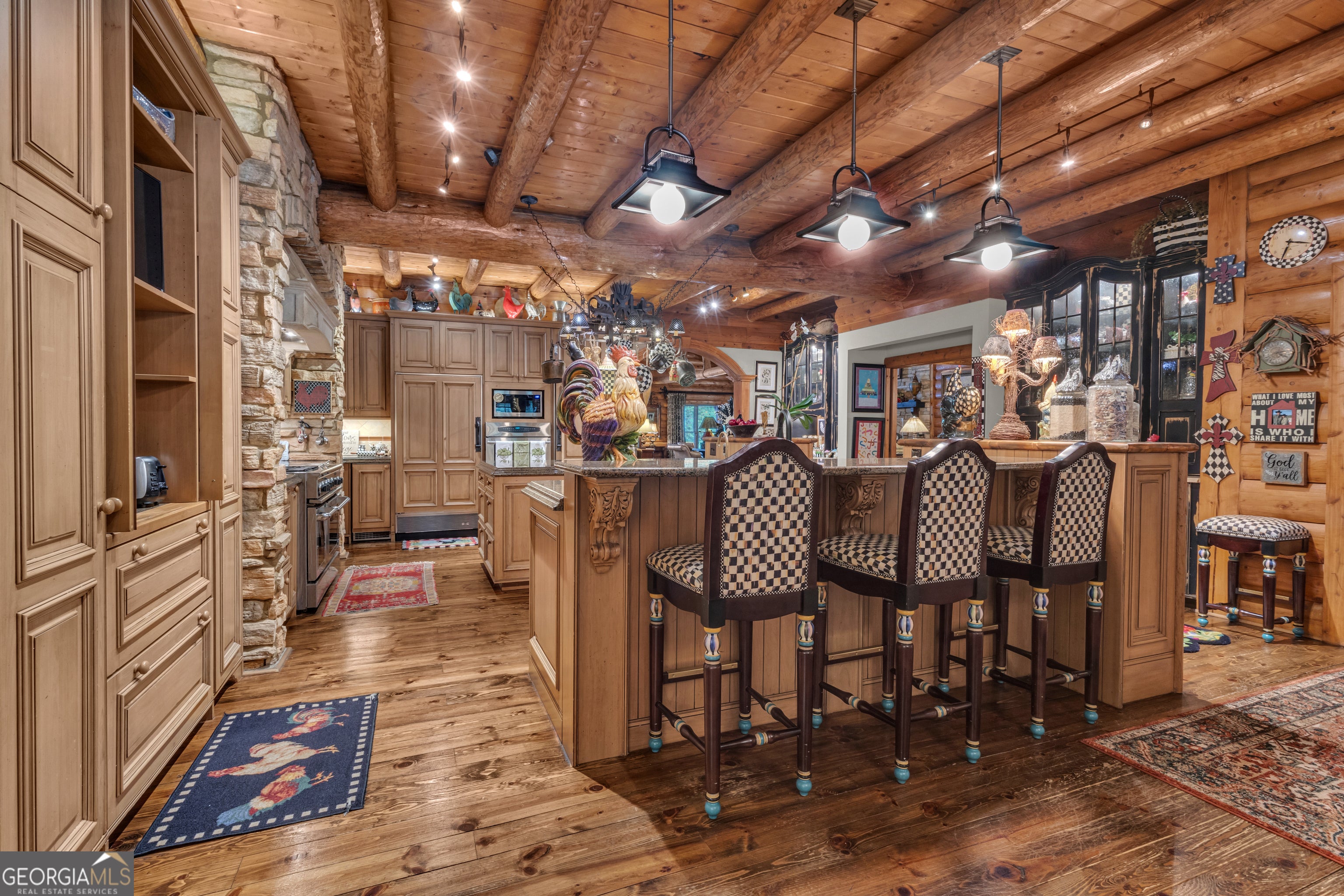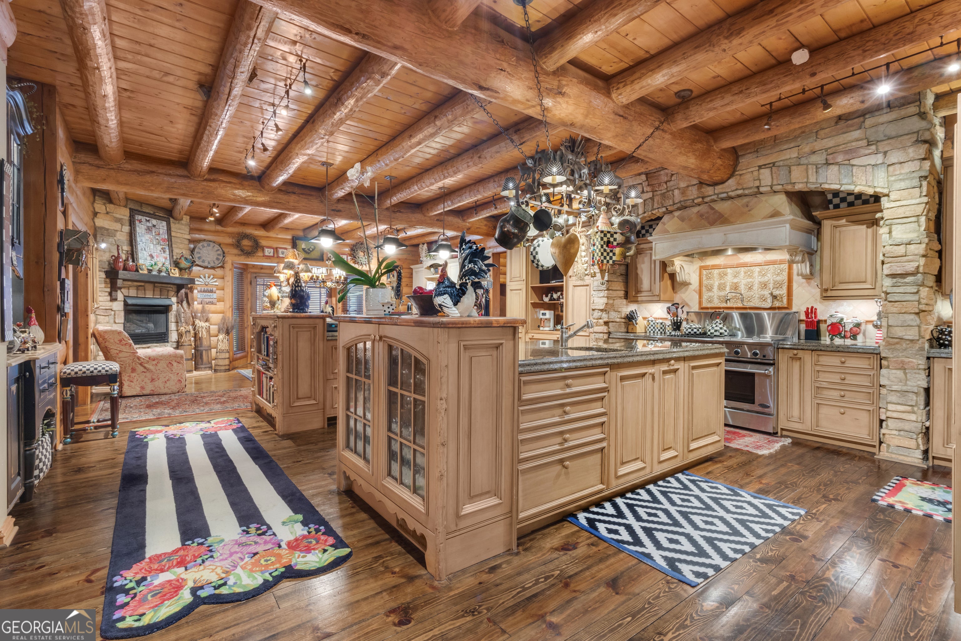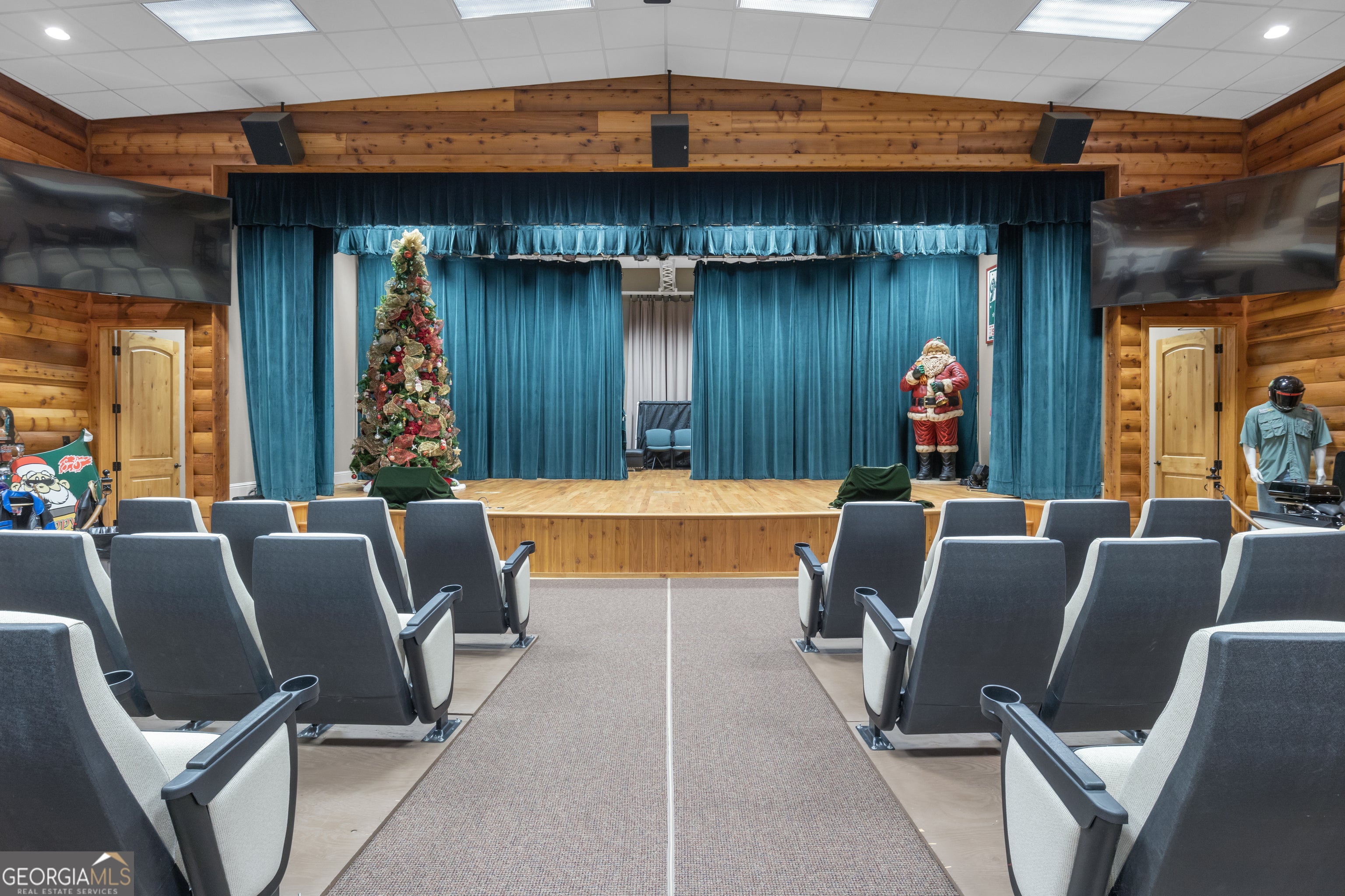 Watch Video! Experience unmatched luxury and recreation on 357 acres with over a mile of Flint River frontage and 4,000 ft along Bear Creek. This gated estate features a custom built loghouse and multiple high-quality steel Morton buildings. LOGHOUSE Stunning custom-built main house. Drive up to your own mountain style log retreat with a welcoming waterfall and around 20,000 finished sq ft. 2-story foyer entry and formal living space. A total of 5 bedrooms and 7 full bathrooms at the main house. There are two primary suites on the main floor. Custom kitchen with two working islands featuring copper hightops, breakfast area with fireplace, 3 ovens, large gas cooktop, built-in fridge and freezer. Laundry rooms on the main floor and upper floor. Pool with hot tub and stone fireplace. 12 seat theater with rumble seats. Gym room & sauna. Double deep garage holds 6+ cars with two industrial height doors and one standard door. Head upstairs to 3 suites, one suite is set up as an executive home office. Come hang out in the basement and be transported to an elegant lounge area with several gathering spaces, fireplace, library, copper ceiling, multiple TVs, full bar, wood paneled walls and columns, and game room with full bath. Large bonus room with full bath. Featured utility info: whole house automatic generator, 7 AC units, meridian phone system, Control4System for whole home TV controls, Rain Bird sprinkler system, commercial water drains. SMOKEHOUSE is your separate entertainment venue that includes a large performance theater with a full stage, 24 premium seats, flexible space for additional tables and seating, conference room, catering kitchen, and large stone patio space with firepit. CHICKENHOUSE Make way for your vehicles and guests at the Chickenhouse with Bunkhouse. This is a hotel style guest house with 5 bedrooms and 5.5 bathrooms connected to two enclosed drive through maintenance bays for vehicles, and open bays for additional RV and recreational storage. Water and air compressors built-in on each side of the shops. Fuel tanks on site. Additional 4 RV hook up stations with two around the private pond with electricity and water plus a blackwater connection site near two of the RV pads in front of the Chickenhouse. Both the Chickenhouse & Smokehouse are on backup generators. HORSEBARN Bring your animals to this 11 stall stables featuring a tack room with laundry hook ups, office with half bath, storage room, wash stall. Connected to 3 paddocks. GOKART TRACK & BARN Small GoKart Track and barn is located just off the main property road and also leads to the Equipment Sheds, three additional open bay storage buildings tucked away in the woods on the path to recreational trails. LOCATION Over one mile of road frontage on Woolsey Rd. Conveniently located about 4 miles to the local regional airport south of Atlanta and less than 24 miles from Hartsfield-Jackson Atlanta International Airport. 13 miles to Piedmont Fayette Hospital or 17 miles to Piedmont Henry. 15 miles to Trilith Studios.