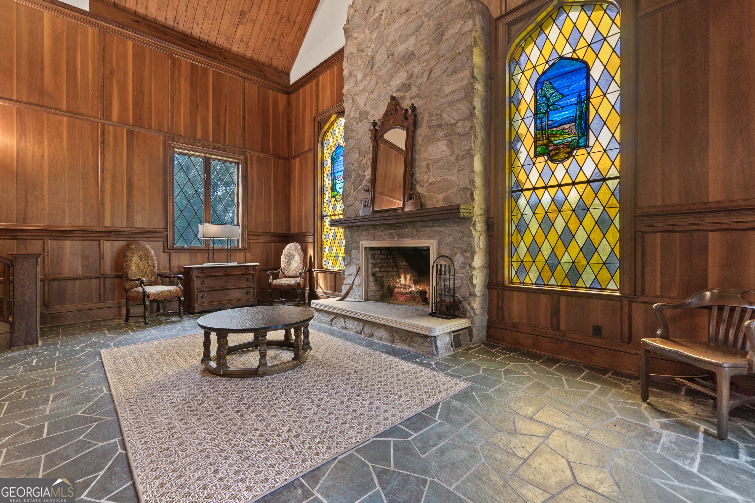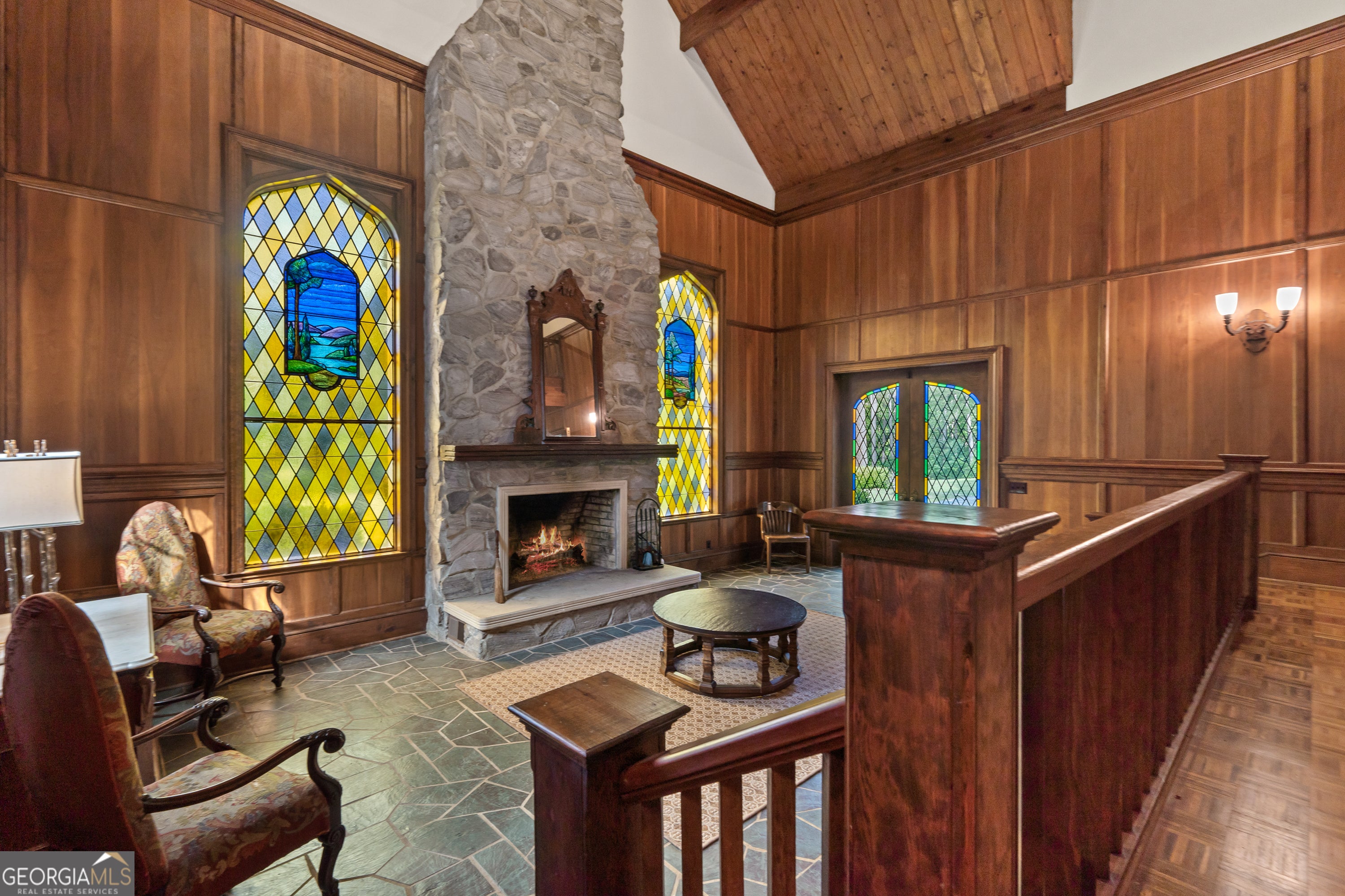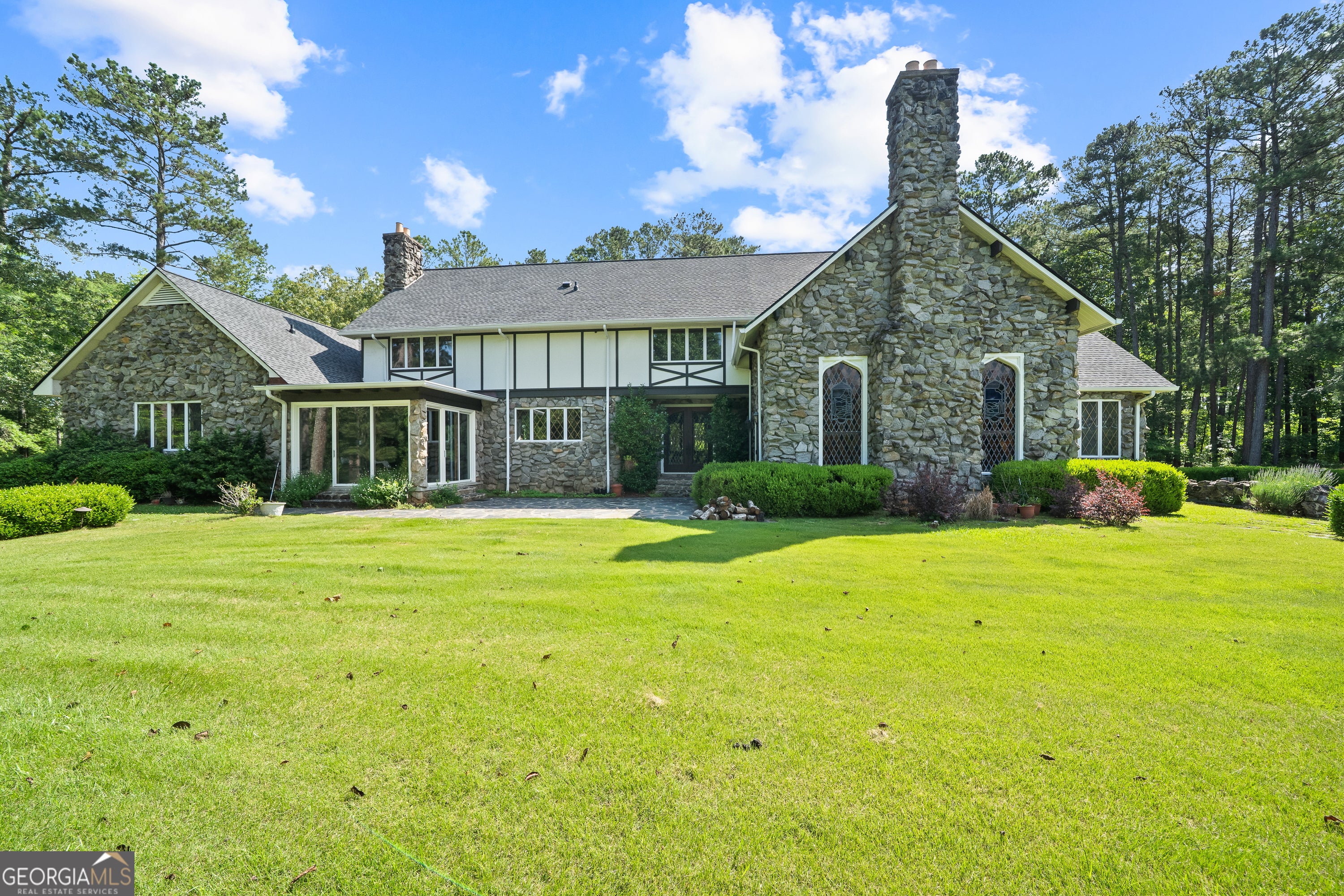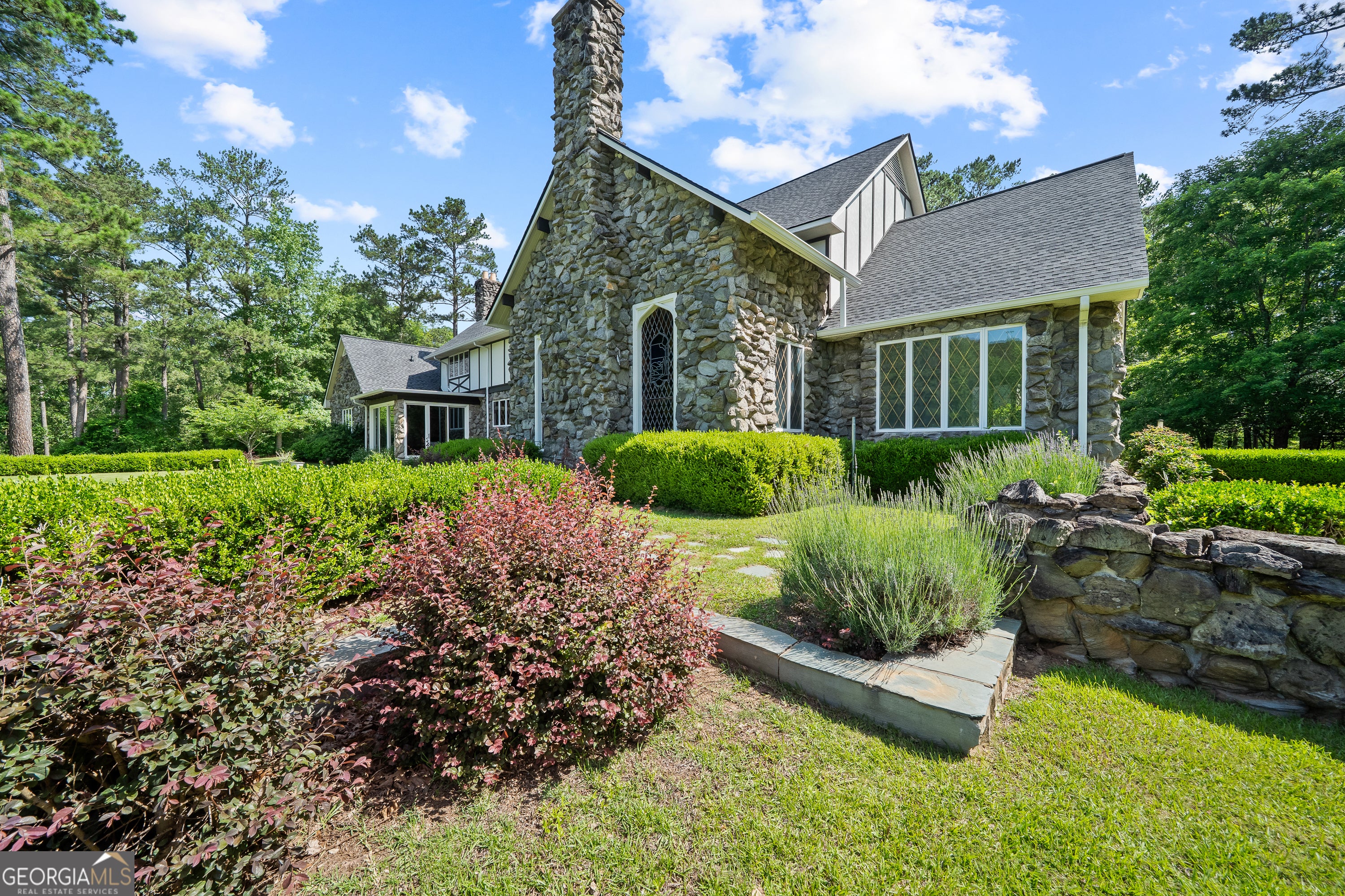 Step into a world where timeless elegance and old-world charm meet modern comfort. Greystone is a breathtaking 5,500 square foot Tudor-style manor set amid 73 acres of pristine, rolling countryside. A rare fusion of architectural grandeur and natural beauty, this extraordinary estate is perfectly suited for refined living, outdoor recreation, and legacy ownership. As you pass through the gates, a sense of serenity and seclusion welcomes you. Manicured trails weave through wooded groves and fenced pastures, ideal for peaceful walks, trail rides, or ATV exploration. At the heart of the property lies a stunning four-acre, spring-fed pond fully stocked and framed by vibrant foliage. This serene waterscape offers year-round enjoyment, from casting a fishing line to watching the seasons reflect in the still waters. Greystone is thoughtfully equipped for equestrian and outdoor lifestyles, featuring a two-stall horse barn, fenced paddock, and a private outdoor range suited for pistol, rifle, and archery use. The land is rich with wildlife including deer and wild turkeys, providing excellent opportunities for hunting or observing nature in its purest form. The manor home itself is a showcase of craftsmanship and design, constructed with lasting materials including grey feather rock and rare imported English stone. The castle-like facade recently enhanced with a brand-new roof, evokes storybook charm and stands as a testament to enduring quality. Inside, the homes sophistication is immediately apparent. Rich walnut-paneled walls lend an air of tradition rarely seen in modern construction. Gleaming parquet floors stretch across grand spaces, while a magnificent U-shaped staircase unites the lower level with the upper bedroom wing. Thoughtful architectural details such as antique fixtures, intricate woodwork, and leaded-glass doors are found throughout. The great room, with its soaring cathedral ceilings, massive wood-burning fireplace, and two oversized stained-glass windows, creates a breathtaking centerpiece for gathering and entertaining. Adjacent is a cozy family room with a gas-burning fireplace, which opens to a light-filled sunroom perfect for relaxing through every season. French doors lead to an expansive slate patio and grassy terrace, where you can dine alfresco, entertain guests, or simply take in the panoramic views of the pond, gardens, and surrounding woodlands. From every window and outdoor space, nature provides a spectacular backdrop. The luxurious owners suite offers a private retreat with its own fireplace and elegant finishes. Additional bedrooms are spacious and comfortable, ideal for family and guests. A separate two-bedroom, two-bath guest house connected to the main residence via a grand porte-coch re mirrors the Tudor style and stonework, offering independent living space for visitors, extended family, or caretakers. Though steeped in history and countryside charm, Greystone offers the conveniences of modern living. High-speed internet (100 Mbps) makes remote work and streaming seamless, ensuring the estate is as functional as it is picturesque. Located just five minutes from Interstate 20, Greystone provides easy access to regional destinations. Lake Oconees recreational offerings and medical facilities are just 30 minutes away, while the cultural hubs of Augusta, Athens, and Atlanta are within an hours drive. Whether youre seeking relaxation or connection, this estate offers the best of both worlds. Greystone is more than a home it is a sanctuary, a storybook escape, and a place to build a legacy. Whether you envision it as a full-time residence, a seasonal retreat, or a generational estate, Greystone stands ready to fulfill your vision with unmatched beauty, character, and grace.