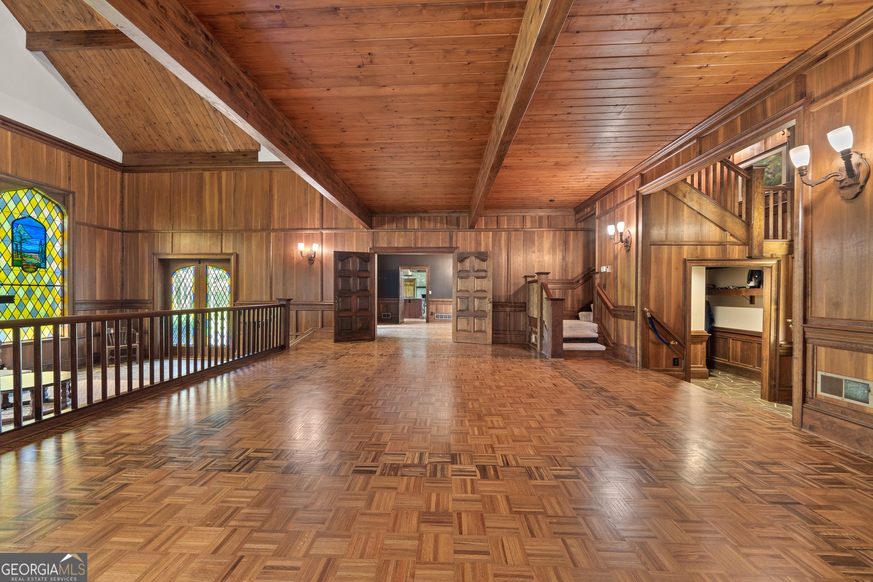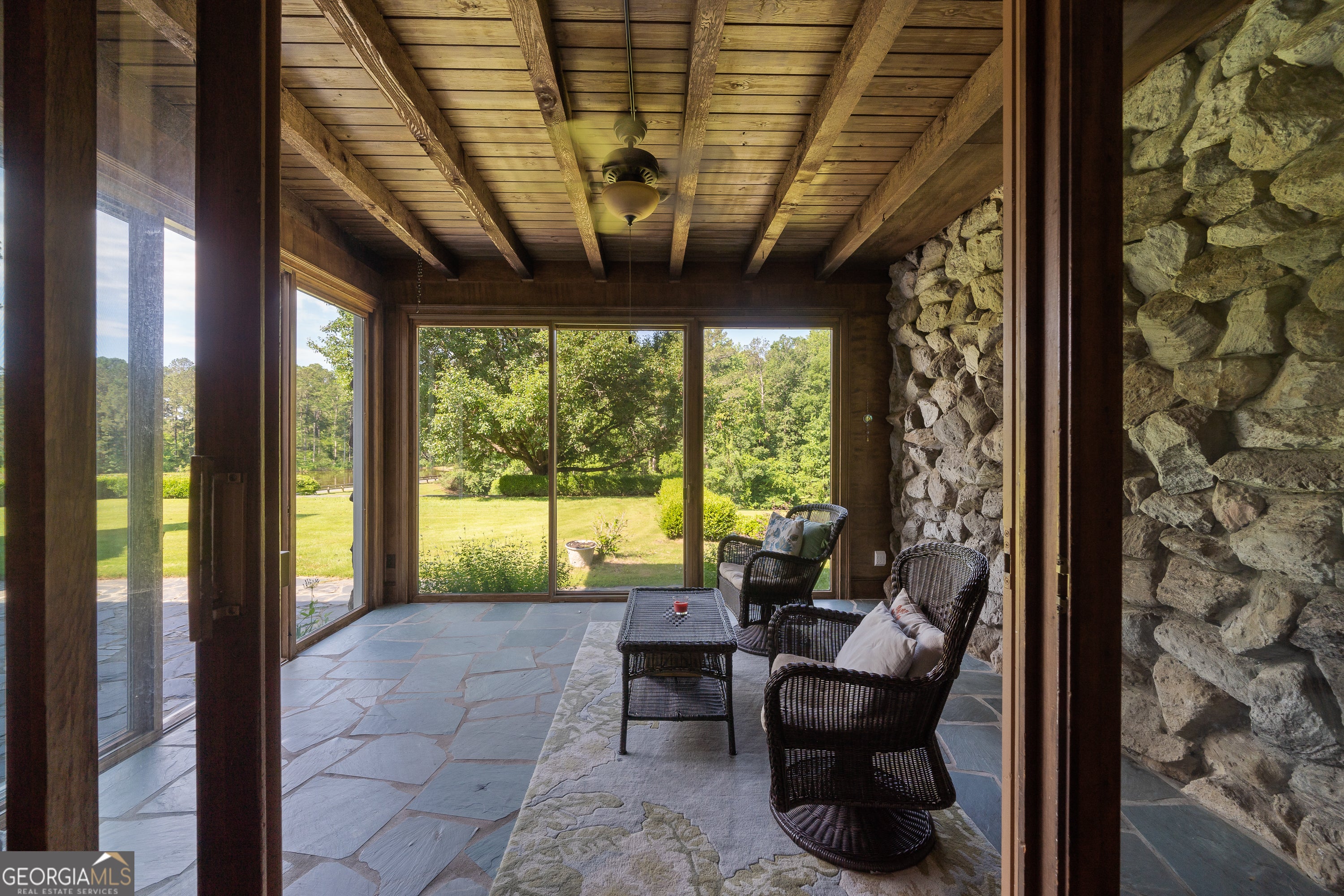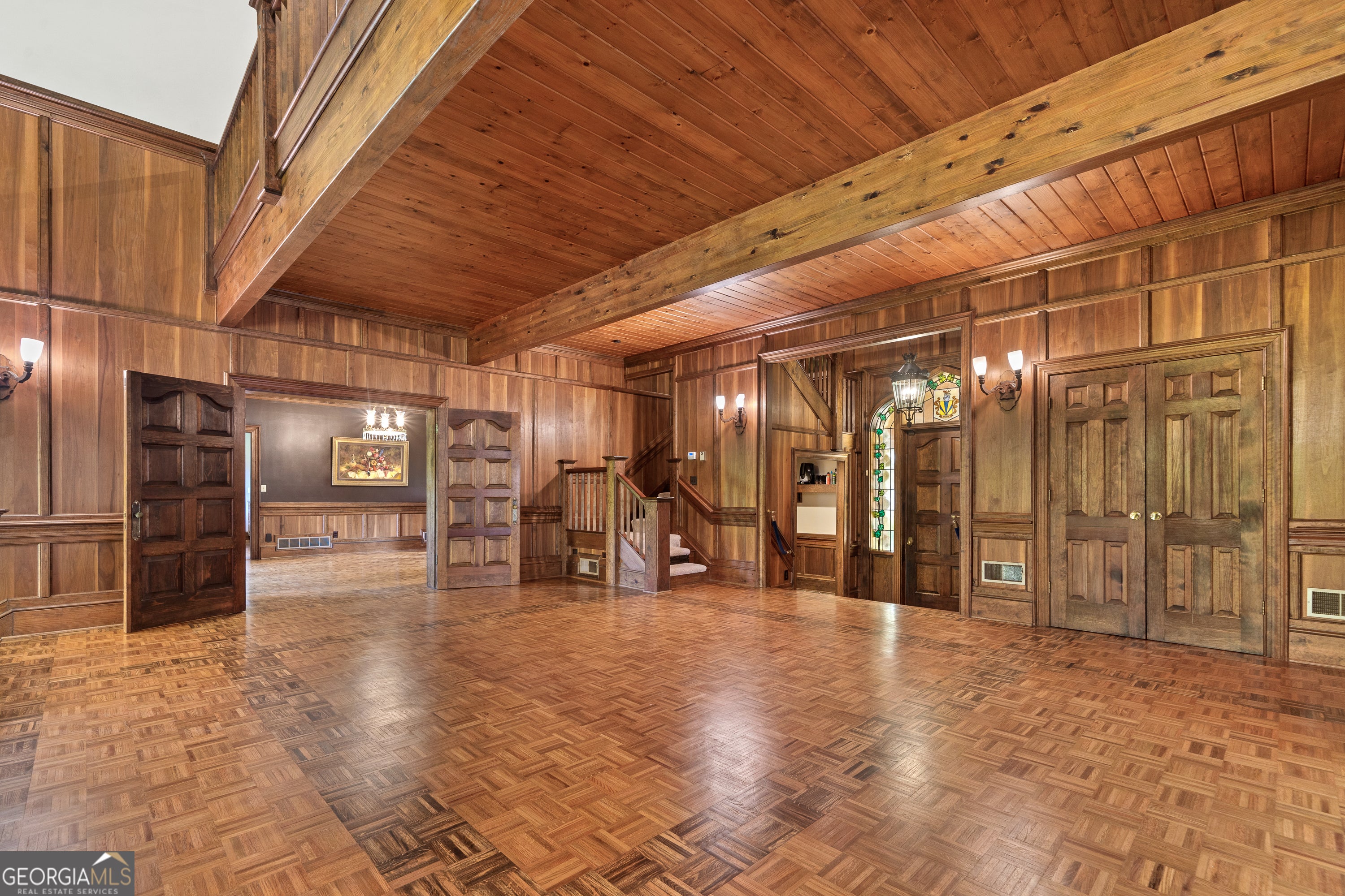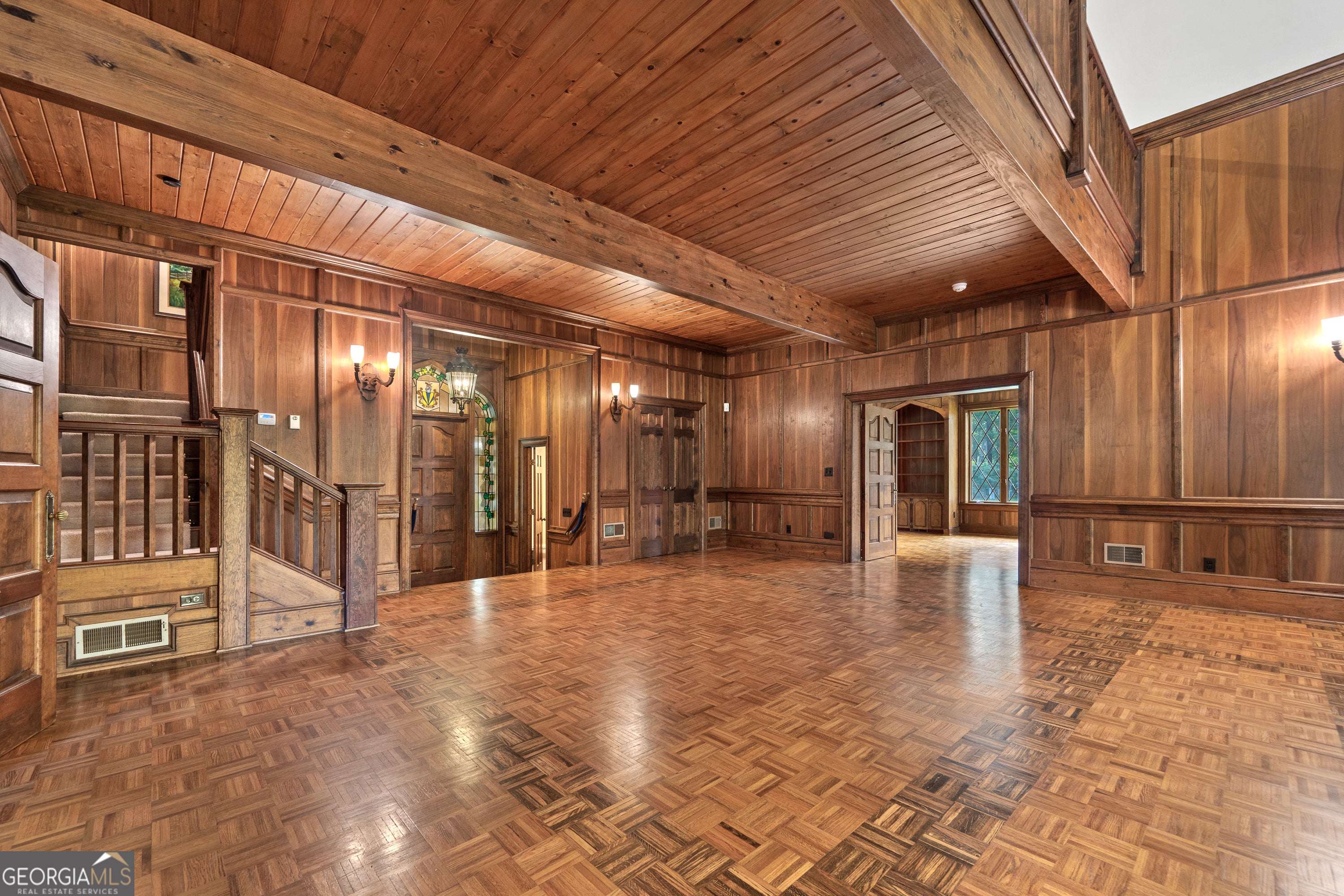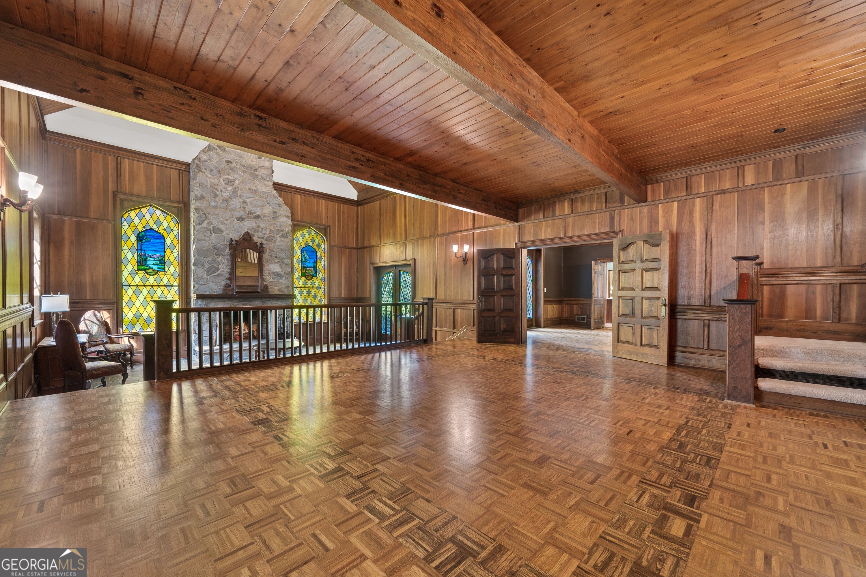 Step into a world where timeless elegance and old-world charm meet modern comfort. Greystone is a breathtaking 5,500 square foot Tudor-style manor set amid 73 acres of pristine, rolling countryside. A rare fusion of architectural grandeur and natural beauty, this extraordinary estate is perfectly suited for refined living, outdoor recreation, and legacy ownership. As you pass through the gates, a sense of serenity and seclusion welcomes you. Manicured trails weave through wooded groves and fenced pastures, ideal for peaceful walks, trail rides, or ATV exploration. At the heart of the property lies a stunning four-acre, spring-fed pond fully stocked and framed by vibrant foliage. This serene waterscape offers year-round enjoyment, from casting a fishing line to watching the seasons reflect in the still waters. Greystone is thoughtfully equipped for equestrian and outdoor lifestyles, featuring a two-stall horse barn, fenced paddock, and a private outdoor range suited for pistol, rifle, and archery use. The land is rich with wildlife including deer and wild turkeys, providing excellent opportunities for hunting or observing nature in its purest form. The manor home itself is a showcase of craftsmanship and design, constructed with lasting materials including grey feather rock and rare imported English stone. The castle-like facade recently enhanced with a brand-new roof, evokes storybook charm and stands as a testament to enduring quality. Inside, the homes sophistication is immediately apparent. Rich walnut-paneled walls lend an air of tradition rarely seen in modern construction. Gleaming parquet floors stretch across grand spaces, while a magnificent U-shaped staircase unites the lower level with the upper bedroom wing. Thoughtful architectural details such as antique fixtures, intricate woodwork, and leaded-glass doors are found throughout. The great room, with its soaring cathedral ceilings, massive wood-burning fireplace, and two oversized stained-glass windows, creates a breathtaking centerpiece for gathering and entertaining. Adjacent is a cozy family room with a gas-burning fireplace, which opens to a light-filled sunroom perfect for relaxing through every season. French doors lead to an expansive slate patio and grassy terrace, where you can dine alfresco, entertain guests, or simply take in the panoramic views of the pond, gardens, and surrounding woodlands. From every window and outdoor space, nature provides a spectacular backdrop. The luxurious owners suite offers a private retreat with its own fireplace and elegant finishes. Additional bedrooms are spacious and comfortable, ideal for family and guests. A separate two-bedroom, two-bath guest house connected to the main residence via a grand porte-coch re mirrors the Tudor style and stonework, offering independent living space for visitors, extended family, or caretakers. Though steeped in history and countryside charm, Greystone offers the conveniences of modern living. High-speed internet (100 Mbps) makes remote work and streaming seamless, ensuring the estate is as functional as it is picturesque. Located just five minutes from Interstate 20, Greystone provides easy access to regional destinations. Lake Oconees recreational offerings and medical facilities are just 30 minutes away, while the cultural hubs of Augusta, Athens, and Atlanta are within an hours drive. Whether youre seeking relaxation or connection, this estate offers the best of both worlds. Greystone is more than a home it is a sanctuary, a storybook escape, and a place to build a legacy. Whether you envision it as a full-time residence, a seasonal retreat, or a generational estate, Greystone stands ready to fulfill your vision with unmatched beauty, character, and grace.