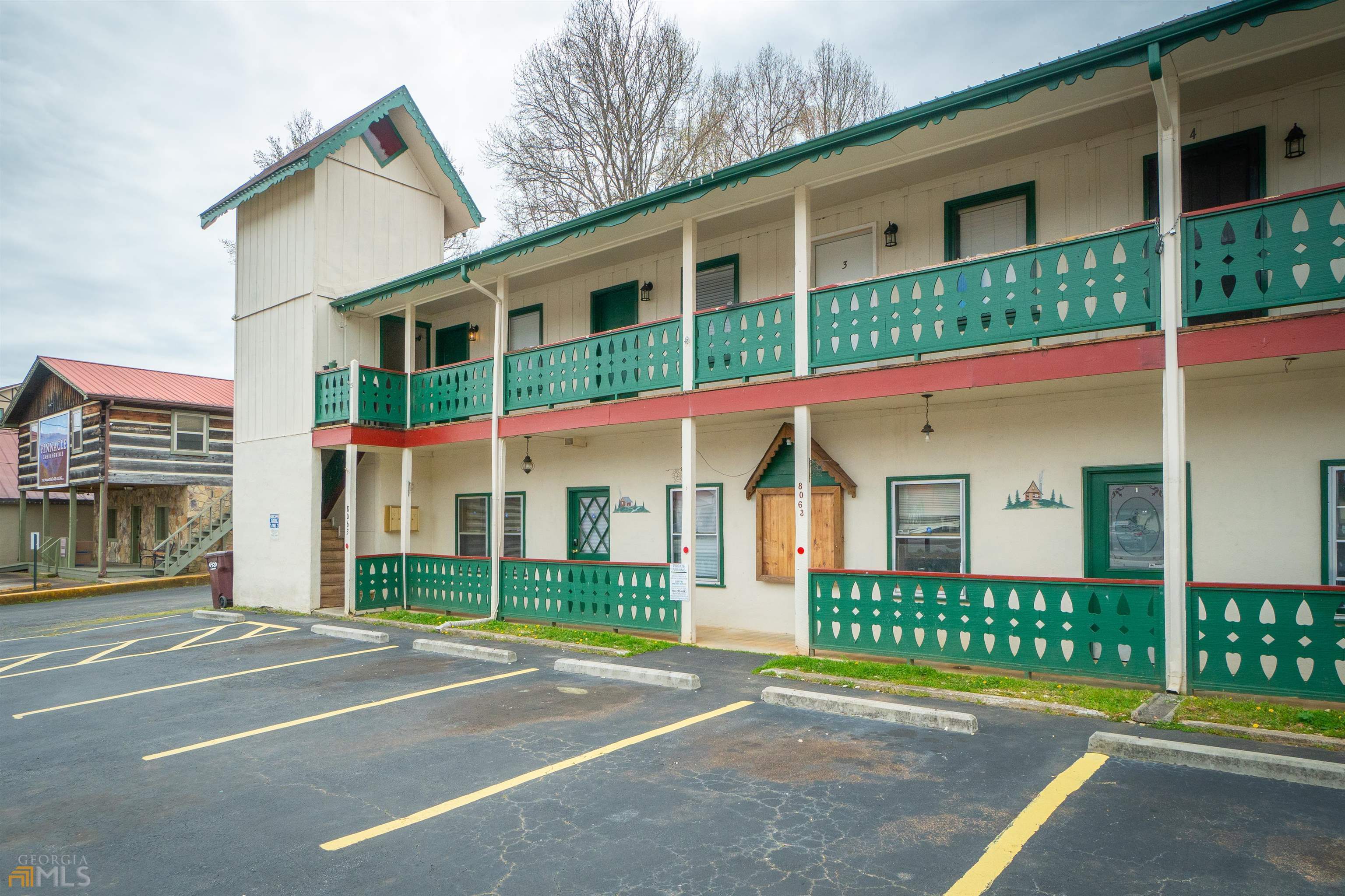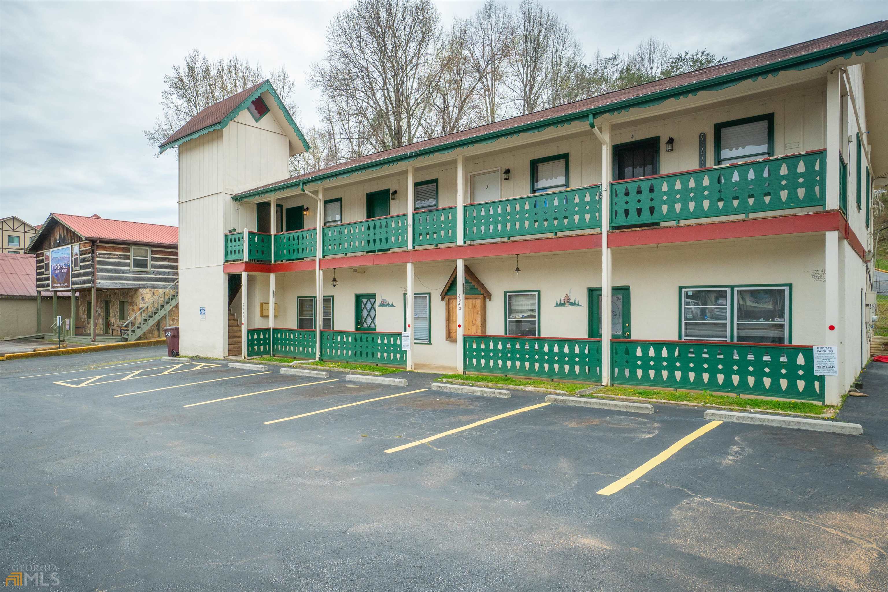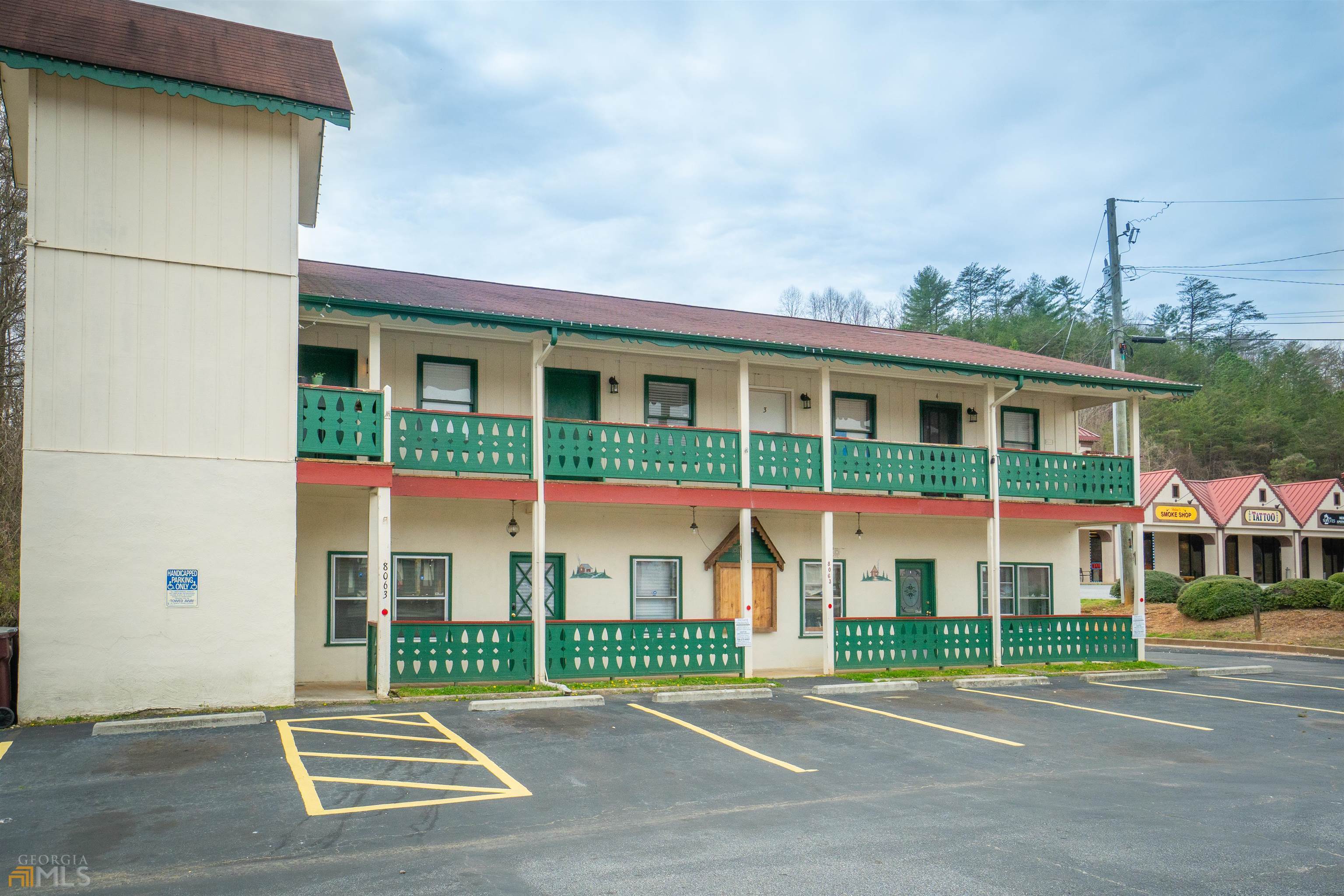 Commercial business property in Helen. Downstairs has approximately 1700 Sq Ft. of commercial space that could be used for 1 or more retail or office spaces and then Upstairs there are 4 - (1) Bedroom and (1) Bath apartments. Ample Parking! Apartments can be short-term vacation rentals, or they can be used as long-term rentals. Some leases are in place and will transfer with sale of property. Let these residential rentals pay for YOUR commercial business space. Lots of upgrades to apartments over the last couple of years. Property is within walking distance to many area attractions, restaurants and mountain area activities. Remarkable opportunity - Come see today!