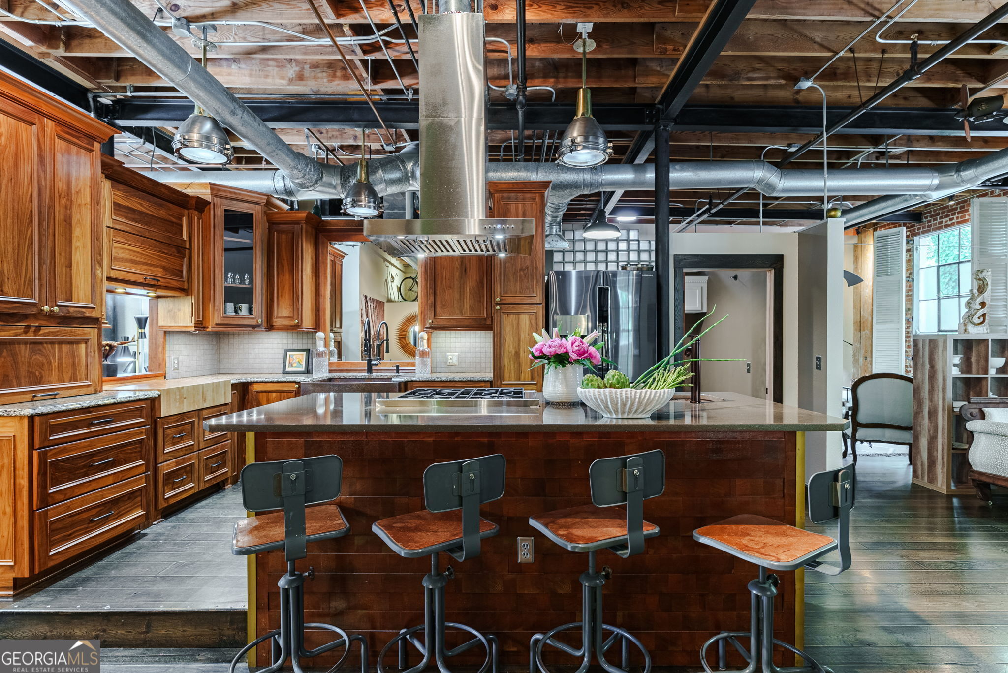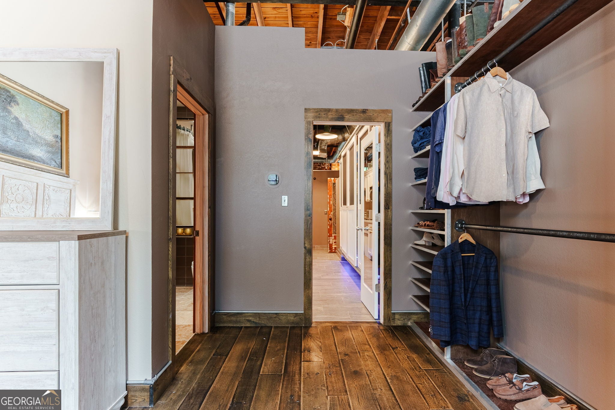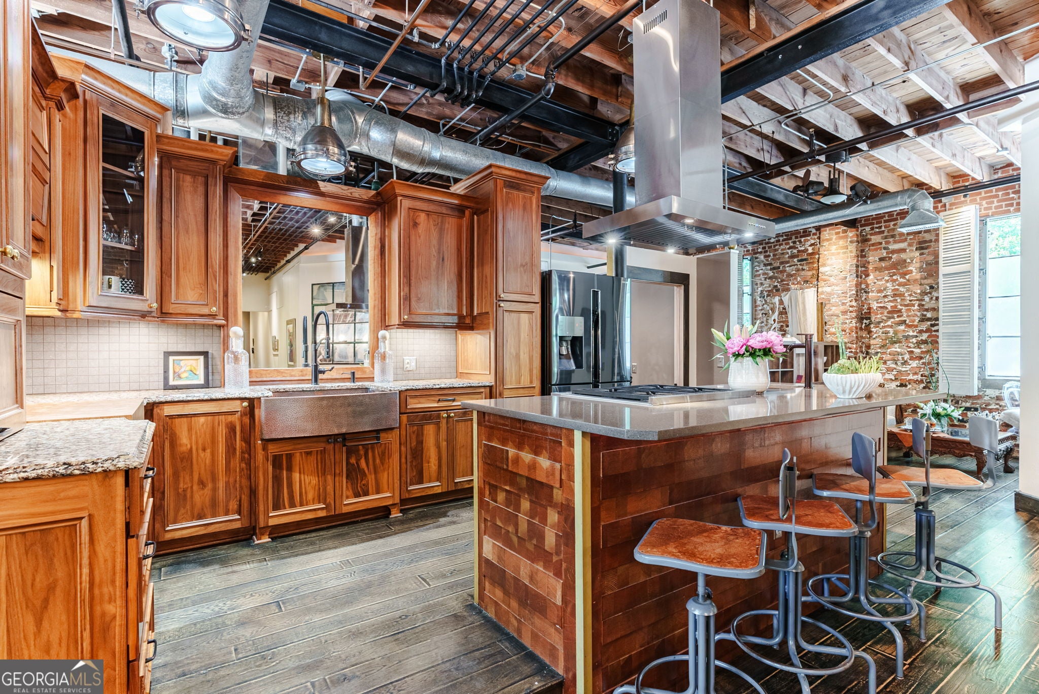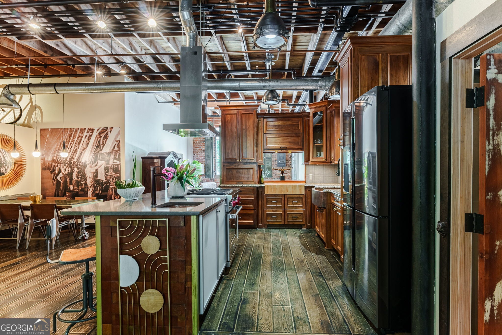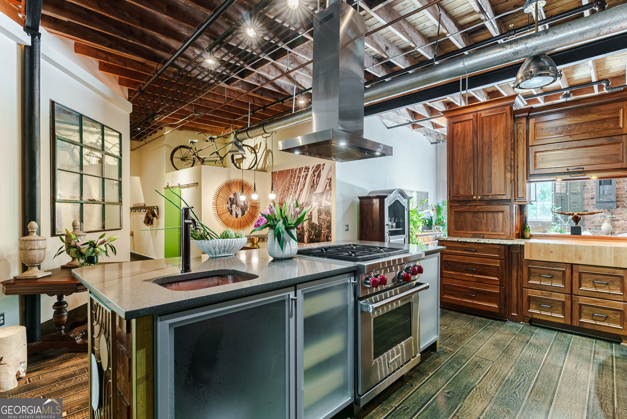 FURNISHED! Two Bedrooms, two full baths, plus a loft! This beautifully restored warehouse loft, designed by a master craftsman and preservationist, blends historic charm with modern luxury in the waterfront community of Whitehall Mill Lofts, a National Historic Landmark. Enter through a machine-burnished stainless-steel front door into an elegant Grand Foyer. The open layout reveals massive windows, offering sweeping views of the original textile warehouse. The kitchen, crafted from American walnut, features high-end Cambria countertops, copper sinks, and antique nautical lamps reworked with LED lighting. A butler's pantry and laundry room offer marble finishes and ample storage. Surrounding the kitchen are versatile spaces currently used as an art studio, second bedroom, dining room, and living room, with stunning windows and a vertical fireplace. The primary bedroom is designed with extensive storage and brushed aluminum trim, leading to a master bath with travertine floors, a vintage industrial copper tub, and a custom marble sink. Unique touches include antique English leaded stained glass, brass naval lamps, and a skylight. Additional storage includes two lofted areas-one near the entry for art displays and the other as a guest sleep loft. A spa bathroom features an infrared sauna for relaxation. The home preserves original elements like metal-frame windows, exposed brick, 13-foot ceilings, and heart pine beams. White oak plank floors and advanced soundproofing systems complete this exceptional space.