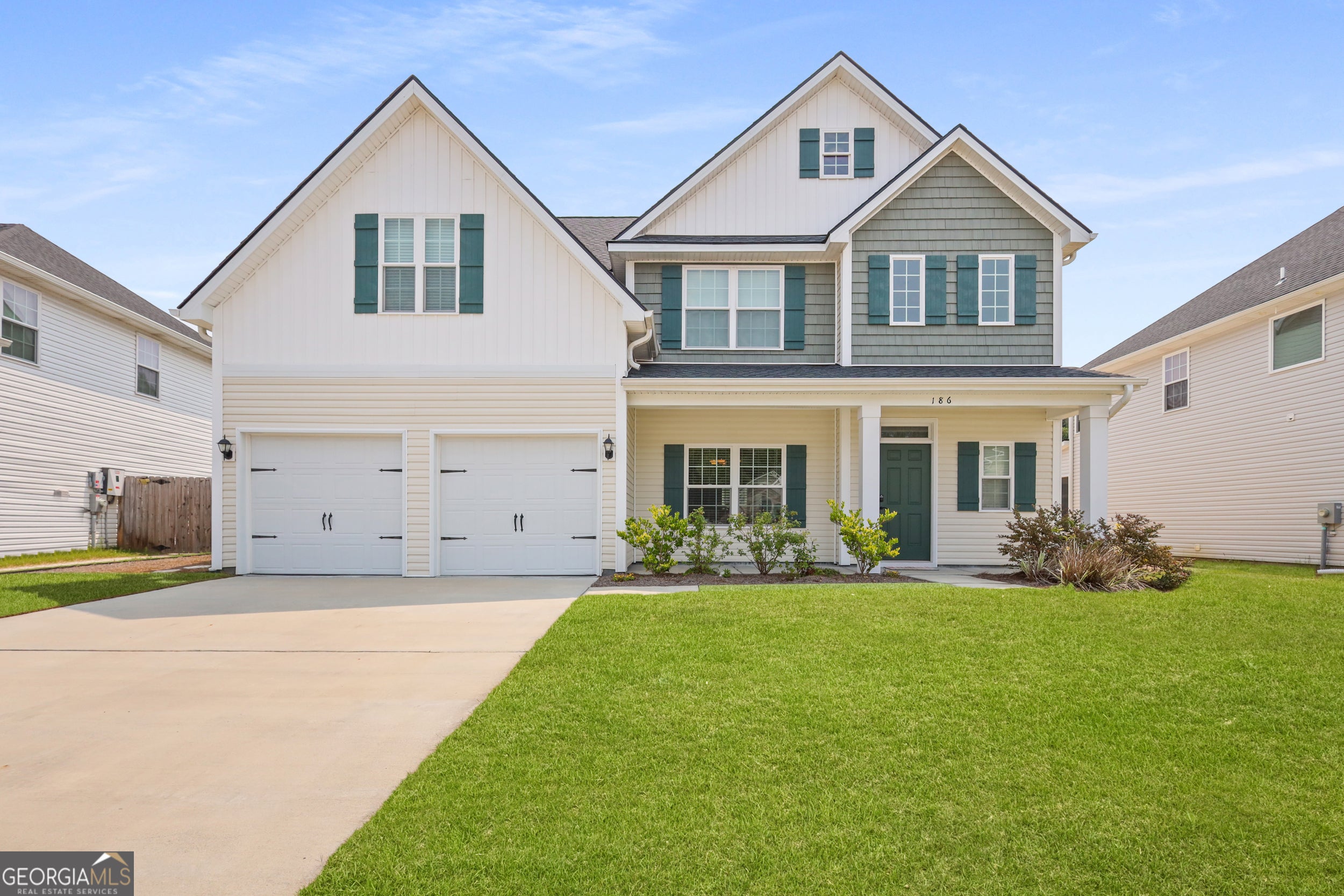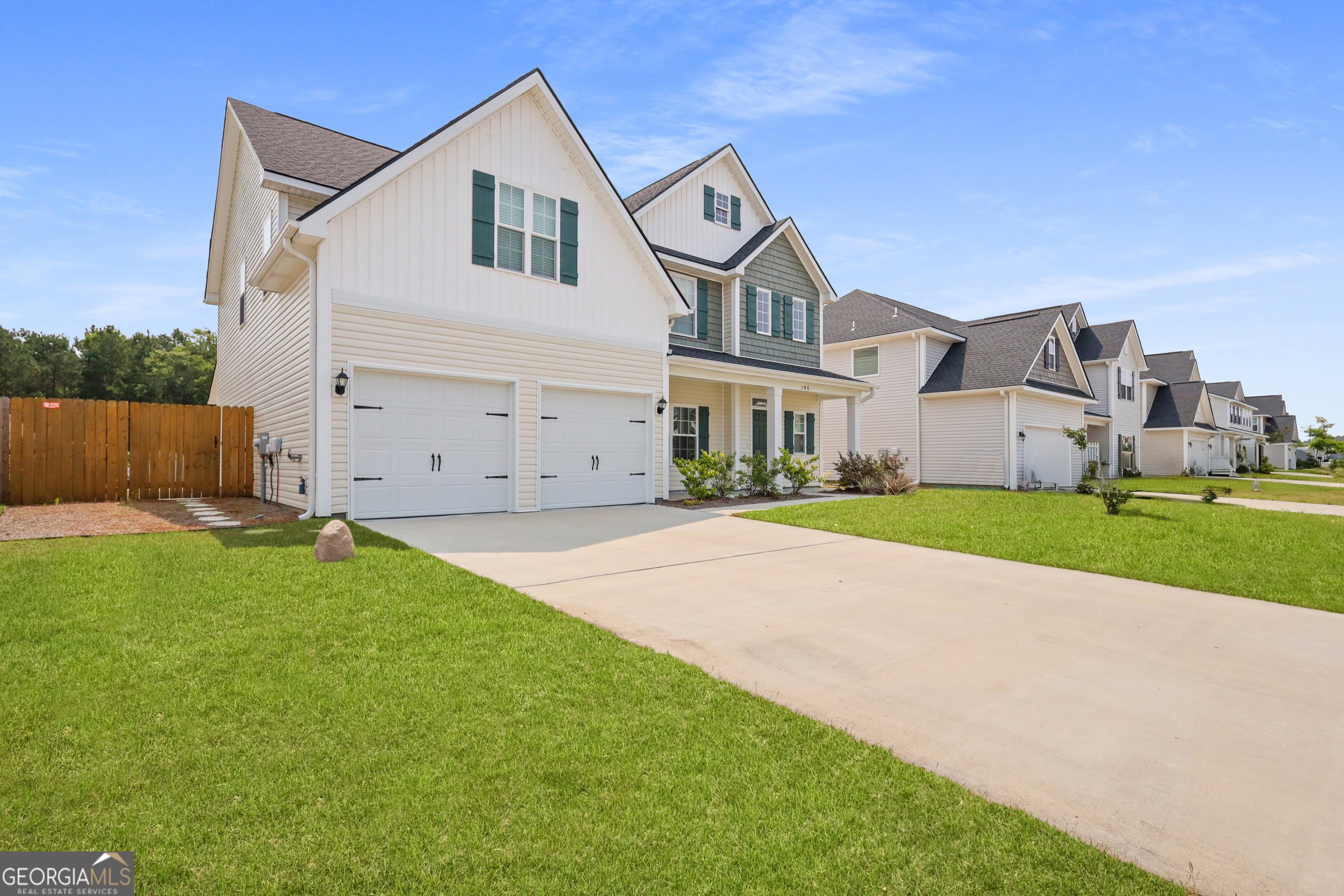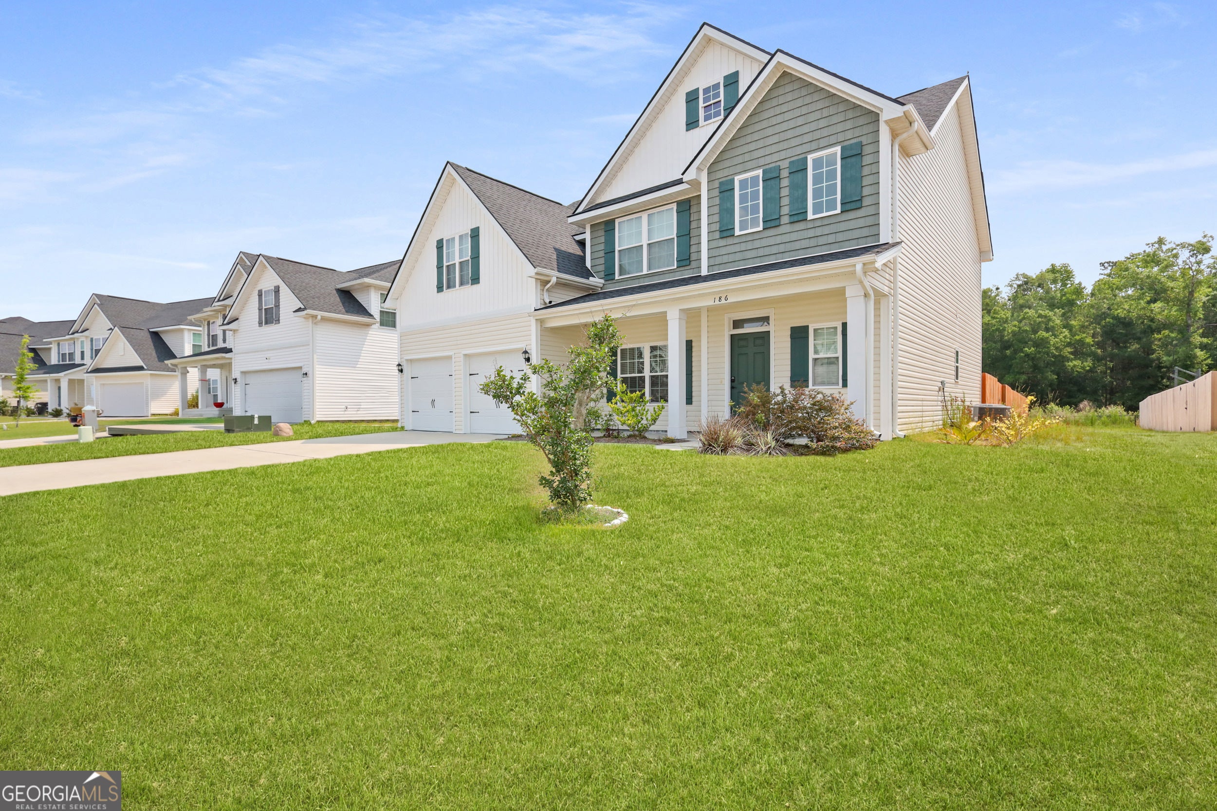 Now offering $5,000 towards buyer's closing costs with full-price offer! Discover the perfect blend of space, style, and comfort at 186 Turpentine Trail in the desirable Tranquil South community. This beautifully maintained 5-bedroom, 3-bathroom Screven plan offers nearly 2,814 sq ft of open-concept living, ideal for families, professionals, or anyone needing room to grow. Step inside to a bright and welcoming layout featuring a spacious living area that flows into the dining space and gourmet kitchen-complete with granite countertops, stainless steel appliances, a walk-in pantry, and a large island with bar seating. Perfect for everyday living and effortless entertaining! A main-level bedroom and full bath are ideal for guests, multi-generational living, or a private office. Upstairs, retreat to the luxurious owner's suite with tray ceilings, a walk-in closet, and a spa-style bath with soaking tub, dual vanities, and a separate shower. Three more bedrooms and a full laundry room (washer & dryer included) complete the upper level. Enjoy outdoor living with a fully fenced backyard, covered patio, firepit, storage shed, and updated landscaping-ideal for relaxing or hosting. Additional upgrades include installed gutters for easy maintenance and blinds throughout for added privacy and style. Located just minutes from Fort Stewart, schools, shopping, and restaurants, this home offers both convenience and quiet suburban charm. With its thoughtful layout, upgraded features, and move-in-ready condition, this home is a must-see!