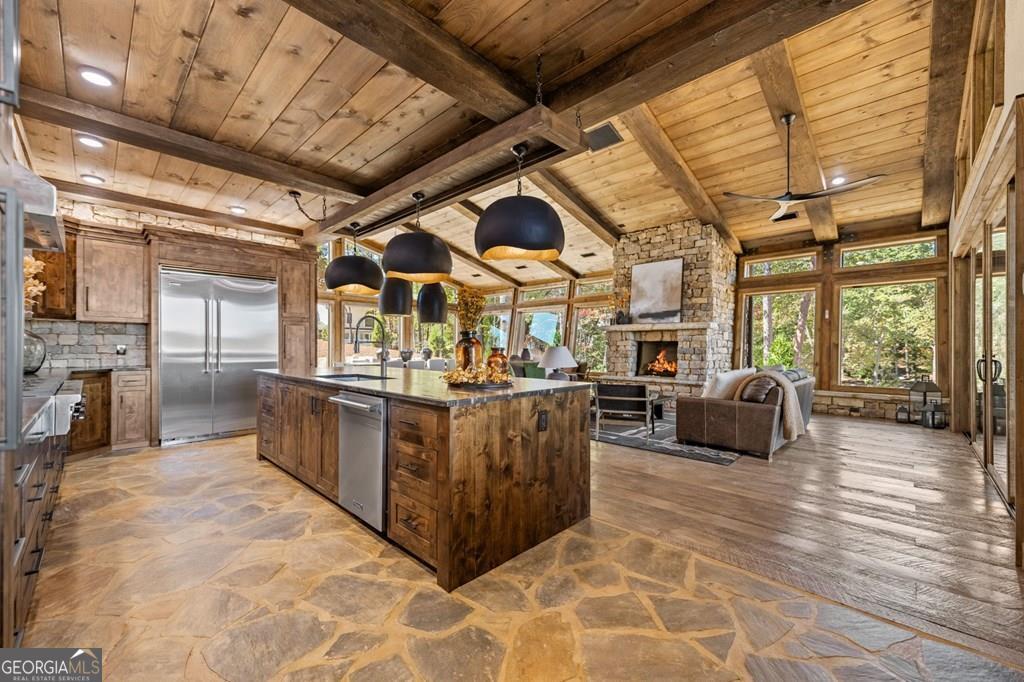 Coming Soon! Discover unparalleled luxury and rustic elegance perfectly nestled along the pristine waters of Fightingtown Creek! This exceptional 4 bedroom creekside oasis boast over 300' of private creek frontage and provides an extraordinary lifestyle, enriched by the sounds of the rushing creek, spectacular views, and trophy trout fishing right from your own backyard. The Colorado-inspired architecture, meticulously crafted and seamlessly blends natural stone, rich timbers, and expansive windows that illuminate every room with natural light and stunning views. The gourmet chef's kitchen, boasting professional-grade Viking appliances, offers culinary excellence and is perfect for entertaining family and friends. The home features oversized great rooms, spacious living areas, an inviting open-concept floor plan, and a luxurious primary suite conveniently located on the main level. Step outside into your private retreat, thoughtfully designed for extraordinary outdoor living. An impressive outdoor kitchen and entertainment area set the stage for unforgettable gatherings, where you can relax to the gentle sounds of Fightingtown Creek amid breathtaking natural surroundings. Ideally situated near the historic downtown areas of McCaysville and Blue Ridge, this exquisite home places you just minutes from shopping, dining, award-winning golf, picturesque Lake Blue Ridge, and so much more. Offered turn-key with high-end furnishings throughout, this home represents an exceptional opportunity for full-time living, a serene creekside getaway, or a luxurious short-term investment property.