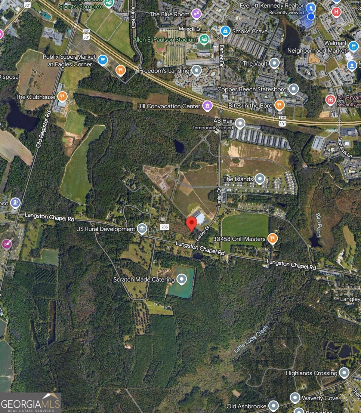 3.94 Acre Prime commercial corner lot at Langston Chapel and Lanier Drive, adjoining Georgia Southern University property. Located in a high-traffic area with excellent visibility, this site offers outstanding exposure and significant development potential. Ideal for a variety of commercial uses near the heart of campus activity