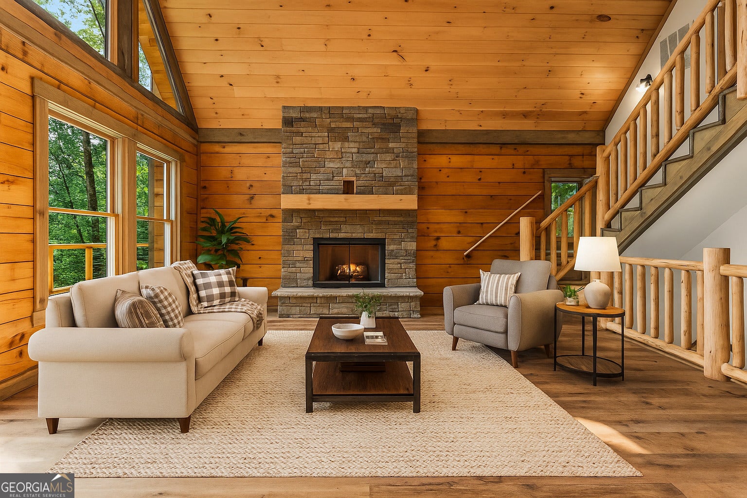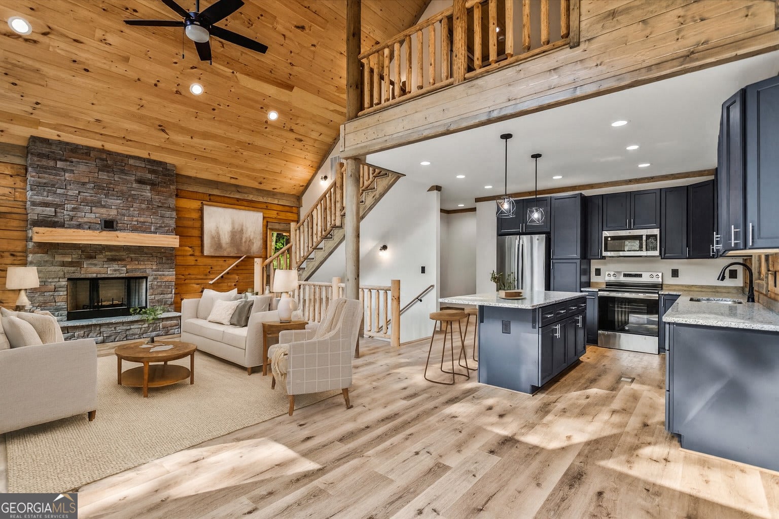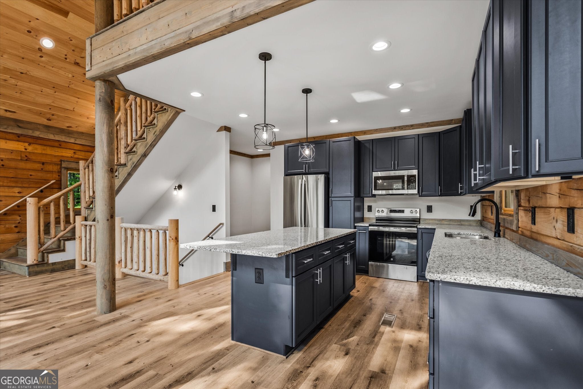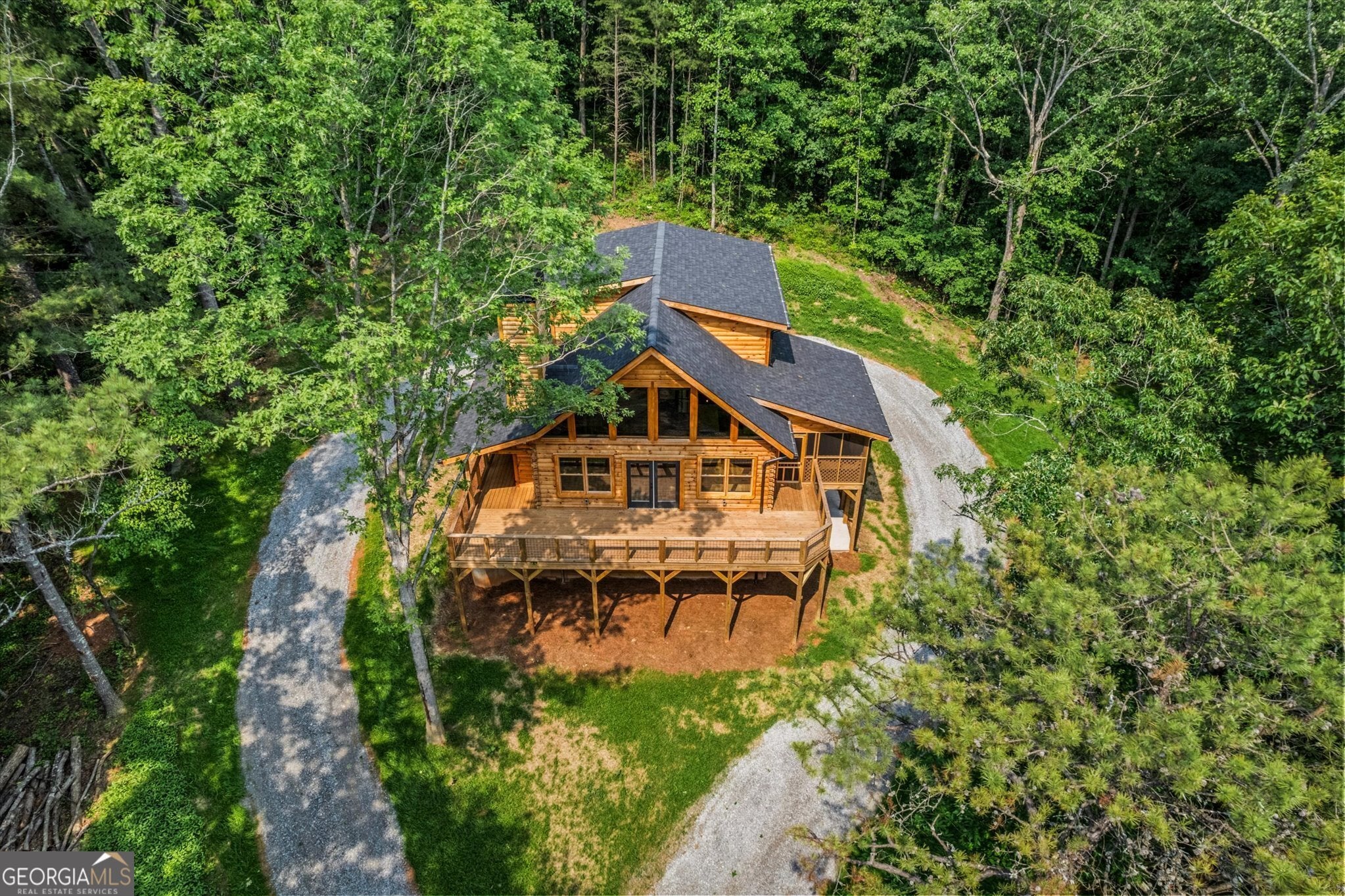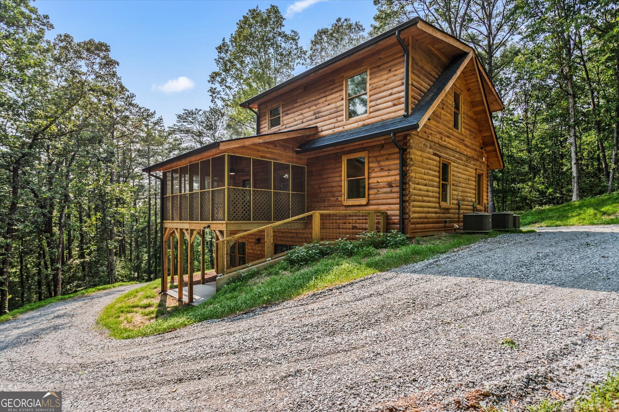 Experience mountain living at an elevated level in this stunning energy-efficient log cabin retreat in Ball Ground. Thoughtfully designed to blend refined comfort with natural beauty, this 3 bedroom, 3.5 bathroom home offers a spacious recreation room, an inviting loft, and a beautifully updated kitchen that brings a fresh, modern touch to its timeless cabin aesthetic. Expansive wrap-around decking, including a screened-in portion, creates exceptional indoor-outdoor living and the perfect setting for quiet mornings, evening entertaining, or weekend escapes surrounded by nature. Recent improvements include the addition of extra parking, providing added convenience for homeowners and guests. Ideal as a private full-time residence or an upscale second-home retreat, this property offers a rare opportunity to enjoy mountain living with comfort, character, and style.