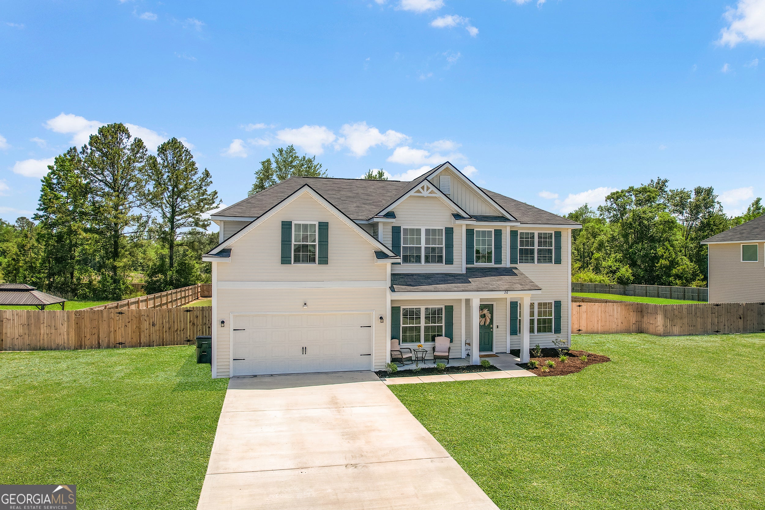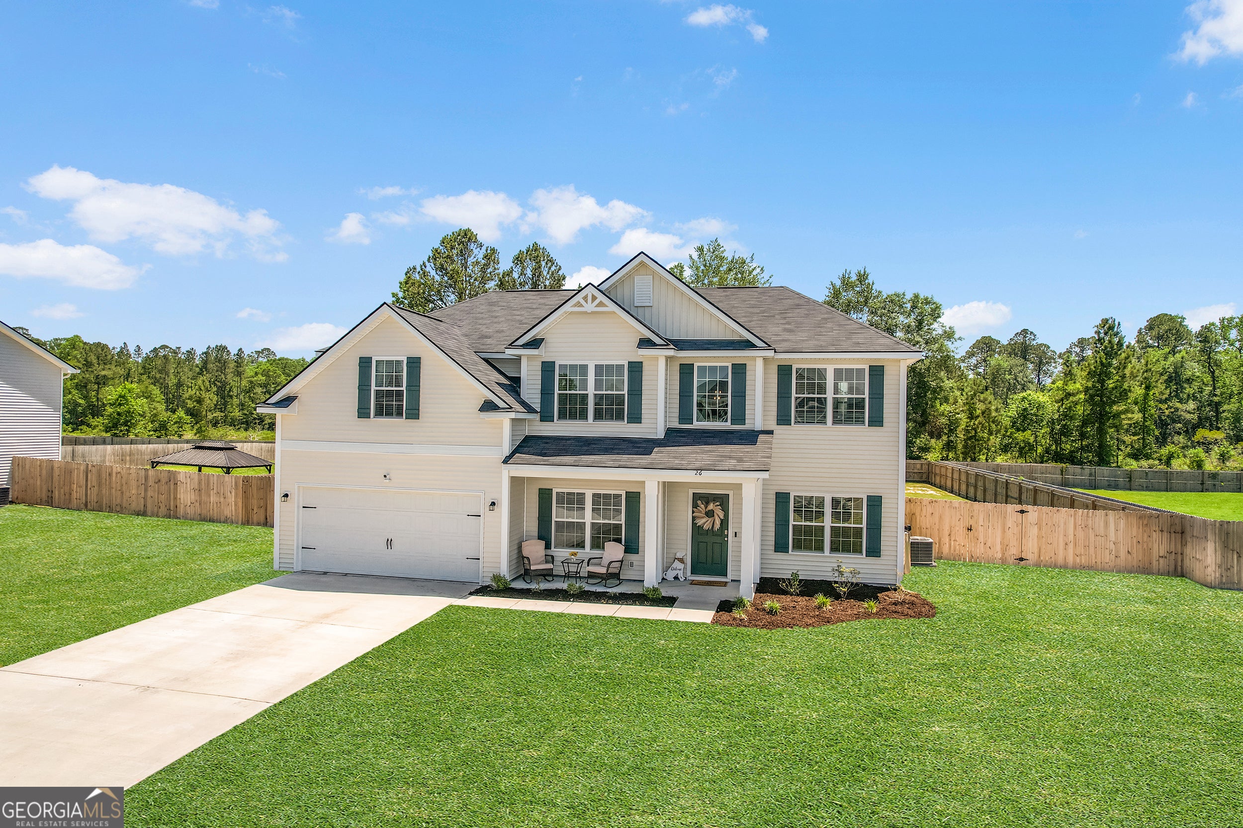 Welcome to 26 Sunflower Circle NE - a beautifully maintained 4-bed, 2.5-bath home in a peaceful neighborhood. You'll love the inviting front porch, manicured landscaping, and bright open layout. Inside, enjoy a spacious living room with vaulted ceilings, natural light, and a cozy fireplace. The open kitchen features stainless steel appliances, upgraded cabinets, ample counter space, and a sunny breakfast area. The owner's suite is a relaxing retreat with tray ceilings, a large bath, dual vanities, soaking tub, and separate shower. Two more bedrooms offer flexibility for guests or a home office. Step outside to a fully fenced backyard with a covered patio-ideal for grilling, relaxing, or pets. With no carpet, a 2-car garage, and close proximity to Fort Stewart, schools, shopping, and dining, this move-in ready gem has it all. Perfect for first-time buyers or downsizers. Schedule your private showing today-this one won't last!