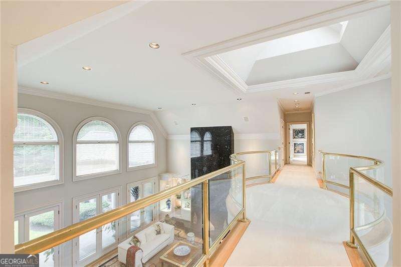 Nestled on a peaceful cul-de-sac in prestigious Cross Roads Manor, you are welcomed to this stunning home with a beautiful circular stone paver driveway. Through the double entry doors, a grand marble foyer opens into an expansive living room, anchored by a dramatic marble fireplace. Custom built-ins on either side present a perfect place for any art aficionado to exhibit their collection. Triple French doors lead to the private, gated backyard and serene, covered patio, an ideal place to experience indoor-outdoor living. Attached to the main living area, a centrally located custom wet bar enhances the home's flow for effortless hosting. The new designer gourmet kitchen is a chef's dream, featuring brand new Thermador appliances, custom island, and open views into a sun-drenched fireside keeping room. Natural light floods the space throughout the day, creating a warm and inviting atmosphere. Perfect for entertaining, a spacious formal dining room with an uplit tray ceiling easily seats 12 guests and showcases elegant custom cabinetry. An impressive wood-paneled study, just off the grand foyer, features rich hardwoods, a fireplace, custom built-ins, and expansive windows for abundant natural light. The main-level owner's suite is a private retreat, boasting a spa-inspired bath complete with marble finishes, a soaking tub, sauna, steam shower, dual vanities, and brand new designer double closets. Upstairs, secondary bedrooms are generous ensuite retreats with large walk-in closets. The terrace level offers a perfect opportunity for an in-law suite with a newly added designer full bath and kitchen along with garden path egress and ample storage. Additional highlights include NEW ROOF, high end interior finishes with luxury materials, attached two-car garage with detached single-car garage, and hard coat stucco exterior.