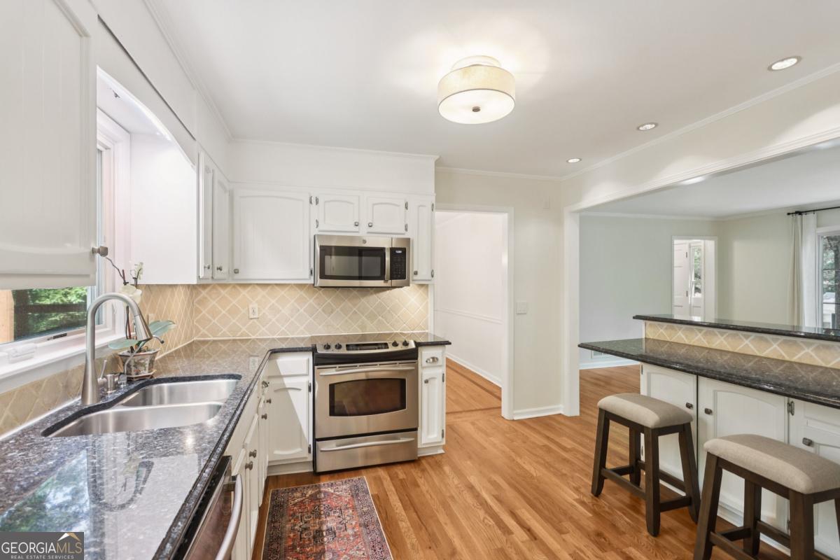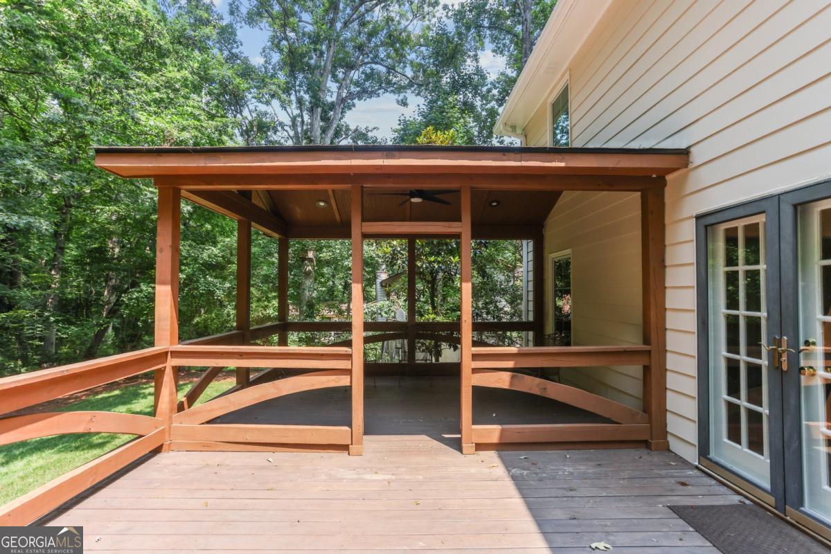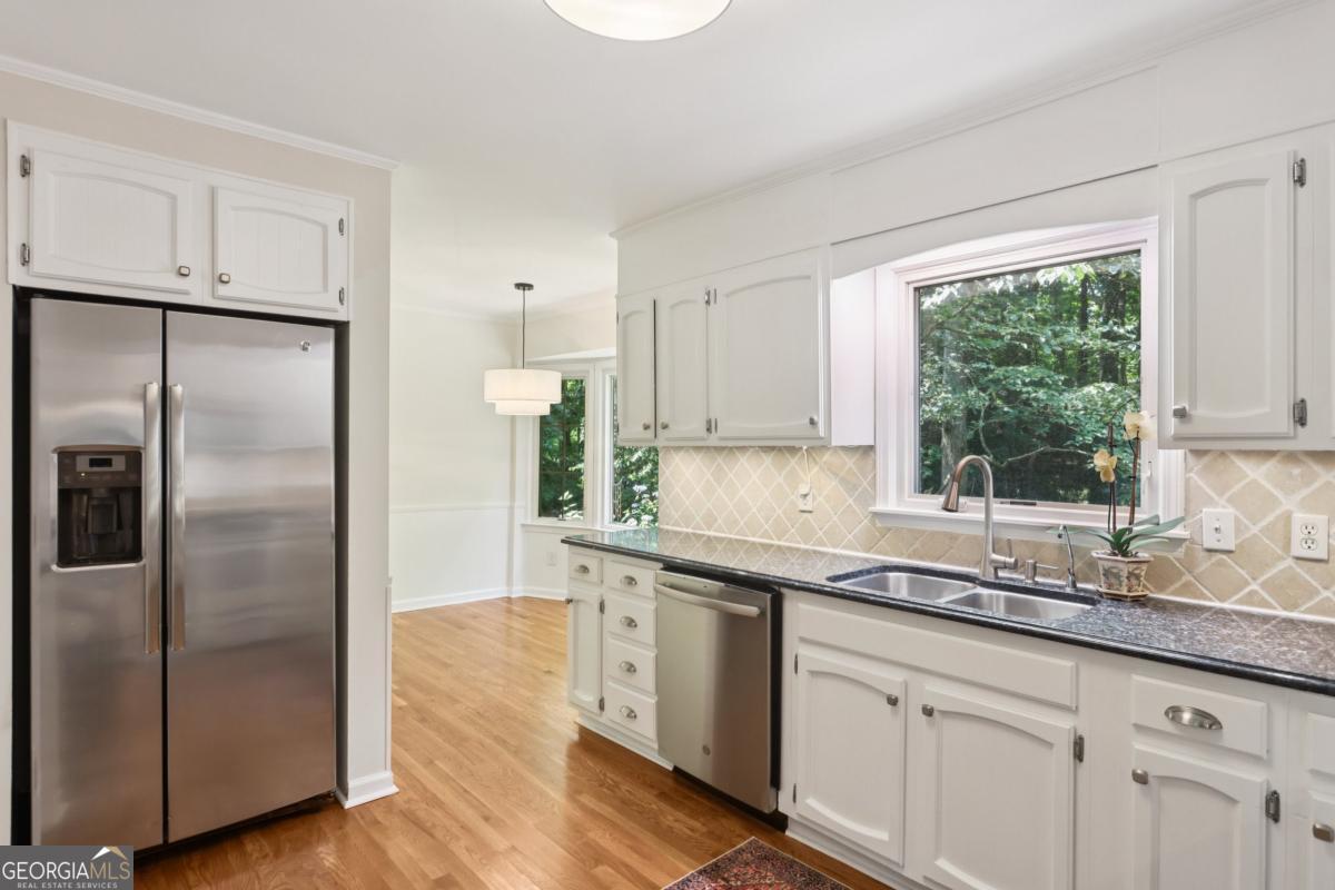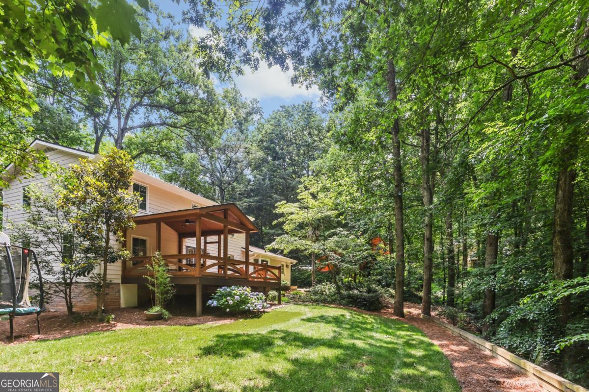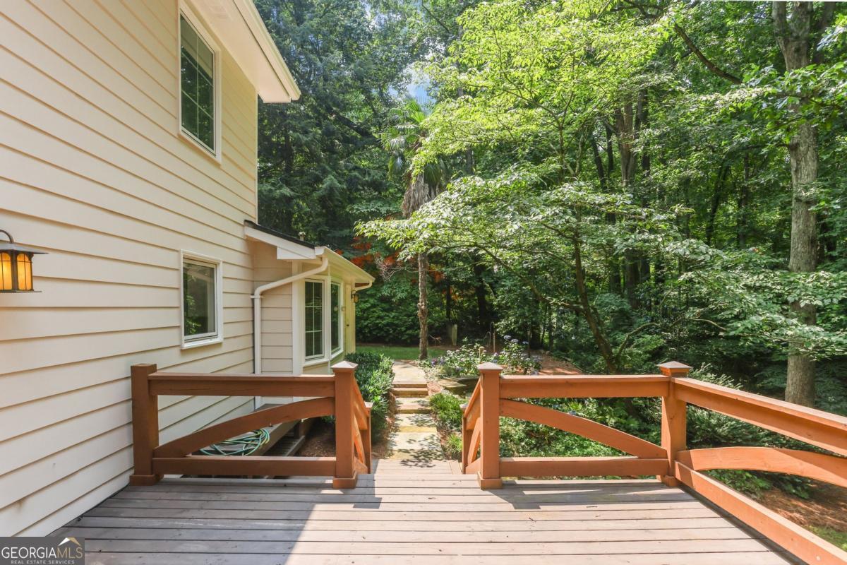 This is the one you've been waiting for in Dunwoody! Welcome to 5240 Arrie Way--a warm and inviting home that has been lovingly and meticulously cared for by the same owner for over 25 years. This charming traditional is anything but typical, with an open yet cozy floor plan perfectly suited for entertaining or winding down. Nestled on a quiet street, this home is part of the active and welcoming Lockridge Forest neighborhood, with optional swim and tennis memberships available and no HOA. This home offers the perfect blend of classic character and modern updates all while being conveniently located near schools, shopping, and parks. Now is your chance to enjoy all the benefits of a well-maintained home where the big-ticket items have already been taken care of-allowing you to move right in and make it your own. Step inside the main level to discover a bright and functional layout, including an eat-in kitchen with granite countertop seating that opens to the living room with a cozy wood-burning, gas-starter fireplace-ideal for entertaining and everyday living. There's an oversized flex room steps away from the foyer that provides endless options, with beautiful glass french doors allowing instant privacy when desired-use it as a second living space, playroom, office, game room--you name it! The main level also features recently refinished white oak hardwood floors and freshly smoothed ceilings, creating a clean, updated feel throughout. Upstairs you will find 4 sunny bedrooms including a primary with en-suite, a full hall bathroom with jetted tub, a large linen closet, and newer carpet. Nearly every surface has been thoughtfully refreshed, with new interior and exterior paint, brand new light fixtures & ceiling fans, and stainless steel kitchen appliances. The home also boasts gorgeous new Pella windows, 5 yr old roof, new siding, and new HVAC-offering peace of mind for years to come. Outdoor living at Arrie Way is just as inviting, with a beautifully landscaped backyard on half an acre featuring a tranquil water feature, plus a new stained deck with both covered and open-air areas, ideal for enjoying picture-perfect sunsets surrounded by nature. The front and back yard have been professionally landscaped with lush mature flowers and greenery to admire from every angle. The large workbench and gas line hook-up are ready to put your grilling skills to the test as the soothing waterfall flows in the background of your private oasis. Another outdoor feature to note is the ample parking, including room for a boat or RV on the side of the house out of street view-as well a two-car garage with built-in shelving, making this home as practical as it is beautiful. With so many major upgrades already completed, all that's left is to add your personal touch. Don't miss the opportunity to make this wonderful Dunwoody home your own!