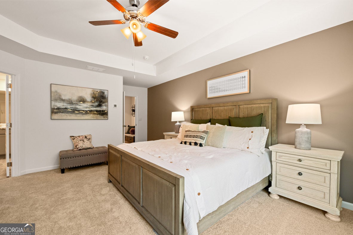 - Interior FeaturesDouble Vanity, Pulldown Attic Stairs, Roommate Plan, Separate Shower, Tray Ceiling(s), Walk-In Closet(s)