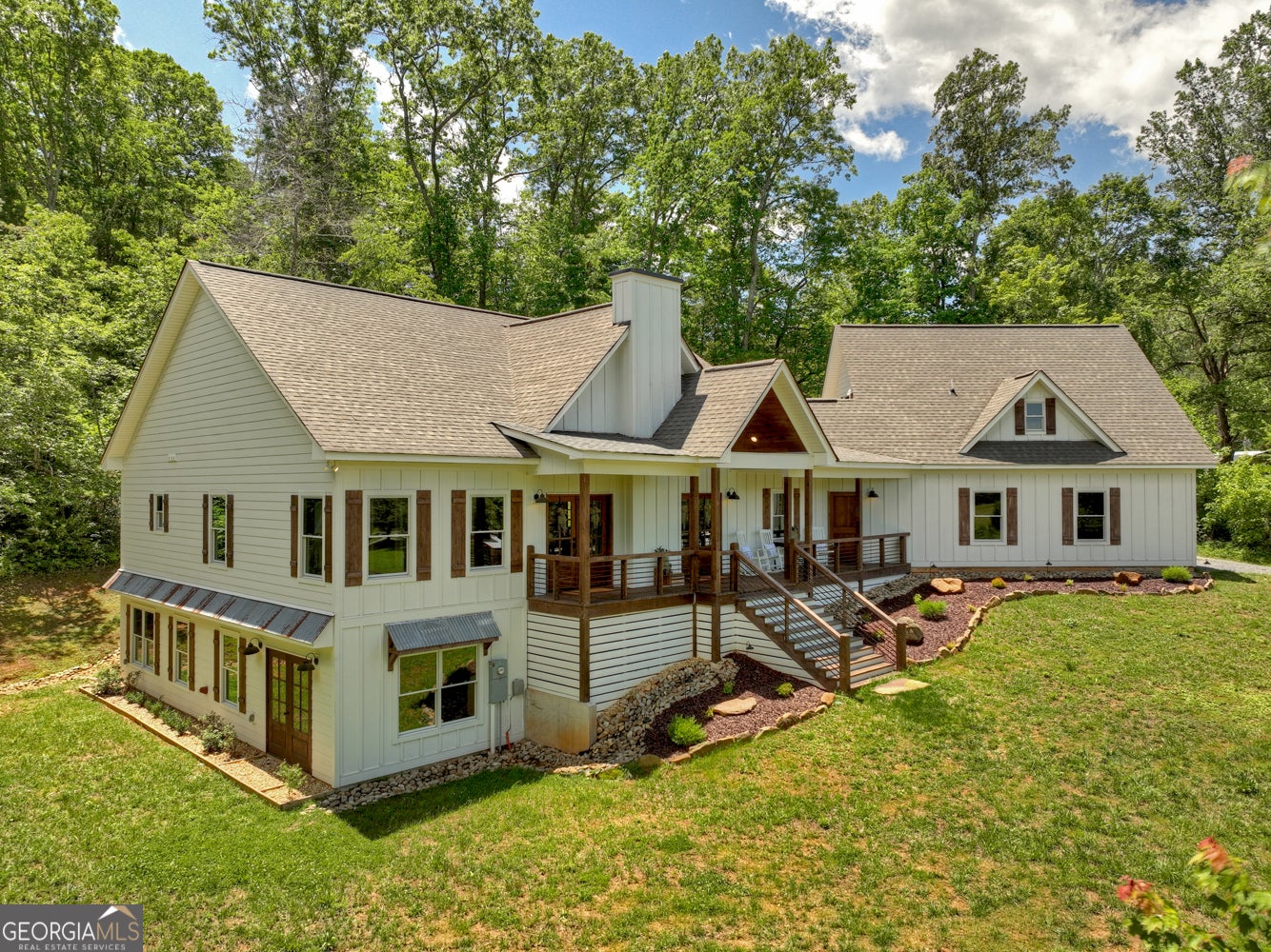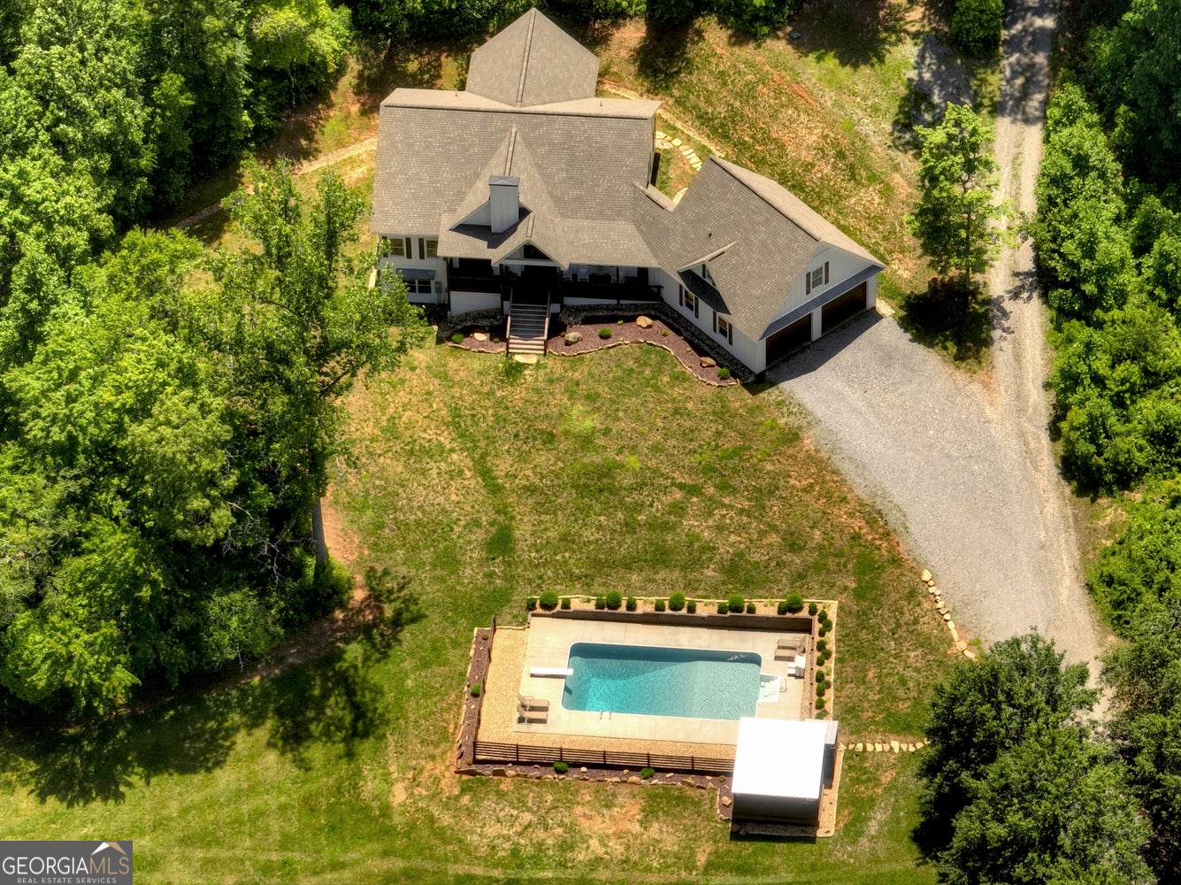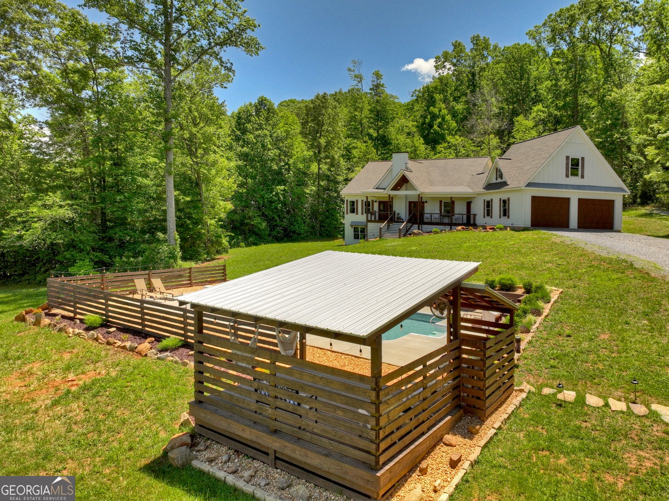 Welcome to your dream retreat tucked into the scenic Blue Ridge countryside. This three-bedroom, four-and-a-half-bath modern farmhouse blends luxury with rustic charm, offering a spacious layout suited for everyday comfort and upscale entertaining alike. Inside, warm wood flooring complements bright, airy walls, while sky-high ceilings and expansive windows flood the great room with natural light. A massive fireplace creates the ultimate gathering spot, and the chef's kitchen features custom cabinetry, a supersized island, and premium appliances that opens to oversize dining area.??Upstairs, a large loft adds flexibility to the living space-great for a second living area, office, or game room. Each bathroom boasts a spa-inspired design, complete with tiled shower in master and granite counters. The expansive primary bedroom is a true retreat, and the attached en-suite feels like a luxury day spa.??Step outside to find a private, level yard accented by lush landscaping and a perfectly positioned fire pit for starlit conversations. The covered rocking chair porch overlooks a picturesque mountain backdrop, along with a stunning pool and entertainment area that's sure to impress guests year-round. A 2+ car garage offers ample storage, and the bonus suite above is perfect for guests or a private studio space.?? Located just minutes from local parks, markets, and schools, this property sits on a scenic, paved country road and offers the peace of nature with convenient access to nearby amenities. With craftsmanship and character at every turn, this home isn't just a place to live-it's a lifestyle.