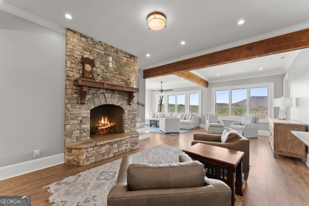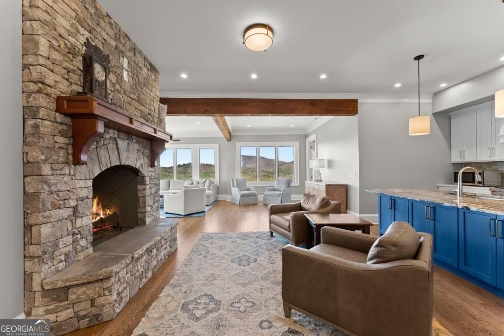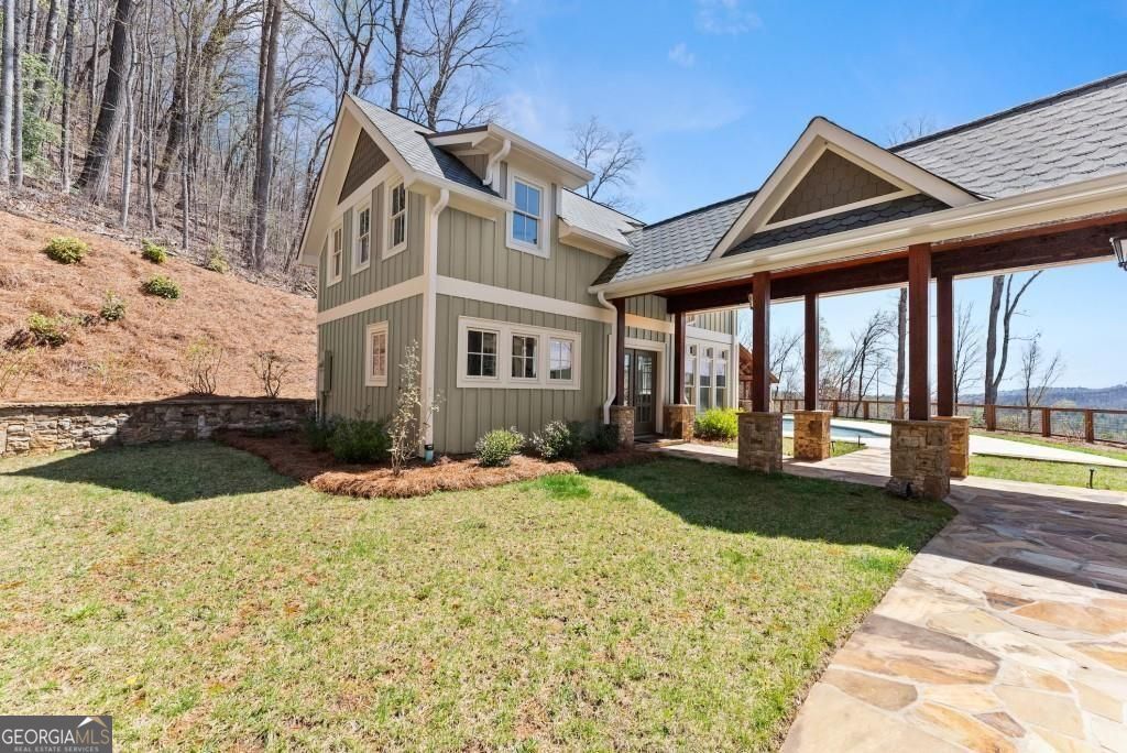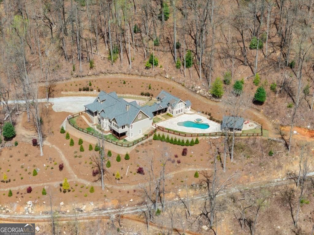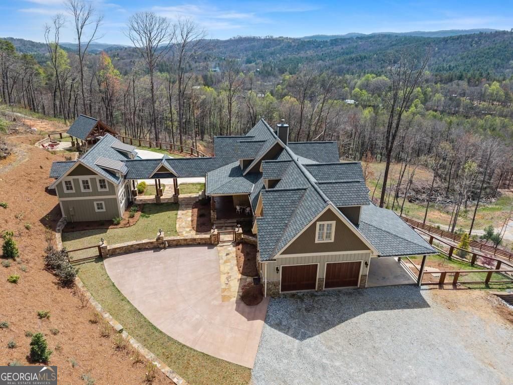 Nestled amidst the serene splendor of Tiger Mountain, this breathtaking 9-acre homestead seamlessly blends natural beauty with refined luxury. Located just 90 minutes from the heart of Atlanta and 12 minutes from the shores of Lake Burton and the charming town of Clayton, this property offers the perfect balance of accessibility and tranquil retreat. Perched high up the mountain the homestead boasts uninterrupted, panoramic views of pristine wilderness, facing expansive land managed by the US Forest Service-ensuring a timeless sanctuary with little chance of future development. Surrounded by towering hardwoods and the gentle whispers of nature this estate invites you to unwind and reconnect. The sprawling acreage provides endless possibilities whether you envision private hiking trials, a thriving garden, or simply a haven of peace and privacy. At the heart of this retreat lies an outdoor oasis designed for unforgettable gatherings: a heated pool with attached jacuzzi and cascading waterfall, a fully equipped outdoor kitchen, and a cozy fire pit area. All are crafted to elevate entertaining to a luxurious art form. Imagine hosting family and friends under the open sky, with ample space to invite then all- these amenities promise cherished memories filled with laughter, warmth and relaxation. The multilevel, Craftsman style, main house and accompanying pool house offer 8 spacious bedrooms, 8 full and 3 half bathrooms ensuring comfort and privacy for every guest. Enter the beautiful alder wood front door to discover rich hardwood floors that flow throughout. Ten-foot ceilings and eight-foot doors create an airy, expansive ambiance in every room. Adding to the allure are two stone fireplaces for those cool evenings. The owner's suite elevates luxury further with a spa-inspired bathroom featuring marble tile and a beautiful soaking tub room with a view overlooking the mountains. Convenience meets indulgence with two full kitchens, two additional kitchenettes, four laundry areas and a rejuvenating indoor sauna. Every detail has been thoughtfully designed to make life effortlessly enjoyable whether you're preparing a feast, unwinding after a day of mountain or nearby lake adventures or simply soaking in the serenity. From the crisp mountain air to the star-filled skies, this Tiger Mountain gem promises a lifestyle defined by natural wonder, boundless possibilities and the ultimate in sophisticated comfort. Imagine the memories waiting to be made in a place where luxury and nature unite in perfect harmony.