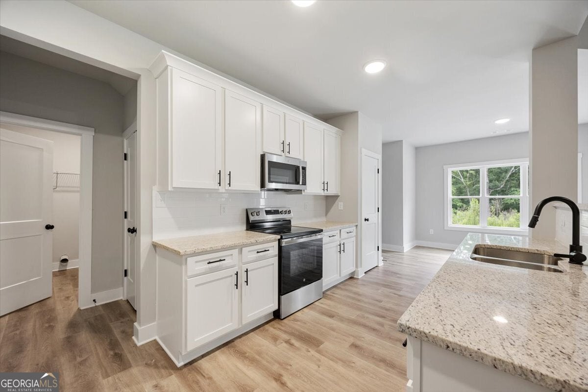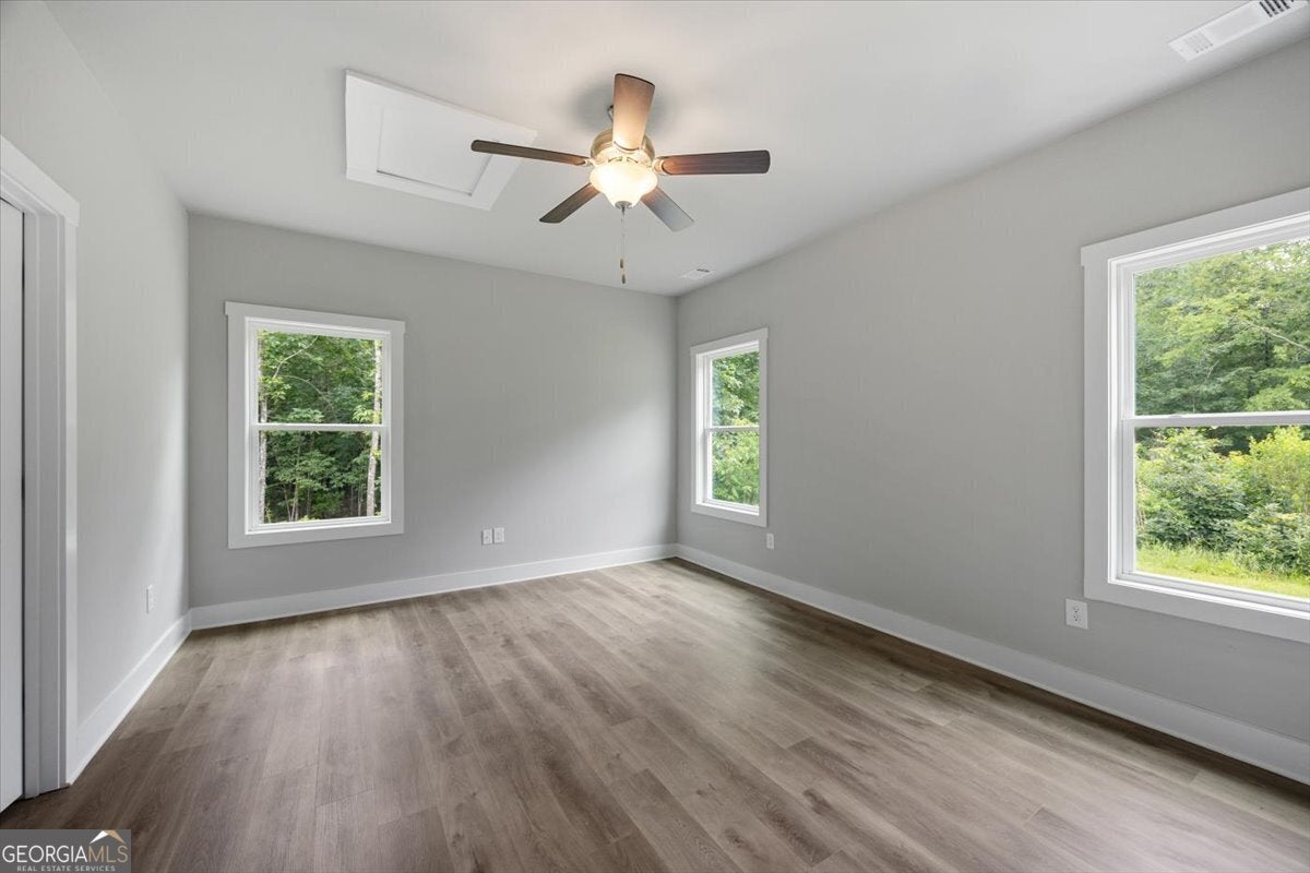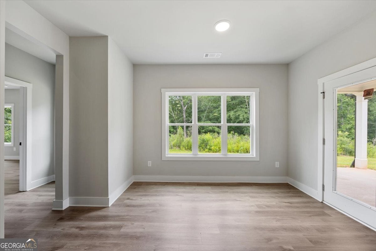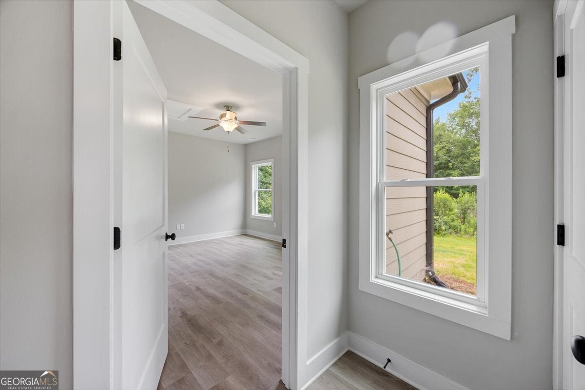This stunning home, perfectly situated in the heart of Gray, offers 5 bedrooms and 3 bathrooms on nearly an acre and a half of land. As you enter through the front door, you'll find a large dining room that can also serve as a home office, seamlessly opening into the inviting family room. The modern kitchen boasts granite countertops, a large island, tile backsplash, stainless steel appliances, and a generous pantry. The main floor features a spacious primary suite and an additional bedroom. The primary suite, located just off the family room, includes his-and-her vanities, a soaking tub, a separate tile shower, and two walk-in closets. You'll also find LVP flooring throughout the main living areas, the primary bedroom, and the secondary main-floor bath, with cozy carpeting in the upstairs bedrooms. A covered back patio provides the perfect space for outdoor entertaining. Situated on city water and sewer and within walking distance to downtown Gray, this home offers both convenience and charm-with no HOA fees. Don't miss your chance to own this gorgeous new construction!