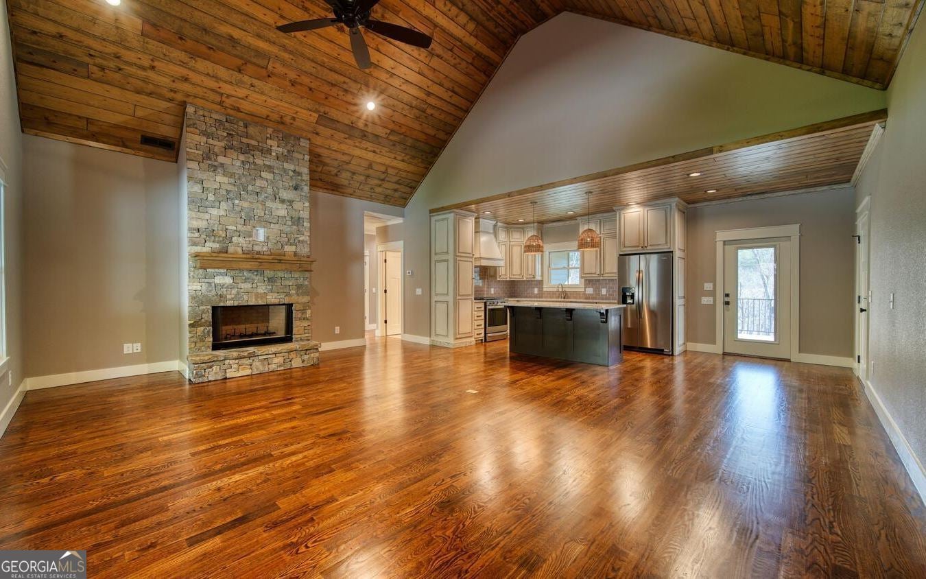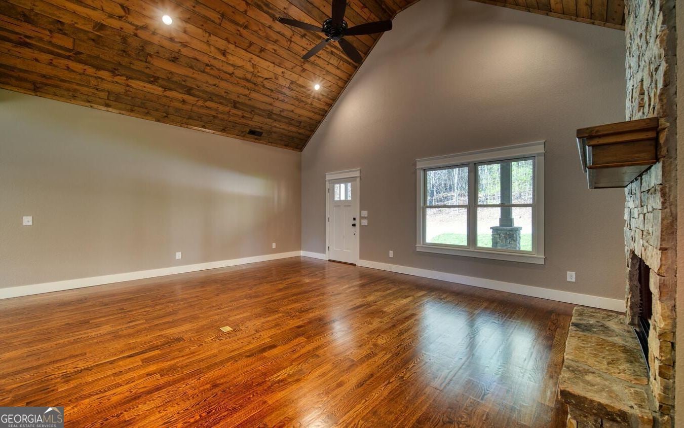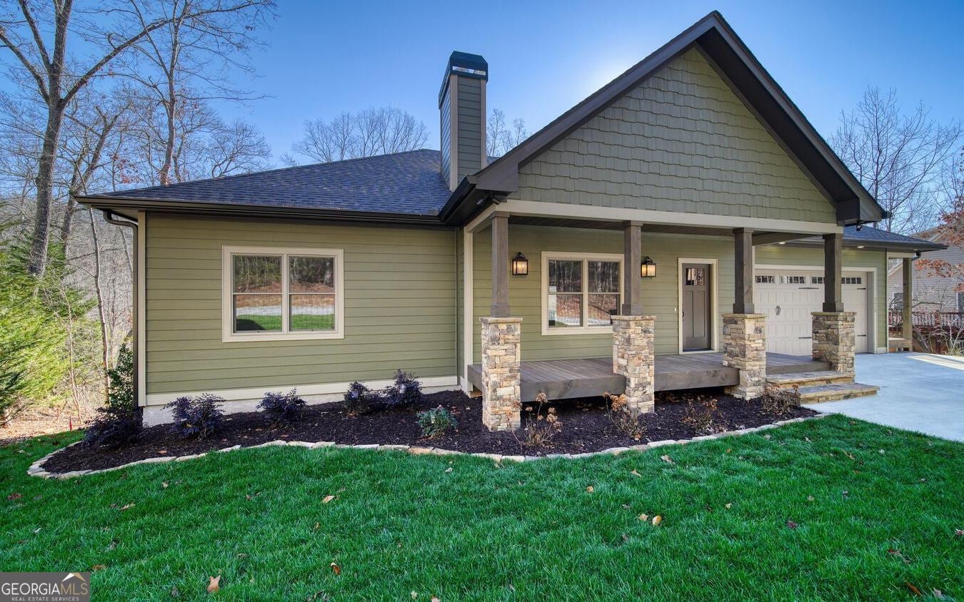 Almost new home with high end finishes. Furnished. Great Room with wet bar, two fireplaces, huge covered porch, real sanded wood floors, granite counters in kitchen and baths, hardi board siding, concrete driveway, beautiful landscaping and sod, bonus room, and 4-bedroom septic system. All overlooking a large flat yard and Lake Chatuge. Home is on the upper end of the lake where it joins the river. It is seasonal docking for larger boats and pontoons but smaller boats and kayaks could navigate it year-round. When the lake level is down, the home is still on a fast flowing river. Dock permit was issued to Builder (see Permit in Documents).