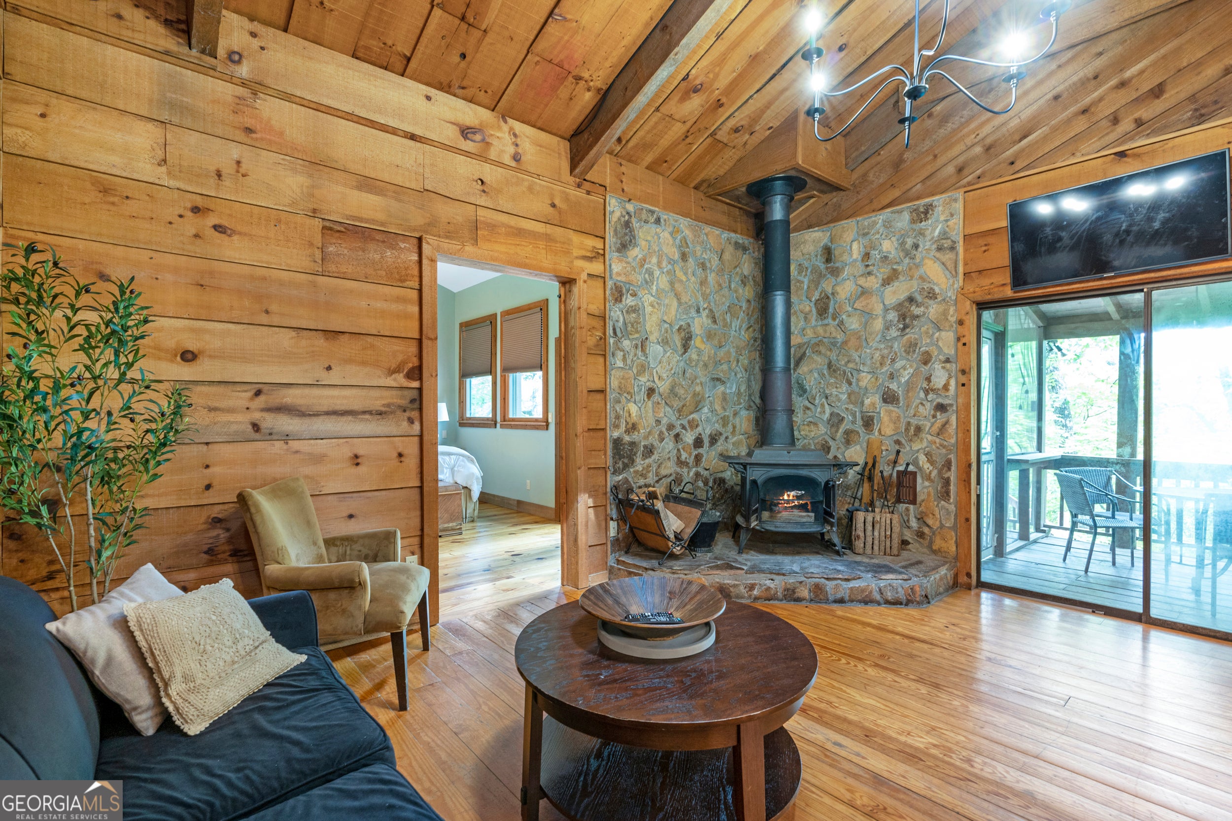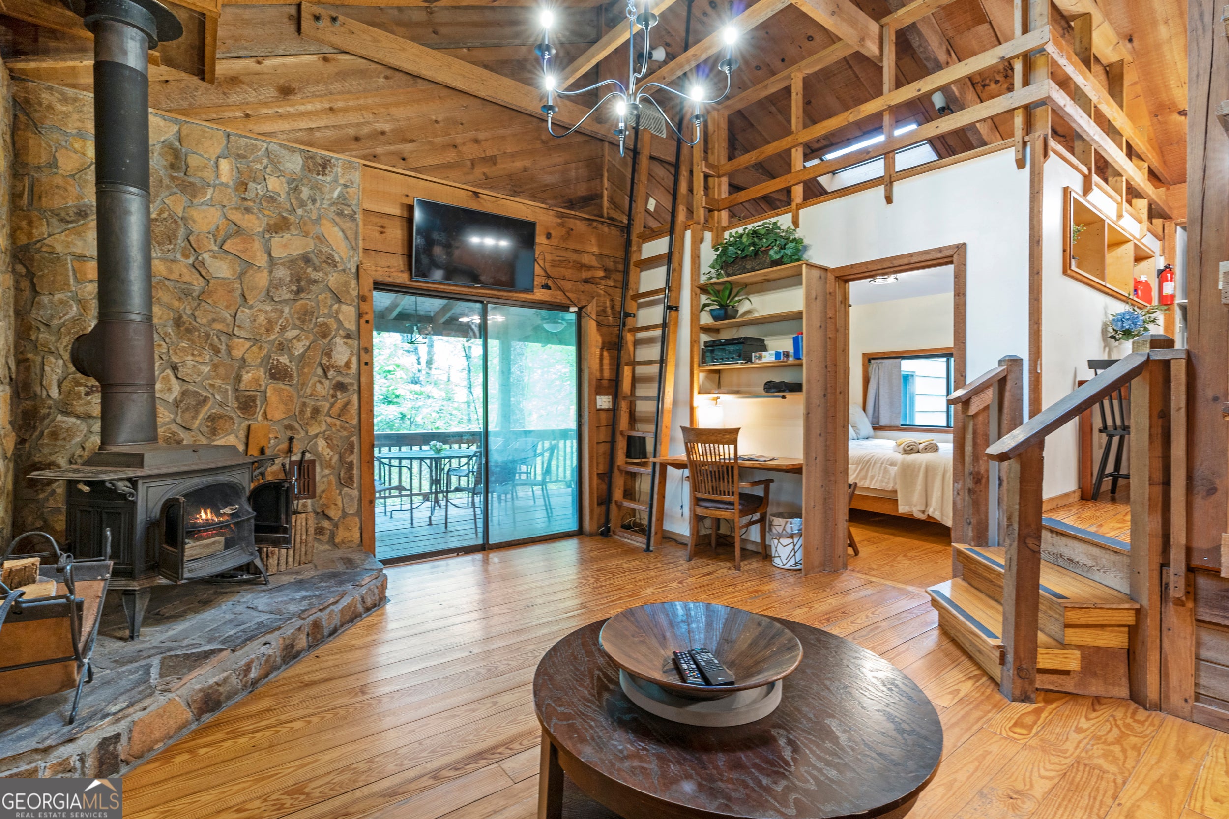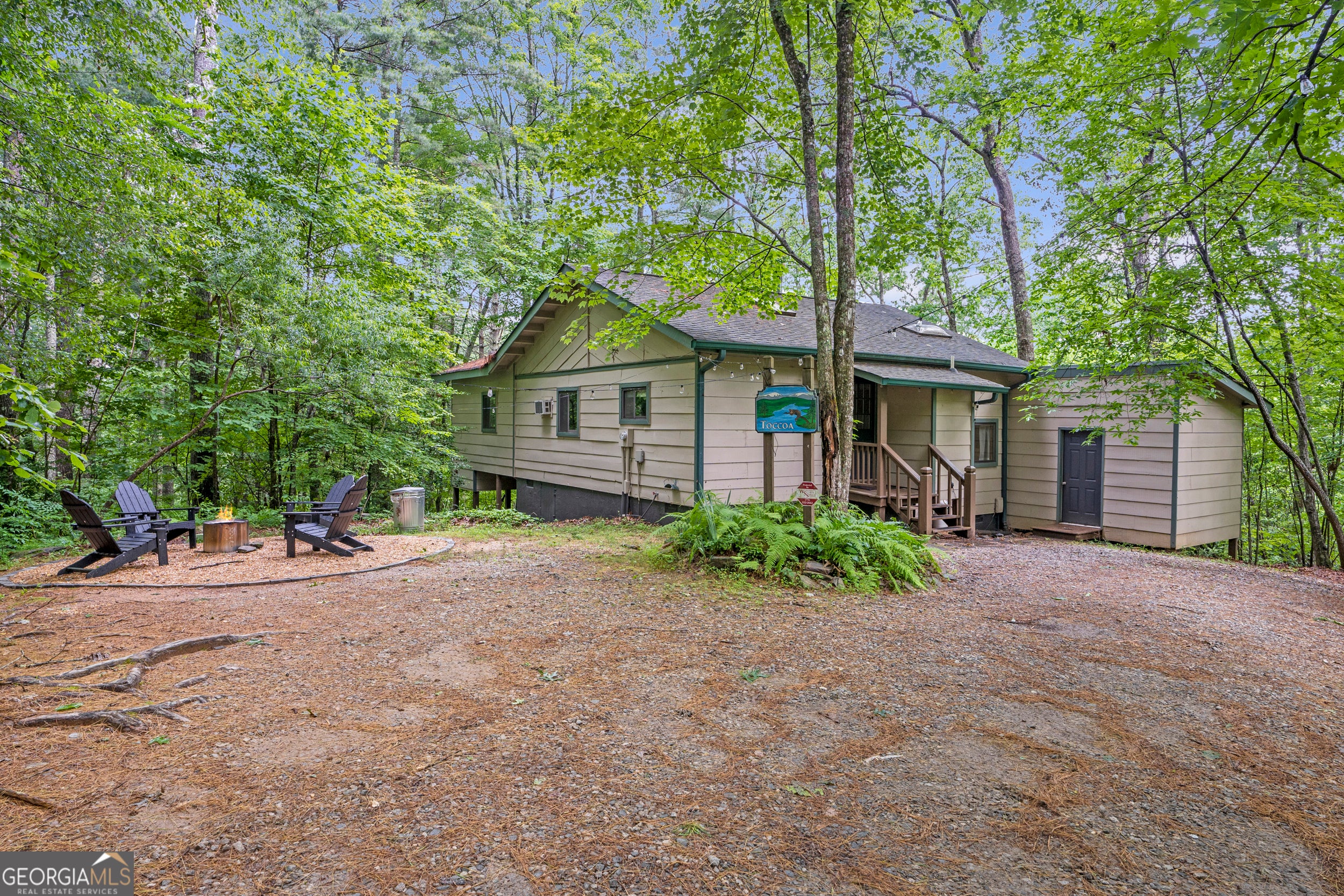 NEW PHOTOS THIS WEEK! This perfect cabin gives you all the tree house vibes! Nestled among the gorgeous Blue Ridge tall pines, you get an instant, peaceful feeling when you relax on the expansive back deck watching family & friends play and enjoy the natural surroundings. Featuring three bedrooms and two bathrooms, this cabin in the woods offers guests everything one would need to get away from the stresses of everyday life. The Owner's Suite on the main floor features an en suite bathroom and convenient access to the back deck for your morning coffee. Stainless steel appliances, & coffee bar complement the kitchen. The wood-burning stove creates a warm ambiance and transports you back in time. With both an open deck and covered screened porch, you will be able to spend time outside no matter the weather! There's plenty of parking, a firepit area and storage. Close to all of the attractions and amenities of Blue Ridge, this home makes the perfect weekend getaway or Airbnb/VRBO investment.