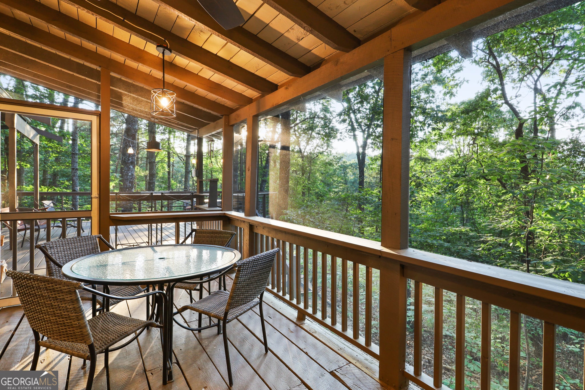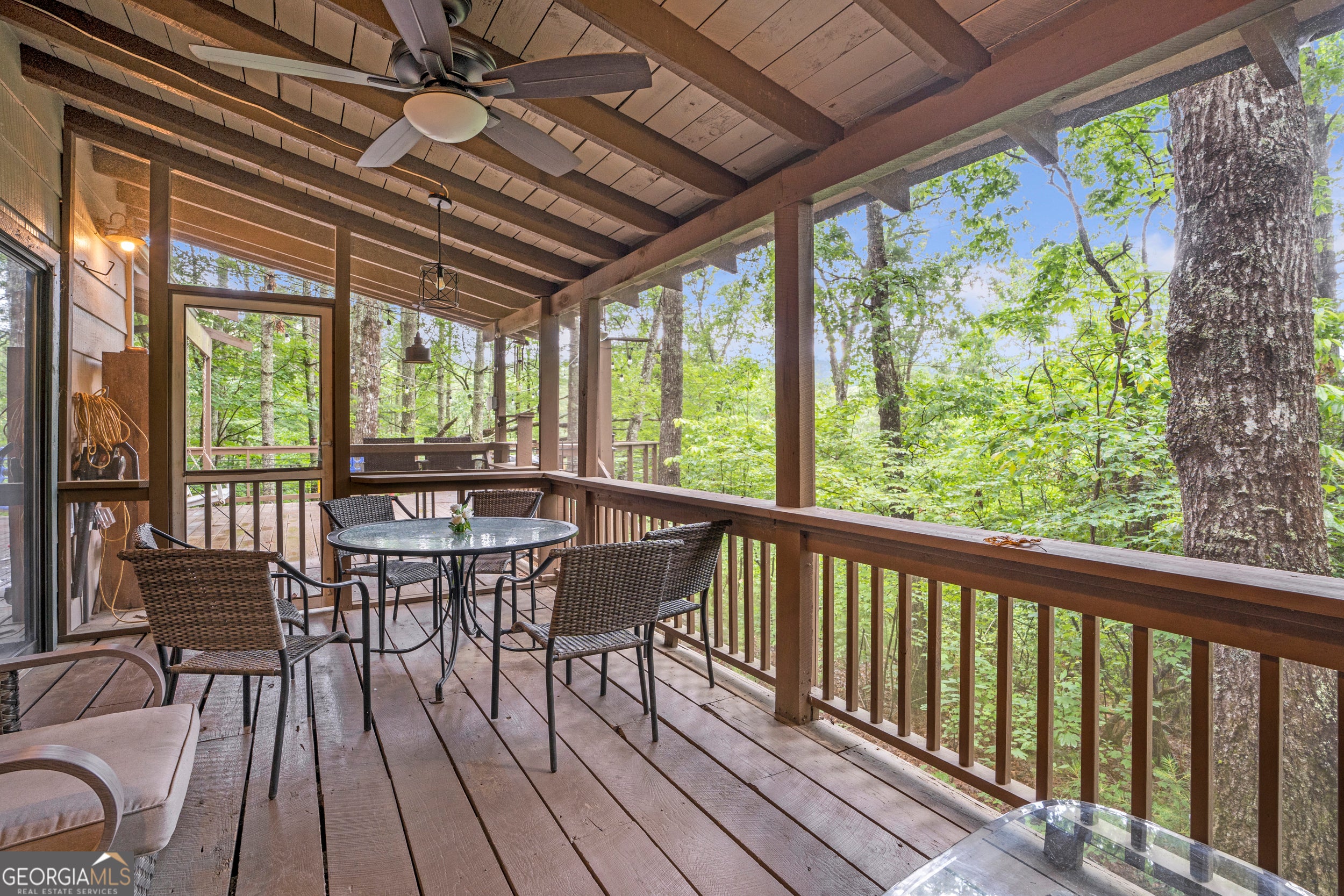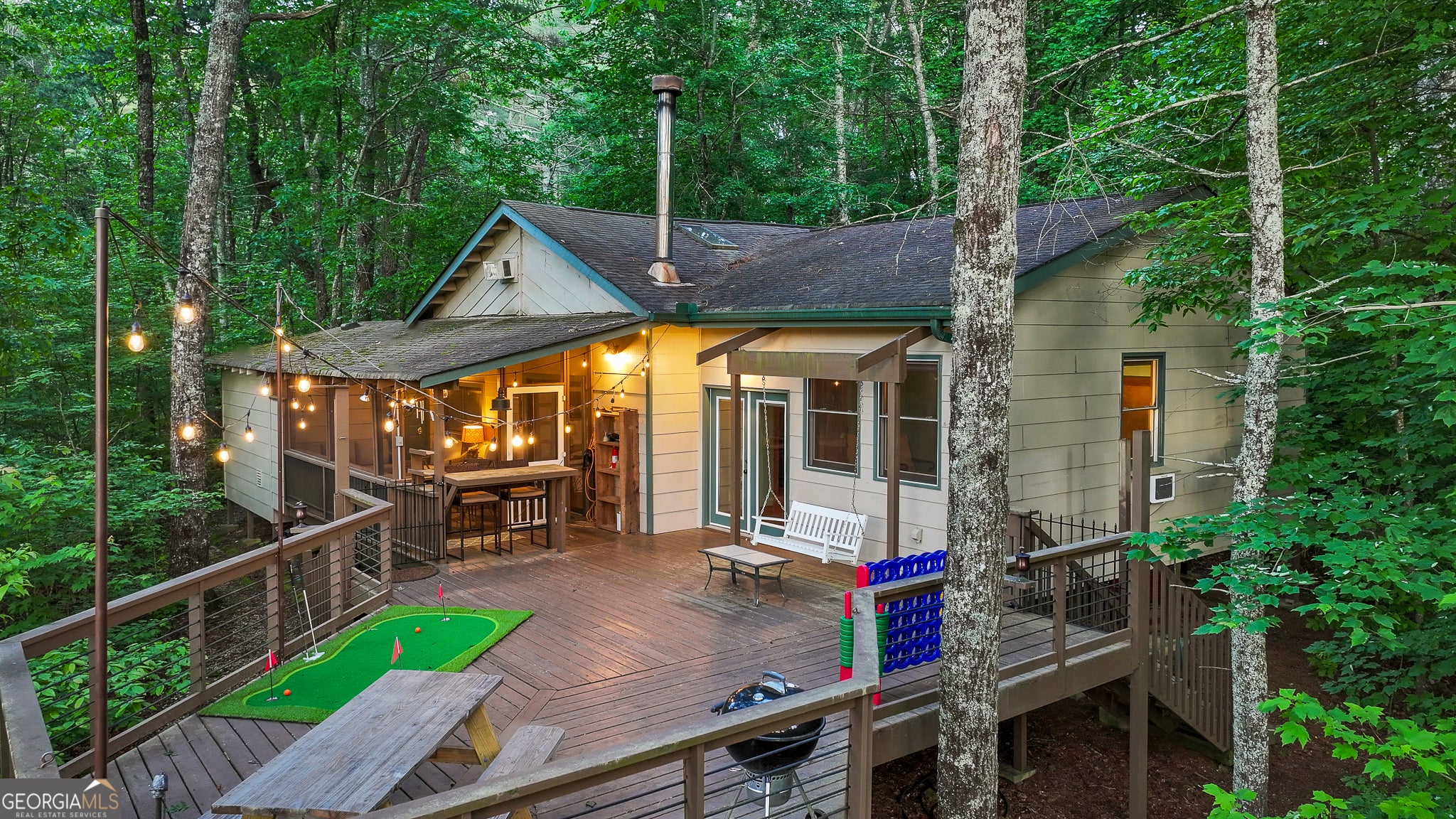 NEW PHOTOS THIS WEEK! This perfect cabin gives you all the tree house vibes! Nestled among the gorgeous Blue Ridge tall pines, you get an instant, peaceful feeling when you relax on the expansive back deck watching family & friends play and enjoy the natural surroundings. Featuring three bedrooms and two bathrooms, this cabin in the woods offers guests everything one would need to get away from the stresses of everyday life. The Owner's Suite on the main floor features an en suite bathroom and convenient access to the back deck for your morning coffee. Stainless steel appliances, & coffee bar complement the kitchen. The wood-burning stove creates a warm ambiance and transports you back in time. With both an open deck and covered screened porch, you will be able to spend time outside no matter the weather! There's plenty of parking, a firepit area and storage. Close to all of the attractions and amenities of Blue Ridge, this home makes the perfect weekend getaway or Airbnb/VRBO investment.