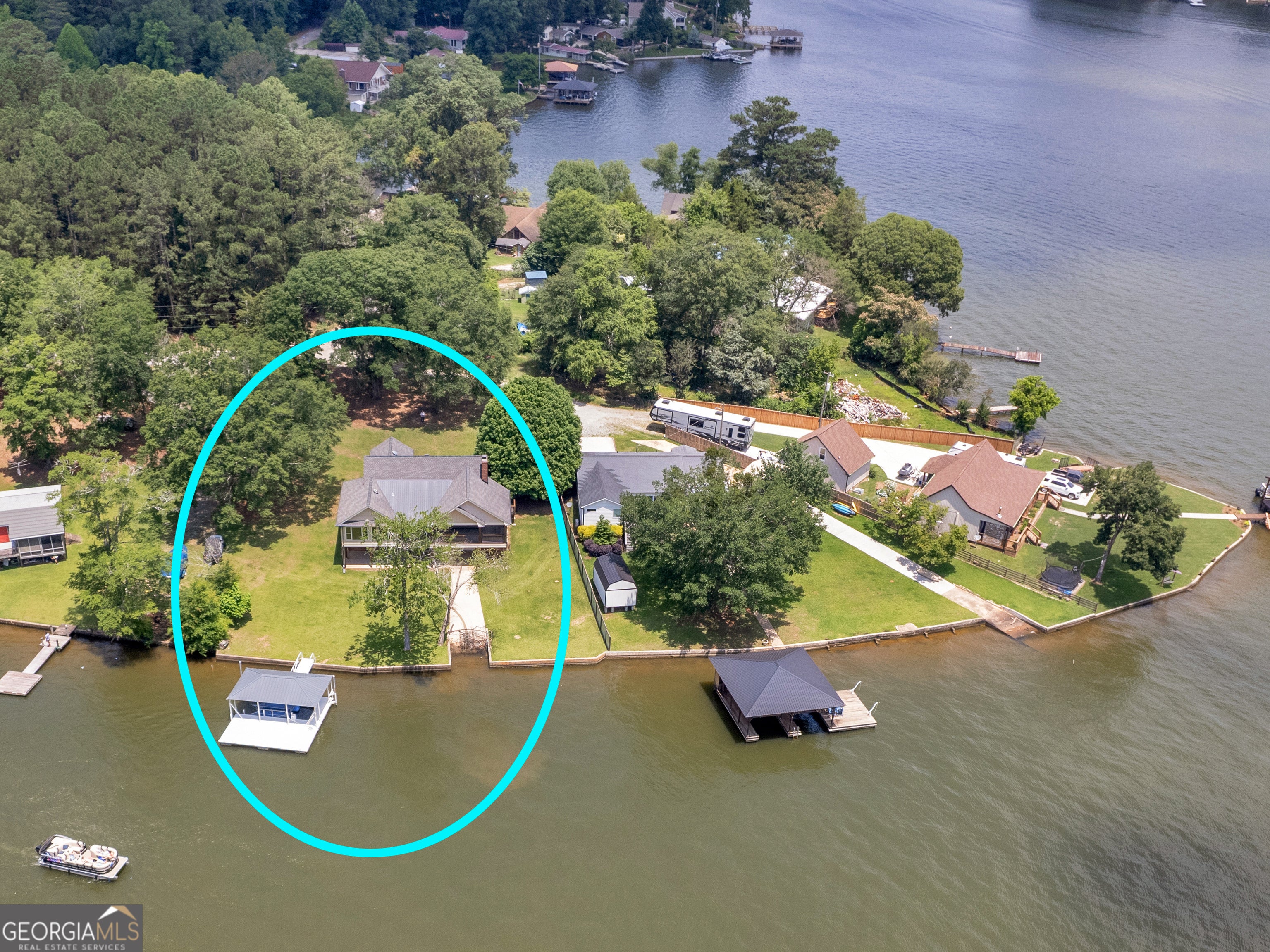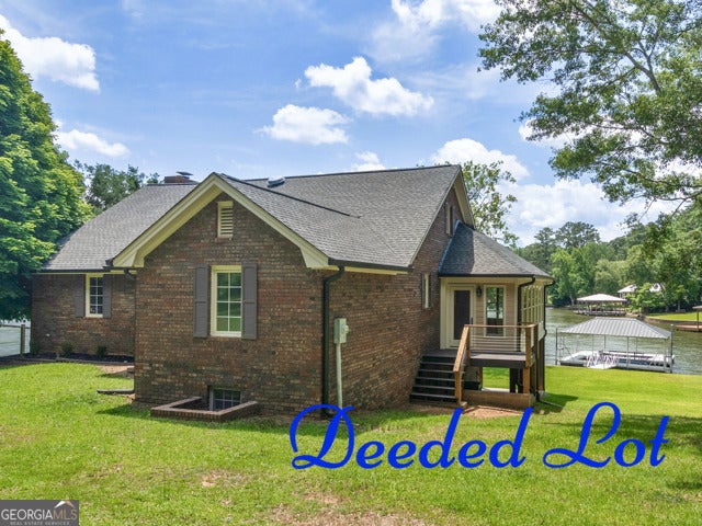 Let's Talk... HOME SWEET HOME ON JACKSON LAKE! Solid Brick Beauty on .57 Acre DEEDED lot. And you'll have your own Boat Ramp! Fabulous big water view and 134 feet of shoreline plus Covered Dock and Boat Lift. This property is an Entertainer's Delight with the large party room, bath and kitchenette on the lower level that leads to a flat yard with beautiful St. Augustine grass for friends and family fun. The kids will love the playroom in the cool Loft overlooking the Dining area and great room. The large kitchen has a long breakfast bar and plenty of pantry and storage space. Be sure to see the super Sunroom & Covered Deck with gorgeous lake views for relaxing coffee and tea times. Each comfortable bedroom has a private bath and large closet. This interior is low maintenance with the brick and cedar never needing painting. Take a Sunday Drive and Come to the Lake! For more details...Talk to Tammy and Jamie!