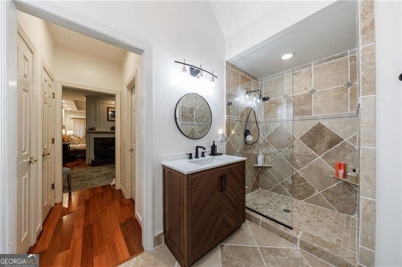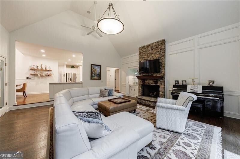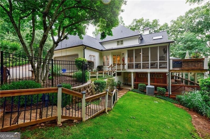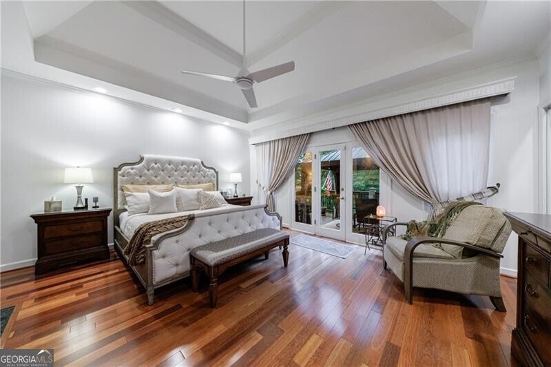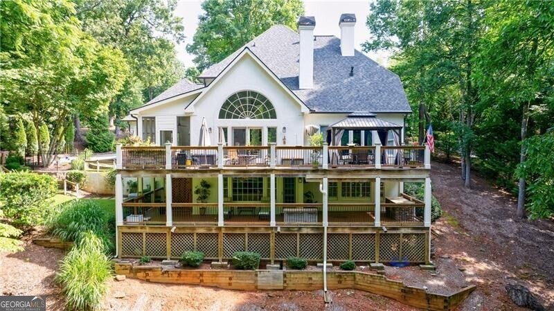 Welcome to this elegant hard-coat stucco Estate home, ideally situated on a serene and quiet cul-de-sac in the prestigious COUNTRY CLUB OF THE SOUTH. A charming exterior with stone accents and a classic beveled glass front door set the tone for the warmth and sophistication that awaits inside. Step into the grand two-story foyer, where natural light and timeless elegance greet you. The formal dining room, adorned with a bay window, provides the perfect setting for both intimate dinners and large-scale entertaining. The spacious Great Room is the heart of the home, featuring vaulted ceilings, a wall of windows, a fireplace with floor to ceiling stack stone, and French doors leading to the main-level porch. Designed for everyday living and seamless entertaining, the open-concept kitchen flows into the breakfast area and Great Room, with easy access to the screened porch-an ideal retreat for morning coffee or evening relaxation. The main-level primary suite is a true sanctuary, complete with a cozy sitting area, two-sided fireplace, and private access to the porch. Upstairs, you'll find three generously sized bedrooms: one with an en-suite bath and two sharing a well-appointed adjoining bath, all with abundant closet space. The fully finished terrace level is an entertainer's dream, offering a second kitchen, large family room, office, yoga/exercise room, guest bedroom, and full bath. Step outside to the covered terrace-level porch, featuring a custom stay-dry gutter system-perfect for enjoying the outdoors in any weather. This move-in ready home offers luxury, comfort, and lifestyle-all within one of Atlanta's most sought-after gated communities. Residents enjoy resort-style living with 24/7 manned security, a Jack Nicklaus-designed golf course, clubhouse, swim and tennis facilities, and a welcoming neighborhood atmosphere.