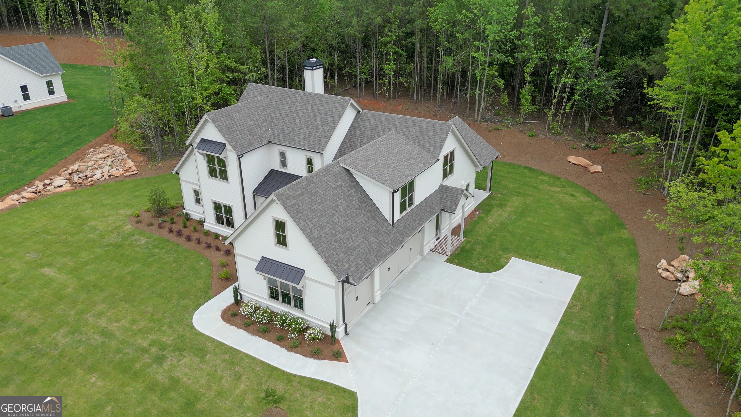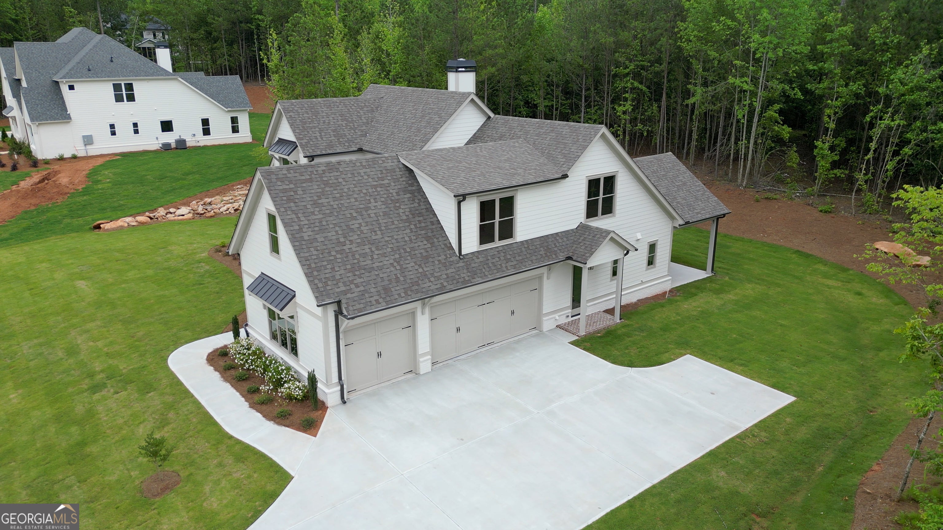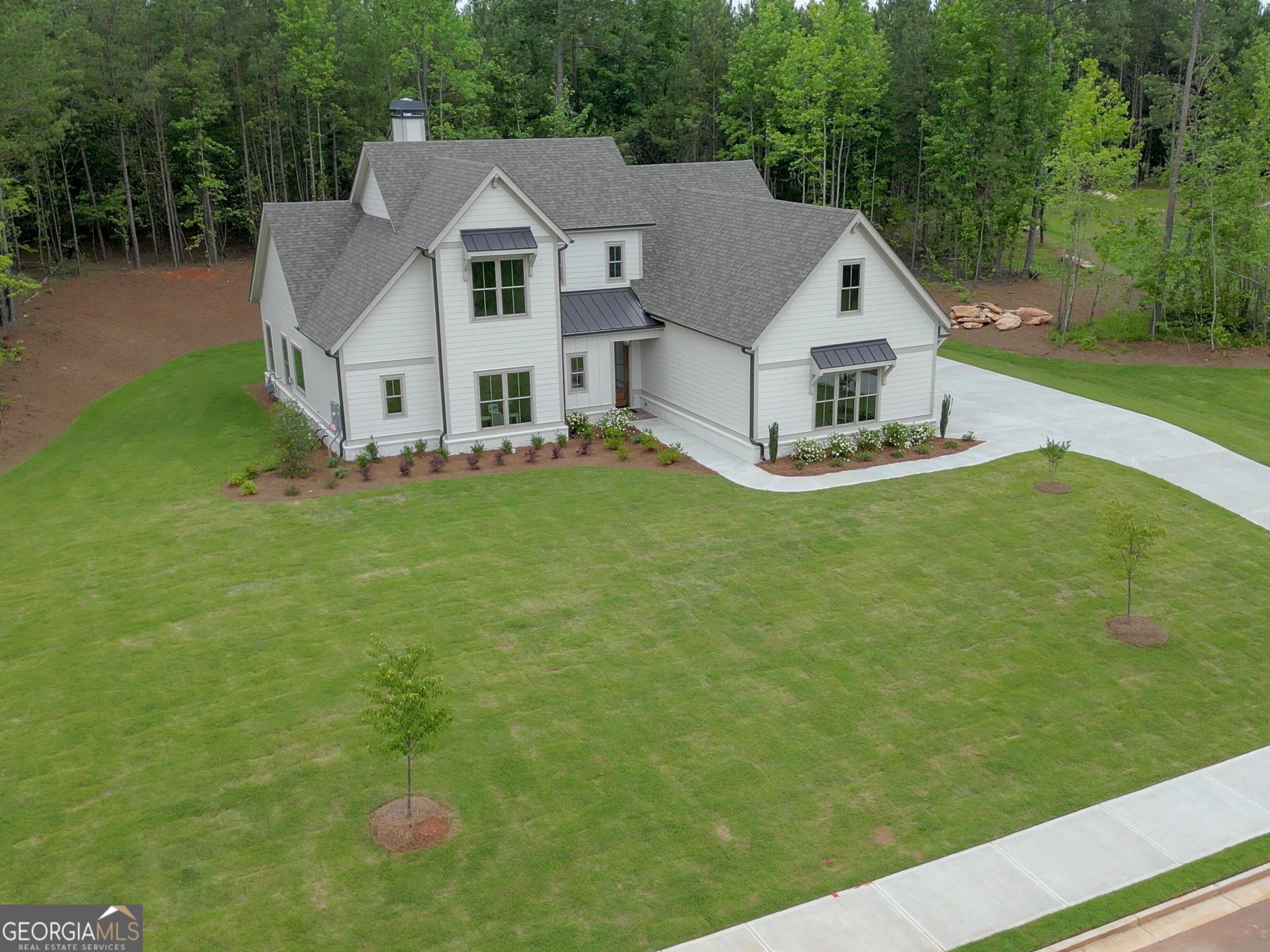 Introducing the Blair Valley, where timeless design meets modern luxury. This open concept residence seamlessly integrates classic charm with contemporary comforts. On the main level, the elegant owner's suite awaits, boasting a spa-like ensuite bathroom and a generously sized walk-in custom closet system designed for the utmost convenience and style. Enter the grand family room, graced by a soaring volume ceiling and adorned with custom beams that add architectural elegance. Oversized windows flood the space with abundant natural light, illuminating the sophisticated fireplace-a focal point that enhances both warmth and ambiance. The chef's kitchen is a culinary masterpiece, featuring top-of-the-line Thermador appliances, sleek quartz countertops, a substantial island, a walk-in pantry ideal for storing essentials and custom finishes. The kitchen serves as the central hub of the home, pulsating with warmth and activity. Conveniently located on the main level, a guest suite offers privacy with its own ensuite bathroom, adaptable for accommodating guests or serving as a serene home office retreat. The mudroom is as practical as it is striking, providing organized storage and seamless entry from the outdoors. Upstairs, three additional bedrooms await, each thoughtfully designed with direct access to bathrooms, ensuring comfort and convenience for family and guests alike. Outside, a vaulted covered rear porch invites leisure and entertainment, perfect for grilling amidst the picturesque surroundings. The backyard, meticulously prepared and awaiting your personal touch, is primed for creating a luxurious pool oasis-a sanctuary where relaxation and recreation harmonize seamlessly. Discover unparalleled craftsmanship, refined details, and exceptional living spaces in the Blair Valley-a residence crafted for those who appreciate the finer things in life and seek to elevate their everyday experience. This home has been professionally designed but you still have time to make selections for your own taste. Residents of this exclusive community enjoy privileged access to a pool, clubhouse, tennis and pickleball courts, parks, and playgrounds. Nestled in Arbor Springs, the home ensures tranquility amidst nature while being conveniently located just a short drive away from top-rated schools, the new Publix shopping center, Newnan, Peachtree City, and I85. Furthermore, it's only 10 minutes from the Ashley Park shopping center and 20 minutes from Hartsfield Jackson International Airport and the Atlanta area.