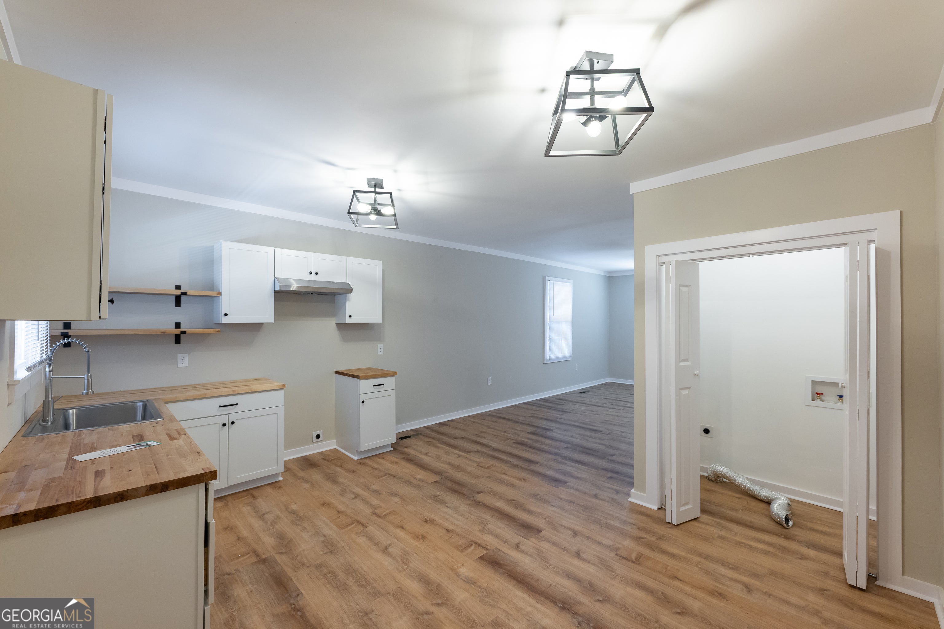 Absolutely charming and move-in ready, this beautifully renovated bungalow in the highly sought-after Silvertown neighborhood seamlessly blends classic character with modern upgrades-and features a rare open floor plan that truly sets it apart. Homes in Silvertown are known for their traditional layouts, but this thoughtfully redesigned interior offers the spacious, airy flow today's buyers crave. From the moment you arrive, you'll notice the fresh new vinyl siding, inviting front porch, and stylish curb appeal. Inside, you're welcomed by gorgeous, light-finish LifeProof flooring that extends throughout the home, creating a bright and cohesive look. The cozy yet spacious living area opens seamlessly into a stunning all-new kitchen, forming a wide, open-concept living space ideal for both entertaining and everyday living. The kitchen is a showstopper-complete with brand-new white cabinetry, sleek butcher block countertops, stainless steel appliances, modern fixtures, and ample counter space. Whether you're hosting friends or enjoying a quiet night in, this open kitchen-living combo offers flexibility and comfort. Both bedrooms are generously sized, and the beautifully updated bathroom features a custom vanity and on-trend finishes. Nearly every component of the home has been replaced or upgraded, including new wiring, plumbing, ductwork, insulation, windows, panel box, sheetrock, and light fixtures-offering peace of mind for years to come. Step outside to enjoy a brand-new back deck that overlooks your private, fenced backyard-perfect for pets, kids, or a quiet garden retreat. A partial unfinished basement provides excellent storage or workshop space. Easily access your new home from the convenient back alley. Nestled on a quiet street just minutes from downtown Thomaston, restaurants, schools, and the hospital, this rare Silvertown gem offers the charm of an established neighborhood with the convenience and comfort of a modern renovation. Don't miss your chance to own one of the few Silvertown homes with an open floor plan and full top-to-bottom updates!