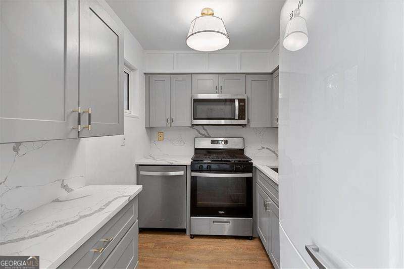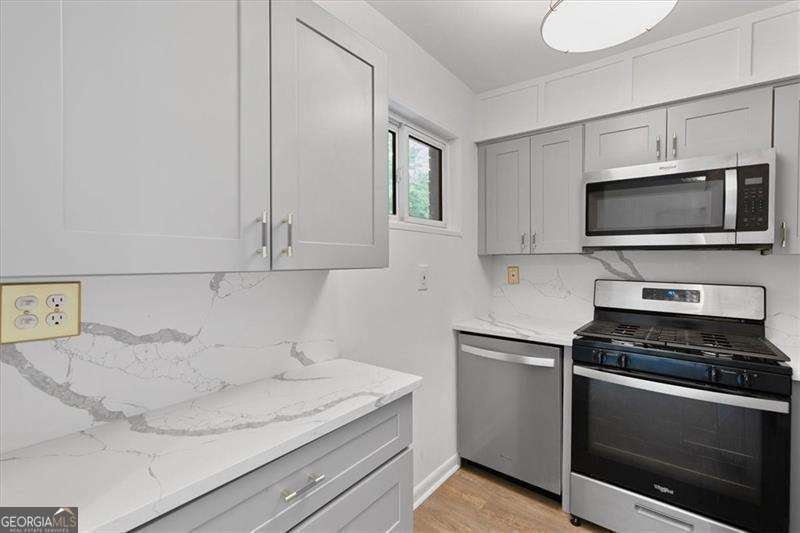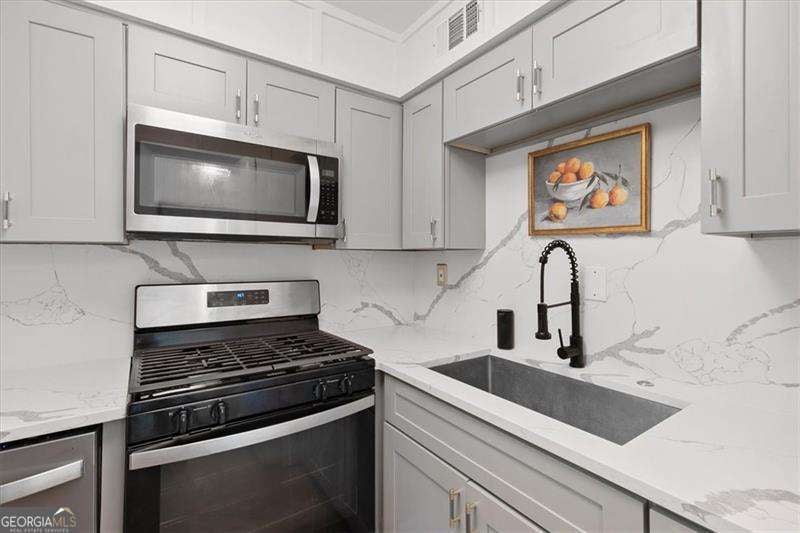 The BEST deal in Arborgate - LISTED $55k LOWER THAN LAST PURCHASED FOR IN 2023, WITH NUMEROUS UPGRADES MADE SINCE! RUN, DON'T WALK TO THIS DEAL OF A LIFETIME! Located in the heart of the city, but nestled in a quiet and established community, Arborgate is just moments from the best shopping & dining, Piedmont Hospital, the Beltline, SCAD and MUCH more! This one of a kind renovation does not come up often in this neighborhood. This home features brand new luxury vinyl plank floors throughout the main level. The spacious living room features a custom wet bar - ideal for hosting. The stunning kitchen has soft close cabinetry, a $5K SMEG fridge, quartz countertops, stainless steel appliances (including a gas range), and beautiful backsplash - no detail has been overlooked! Don't miss the adorable half bathroom with fun wallpaper and modern fixtures. Off the dining/kitchen area is a large fenced in patio area. Enjoy ultimate privacy as an end unit at the back of the complex - the patio receives great shade and is the perfect place to spend summer evenings!! Upstairs are two large bedrooms that share a beautiful updated bathroom with custom tile work. The master bedroom features a custom closet to optimize storage. Don't miss the stackable laundry conveniently located upstairs and the gorgeous custom cabinetry. Arborgate has easy parking, a well managed HOA, multiple courtyards, and a private pool. Even in the heart of the city, this home truly feels tucked away & tranquil. After a year of ownership, this home is able to be rented. Don't miss this great opportunity at an incredible in-town price point!