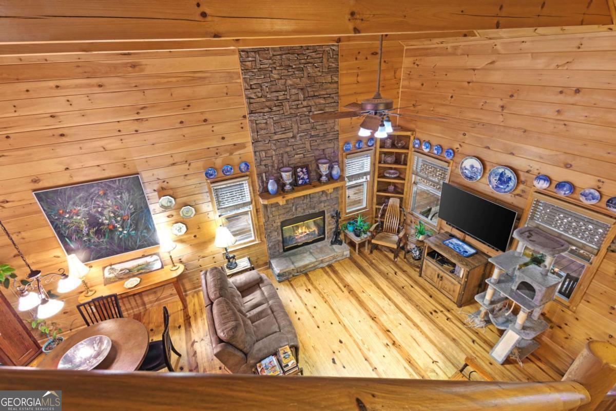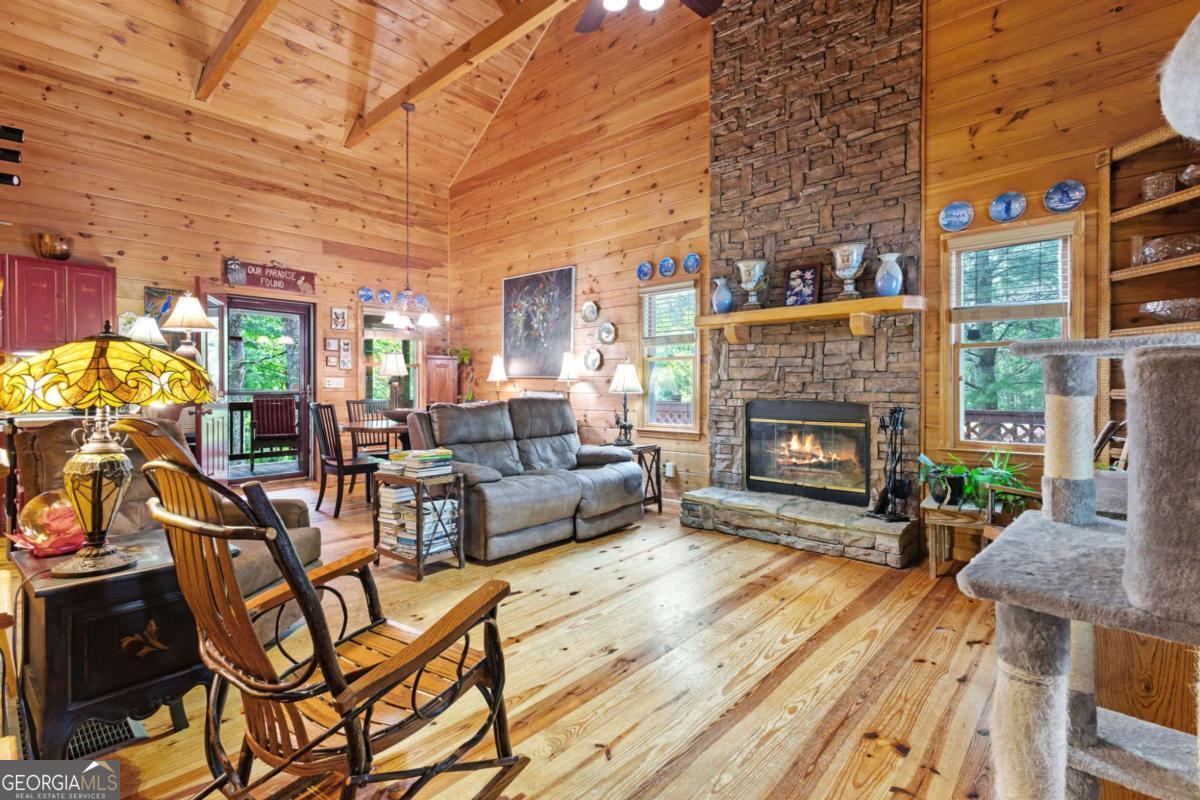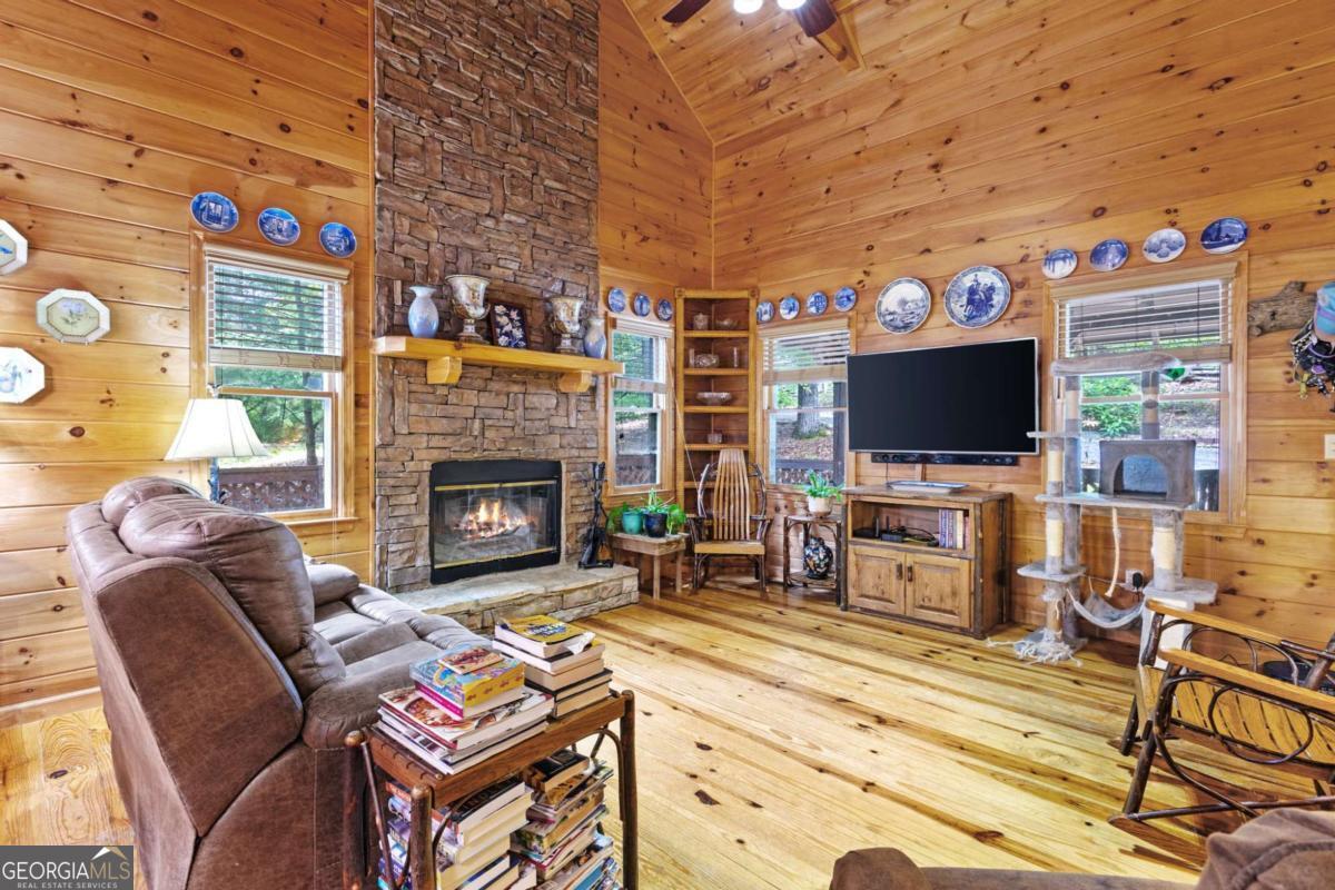 A charming and peaceful retreat nestled in the desirable Woodland Acres community of Ellijay, GA. This cabin offers the perfect blend of rustic charm and cozy comforts, ideal for a weekend getaway or a full-time mountain residence. Surrounded by the serene beauty of mature hardwoods and seasonal mountain views, this home features a warm, open floor plan with a stone fireplace, wood accents, and ample natural light. Step out onto the covered porch to enjoy quiet mornings with your coffee or unwind in the evenings listening to nature. With easy access to downtown Ellijay, hiking trails, and local vineyards, this property is a true North Georgia gem. Whether you're looking for a personal escape or a short-term rental investment, this cabin has endless potential.