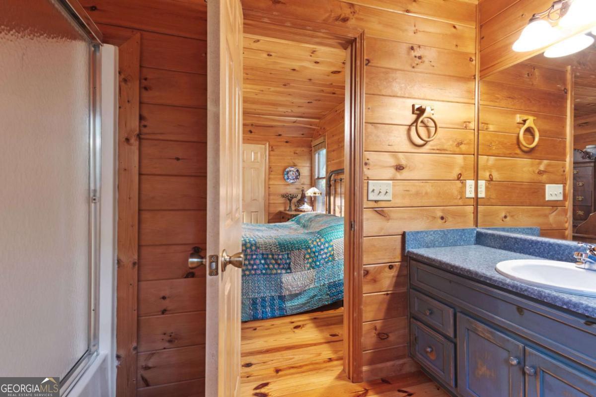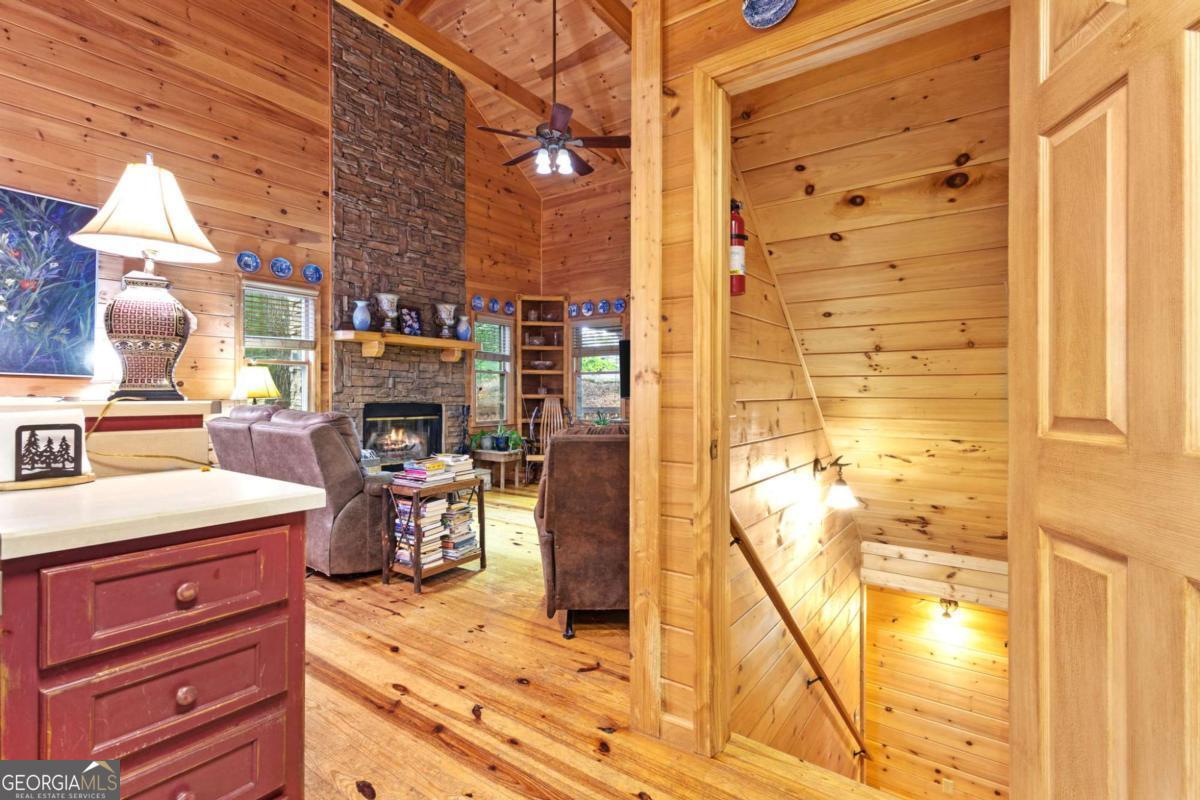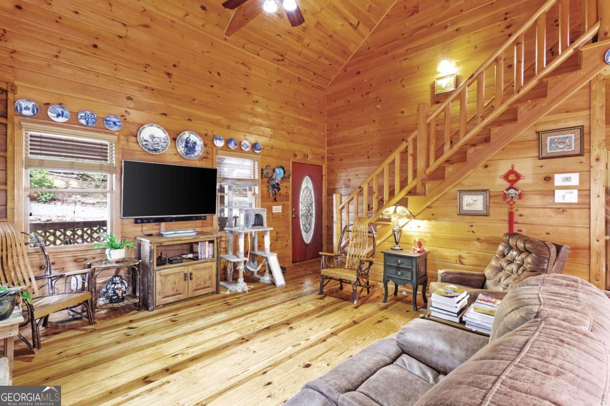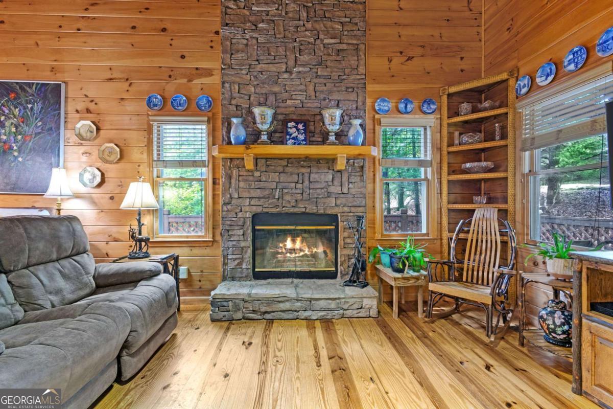 A charming and peaceful retreat nestled in the desirable Woodland Acres community of Ellijay, GA. This cabin offers the perfect blend of rustic charm and cozy comforts, ideal for a weekend getaway or a full-time mountain residence. Surrounded by the serene beauty of mature hardwoods and seasonal mountain views, this home features a warm, open floor plan with a stone fireplace, wood accents, and ample natural light. Step out onto the covered porch to enjoy quiet mornings with your coffee or unwind in the evenings listening to nature. With easy access to downtown Ellijay, hiking trails, and local vineyards, this property is a true North Georgia gem. Whether you're looking for a personal escape or a short-term rental investment, this cabin has endless potential.
