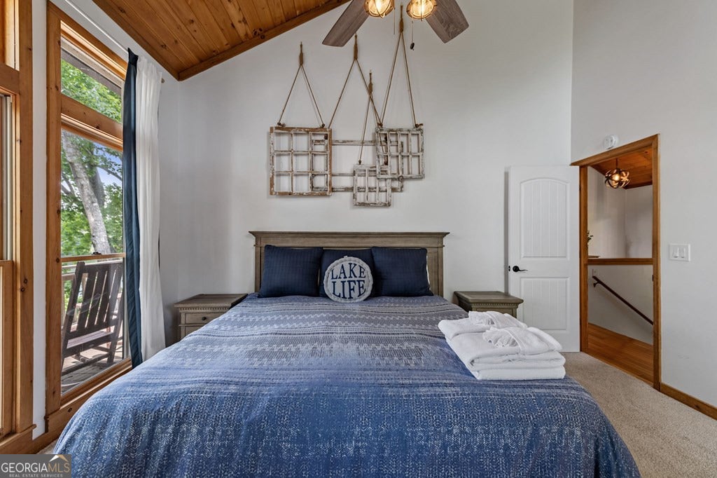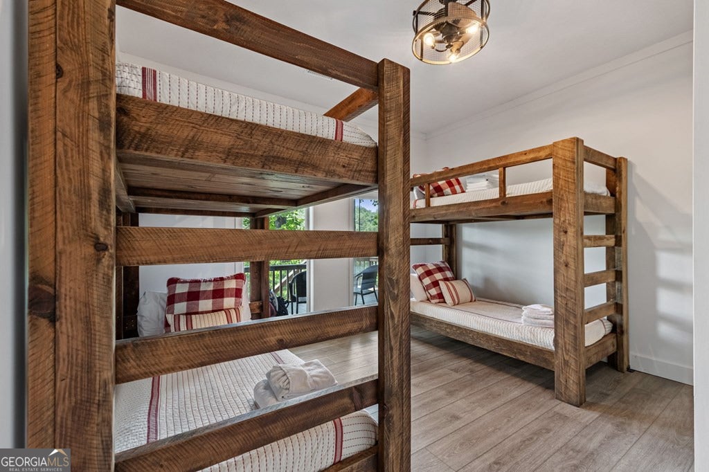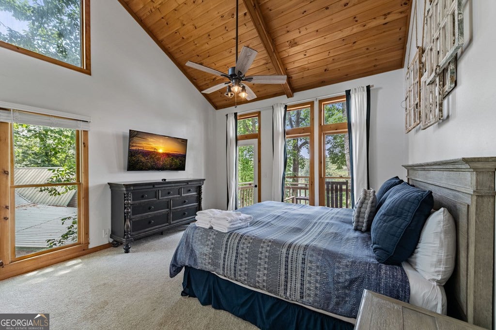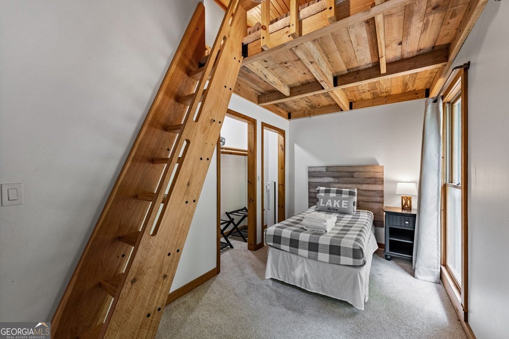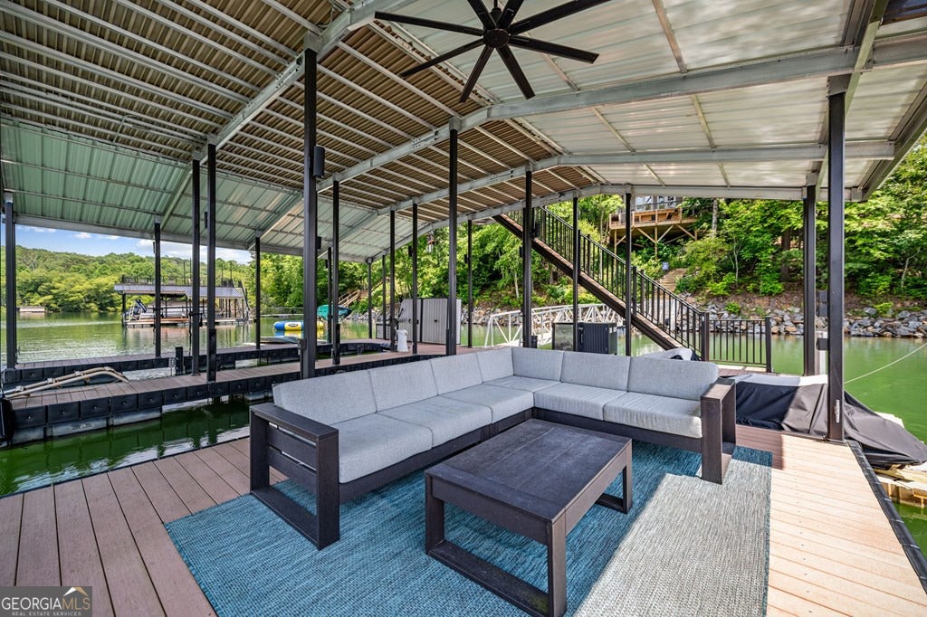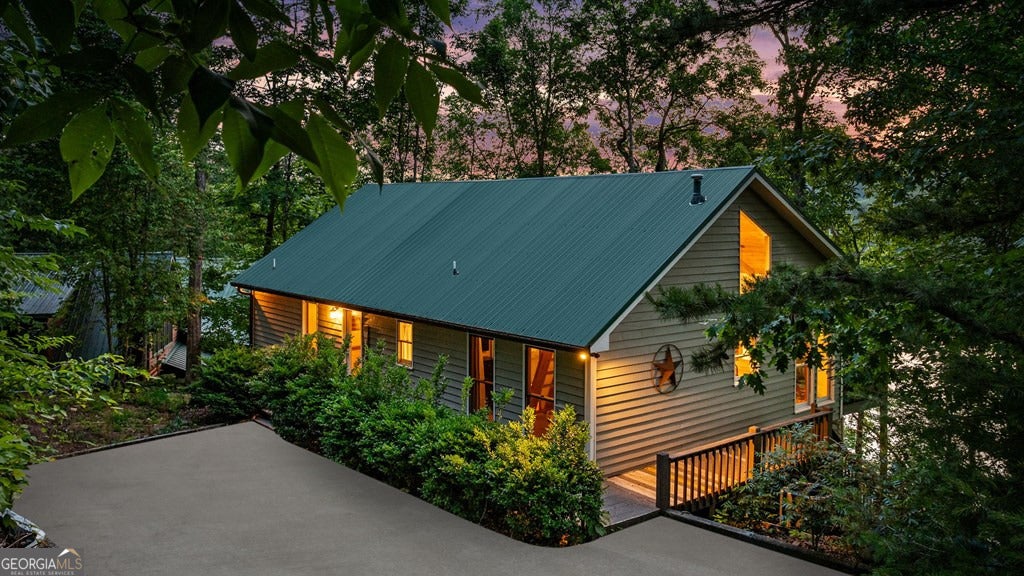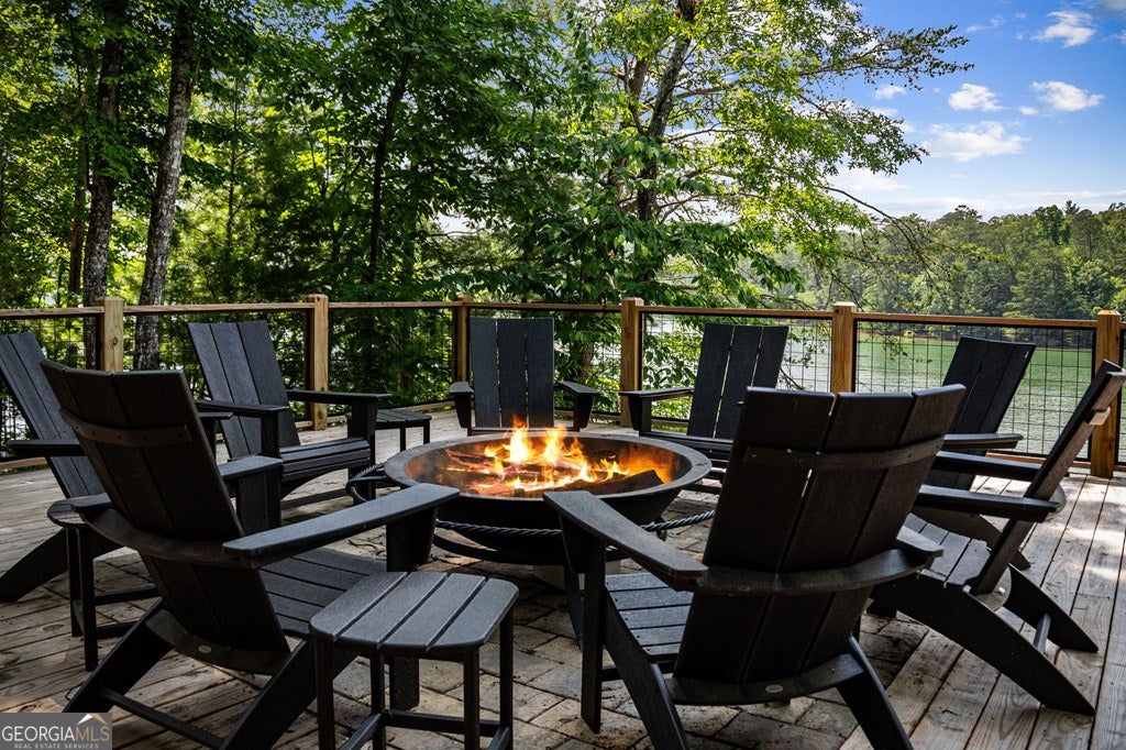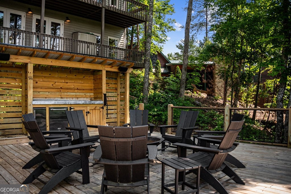 Lake Blue Ridge retreat featuring year-round deep water and breathtaking long-range lake and mountain views. This 4-bedroom, 3-bath getaway offers an open-concept kitchen and dining area with butcher block countertops, stainless steel appliances, and pantry. The great room showcases a gas log fireplace and a wall of windows framing the lake. The main-level primary suite features floor-to-ceiling windows and vaulted wood ceilings, creating a warm and inviting escape. A guest bedroom with a custom kids' loft offering additional sleeping space, along with a full bath, completes the main level. The terrace level includes a game room, bunk room, additional bedroom, full bath, and laundry-ideal for hosting family and friends. Outdoor living shines with a screened porch and an impressive waterside deck featuring a fire pit, bar, ice maker, and beverage cooler-perfect for entertaining or relaxing by the water. The crown jewel of this property is the Wahoo double-decker, two-slip dock with a boat lift, PWC ports, kayak rack, sun deck, and generous seating-ready to enjoy all year long. Easy, mostly paved access and just minutes from historic downtown Blue Ridge. Whether you're seeking a private lakefront escape or a turnkey short-term rental investment, this is a rare opportunity on one of Georgia's most coveted lakes.