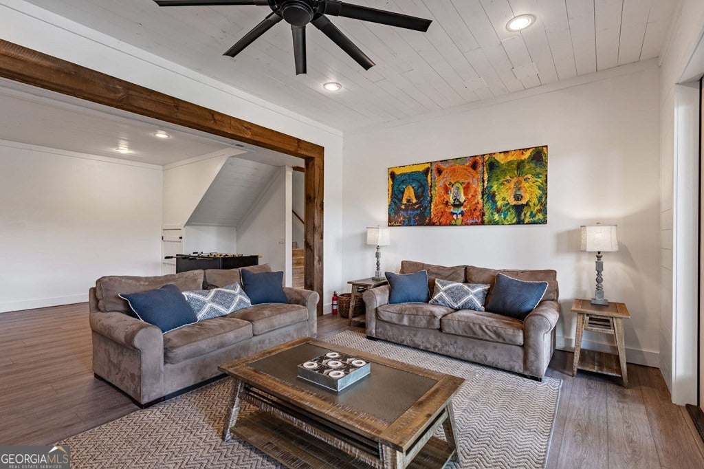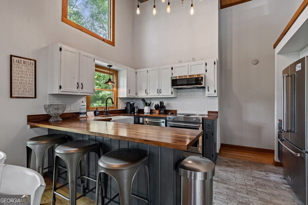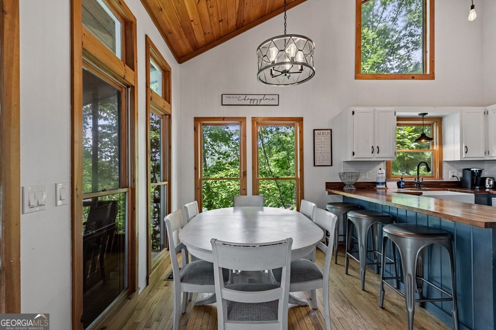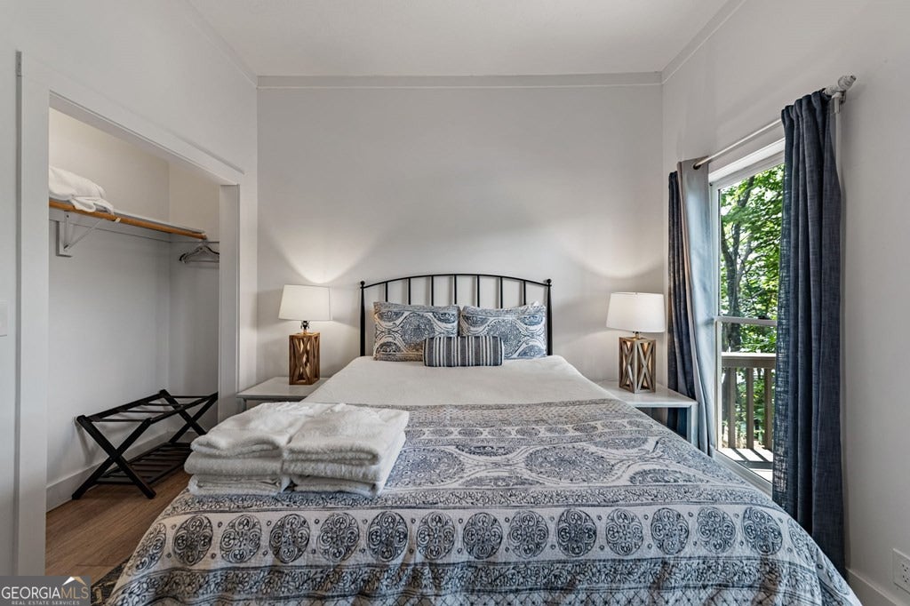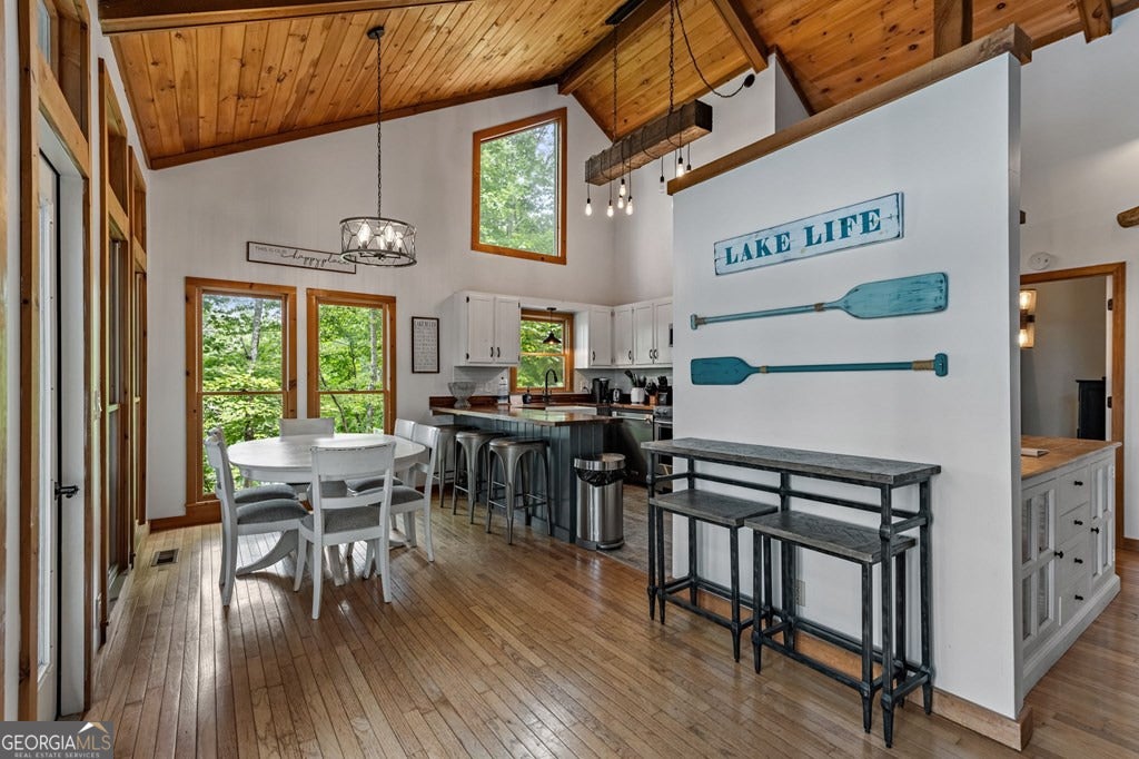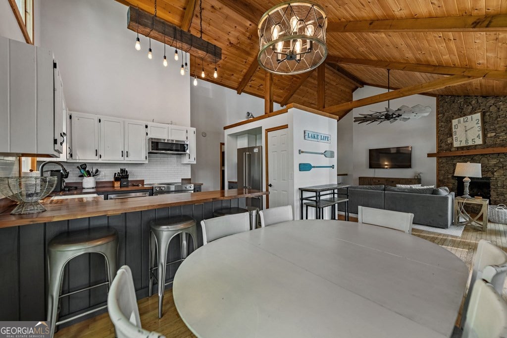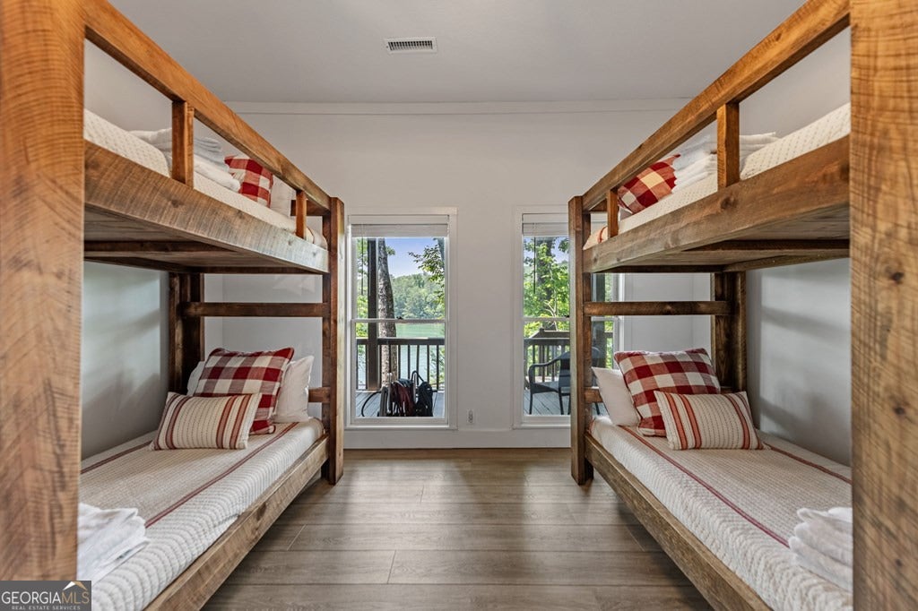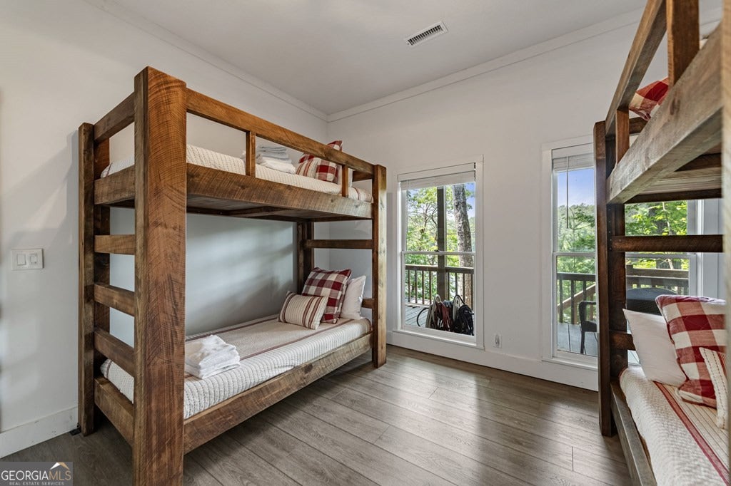 Lake Blue Ridge retreat featuring year-round deep water and breathtaking long-range lake and mountain views. This 4-bedroom, 3-bath getaway offers an open-concept kitchen and dining area with butcher block countertops, stainless steel appliances, and pantry. The great room showcases a gas log fireplace and a wall of windows framing the lake. The main-level primary suite features floor-to-ceiling windows and vaulted wood ceilings, creating a warm and inviting escape. A guest bedroom with a custom kids' loft offering additional sleeping space, along with a full bath, completes the main level. The terrace level includes a game room, bunk room, additional bedroom, full bath, and laundry-ideal for hosting family and friends. Outdoor living shines with a screened porch and an impressive waterside deck featuring a fire pit, bar, ice maker, and beverage cooler-perfect for entertaining or relaxing by the water. The crown jewel of this property is the Wahoo double-decker, two-slip dock with a boat lift, PWC ports, kayak rack, sun deck, and generous seating-ready to enjoy all year long. Easy, mostly paved access and just minutes from historic downtown Blue Ridge. Whether you're seeking a private lakefront escape or a turnkey short-term rental investment, this is a rare opportunity on one of Georgia's most coveted lakes.