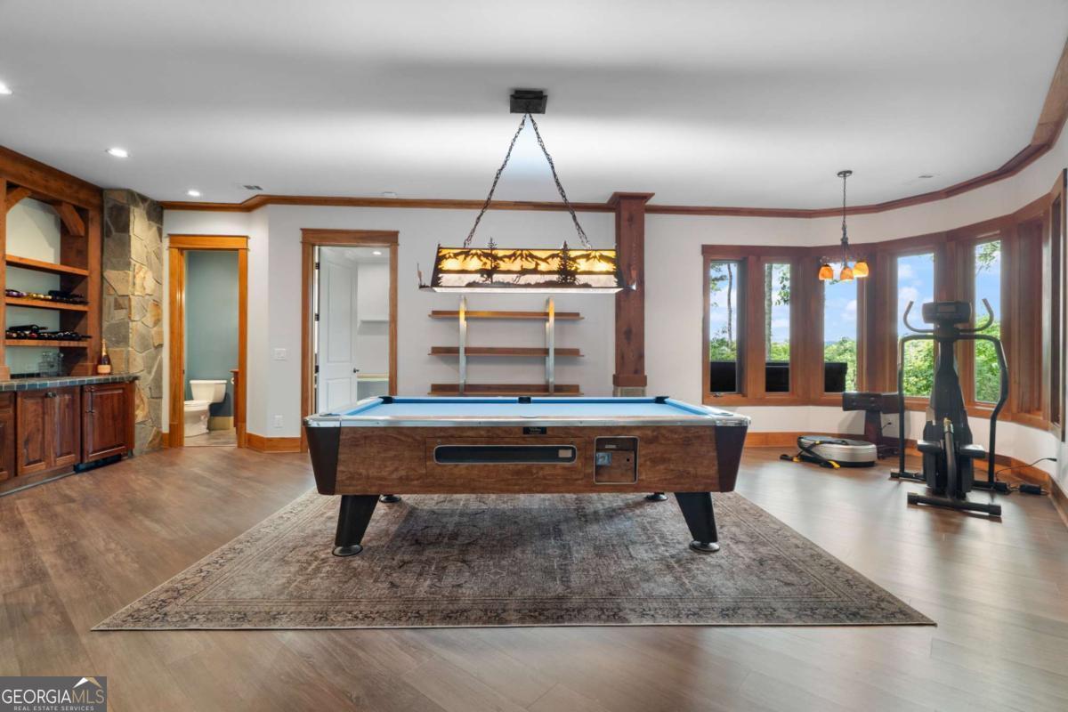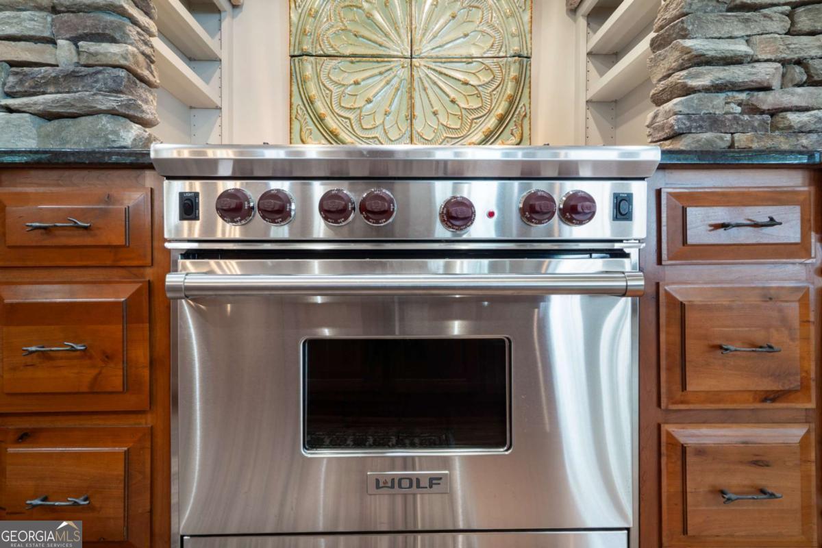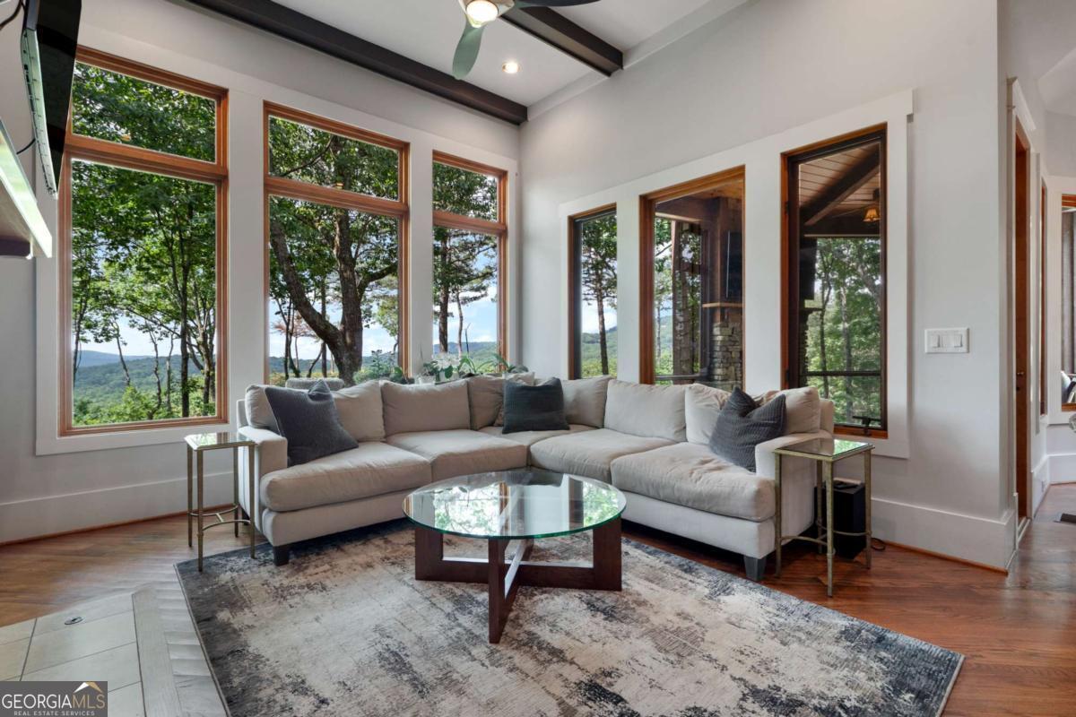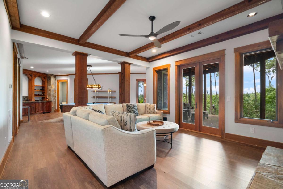 Stunning Custom Home built in the desirable Wildcat neighborhood of Big Canoe. With recent vista pruning it has breathtaking Mountain Views! Set on a level lot along Bluestern Drive, this residence boasts many improvements, beautifully updated landscaping, and convenient access to the North Gate and scenic Wildcat trails. As you approach the home, you'll be drawn in by its captivating mountain-style architecture and elegant exterior finishes. A serene stone walkway, bordered by lush perennial gardens, leads you to a welcoming stone front porch. Mornings you can enjoy the sunrise as you sip your coffee. This tranquil setting sets the tone for the peaceful living experience that awaits inside. Upon entering through the grand entry, you'll be greeted by rich wood floors, soaring vaulted ceilings, and hand-crafted chandeliers that showcase the home's timeless character. The Great Room impresses with its arched windows, magnificent wood beams, and a stunning floor-to-ceiling wood-burning stone fireplace with gas starter, creating an inviting atmosphere for gatherings. The gourmet Kitchen is a chef's dream, equipped with custom cabinetry, paneled appliances, a spacious island, a Wolf range, and a Sub-Zero refrigerator. Enjoy casual meals in the sunlit Breakfast Room, highlighted by a uniquely shaped tray ceiling. The adjacent Keeping Room offers another cozy retreat, featuring a fireplace, coffered ceiling, and picturesque views of Potts Mountain. An artist's Studio off the Kitchen provides built-ins and inspiring mountain vistas, ideal for creative pursuits. The main-level outdoor living areas include a covered porch with a fireplace and a curved open deck, perfect for entertaining or simply soaking in the views and sunset hour. The luxurious Primary Suite is a true sanctuary, featuring a wood-accented tray ceiling, private deck access, and expansive windows. The spa-like bath includes an arched ceiling, an oversized shower, dual vanities, and his-and-hers walk-in closets with custom shelving. The Upper Level offers a versatile retreat, complete with two bedrooms, a full bath, and a shared living area-perfect for guests, teens, or in-laws seeking their own space. On the Terrace Level, the open layout and 10-foot ceilings create an inviting atmosphere for entertaining. Enjoy a stylish slate-accented Family Room with a fireplace, a large Game Room, and a wet bar featuring a copper sink and paneled appliances. This level includes two bedrooms and a beautifully appointed Jack-and-Jill slate bath, along with additional flex space that can serve as a theater room, gym, or extra sleeping area. A walk-out workshop and expansive stone patio complete this lower level. Recent Updates Include: New architectural roof, Three new HVAC systems, New hot tub and sauna, Epoxy-coated garage floor, Updated landscaping, New ceiling fans. A FULL LIST OF UPGRADES ARE IN THE PHOTOS and documents online. This home is a true masterpiece of craftsmanship, comfort, and design. Seize the rare opportunity to own this exquisite custom-built home. Schedule your private showing today. ***A mandatory $4,500.00 capital contribution fee paid by the purchaser to the Big Canoe Property Owners' Association will be due at closing. Pursuant to Article II, Section 1, Paragraph bb of the Class "A" Covenants for the Big Canoe community, all property transfers are subject to the Big Canoe developer's right of first refusal.