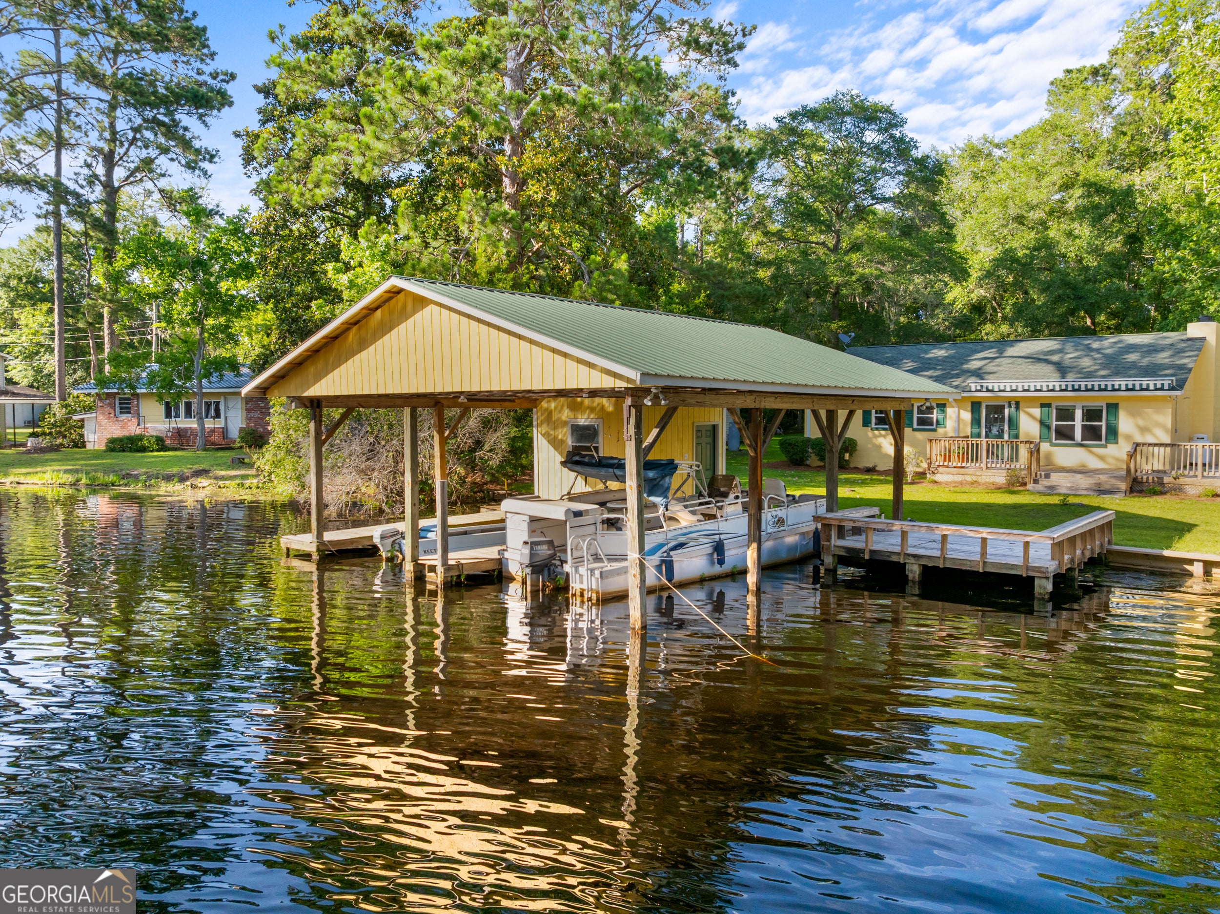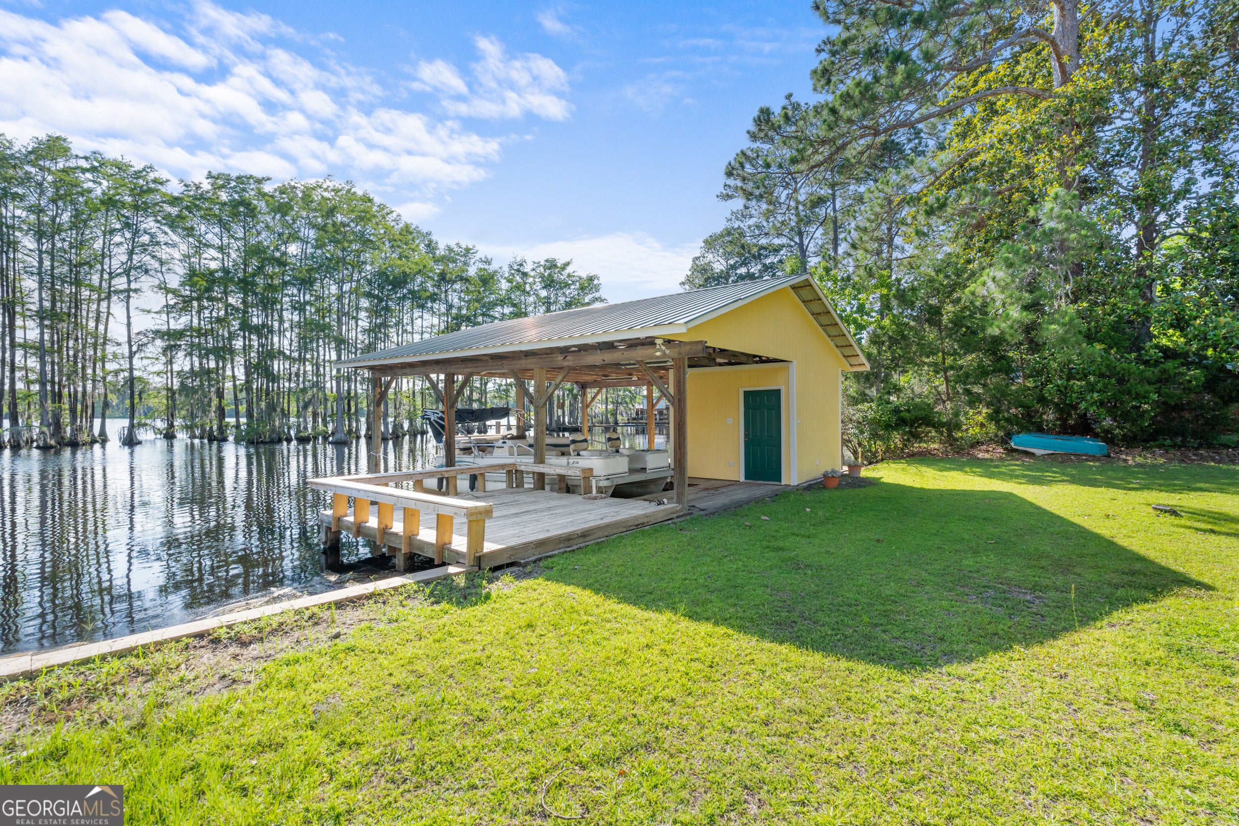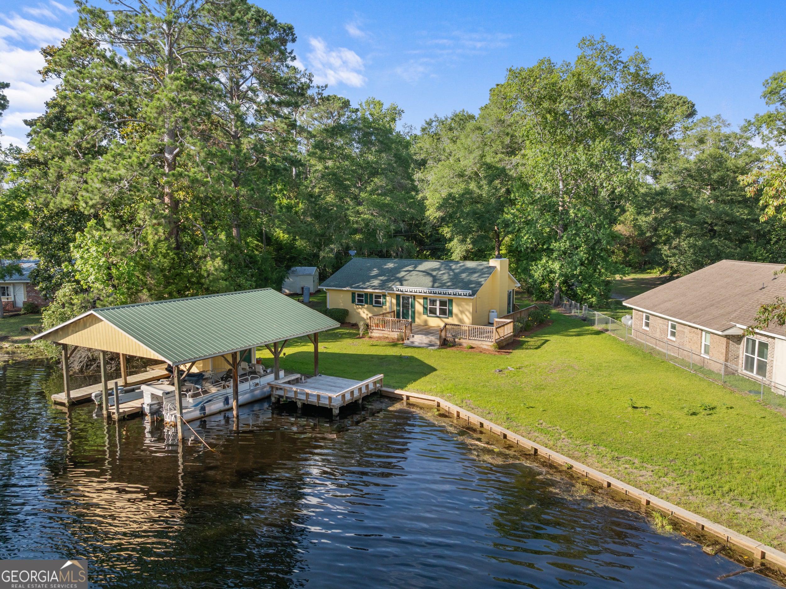 Your Own Slice of Heaven on Cypress Lake! Don't miss this rare opportunity to own a charming 3-bedroom lakefront home in Statesboro! Nestled on a spacious 0.72-acre lot overlooking beautiful Cypress Lake, this property is perfect for weekend getaways or year-round living. Enjoy stunning lake views from the cozy living room, complete with a gas fireplace, or whip up your favorite meals in the full kitchen. The home features 3 bedrooms, 1 full bath, and a convenient laundry area. Step out back to a peaceful deck with an electric awning-ideal for relaxing evenings and unforgettable sunsets. The covered 2-slip boat dock makes it easy to enjoy fishing, boating, or entertaining right on the water. Whether you're looking for tranquility or recreation, this lakeside retreat has it all. This well-maintained house is newly renovated with all new paint, flooring, cabinetry and appliances! Also has a new seawall installed less than a year ago! Call today to schedule your private tour-this gem won't last long!
