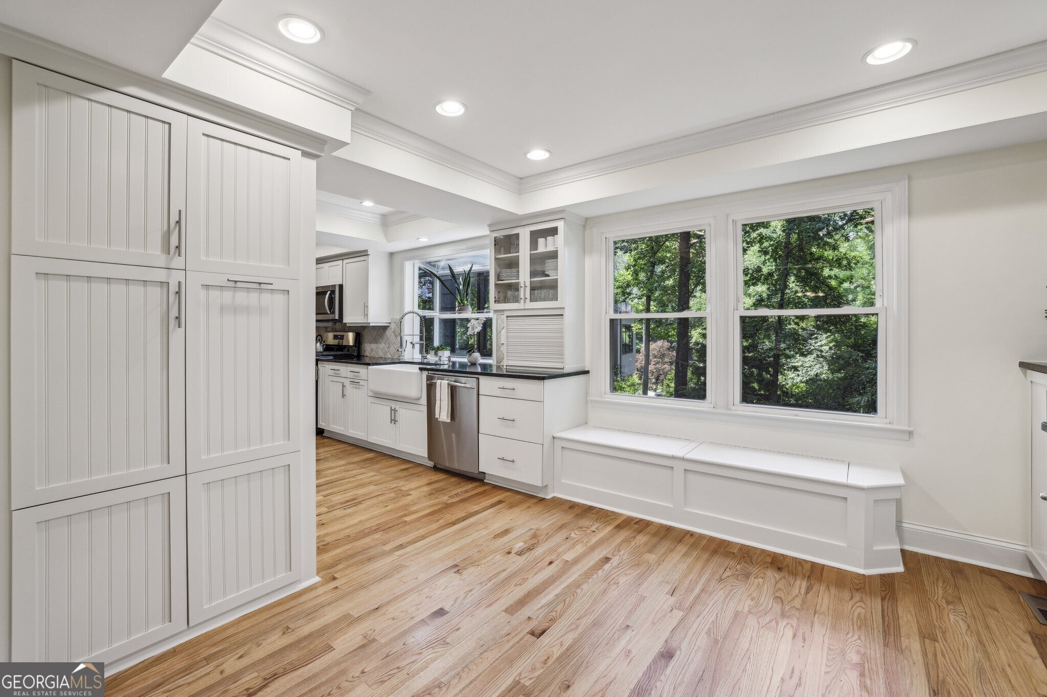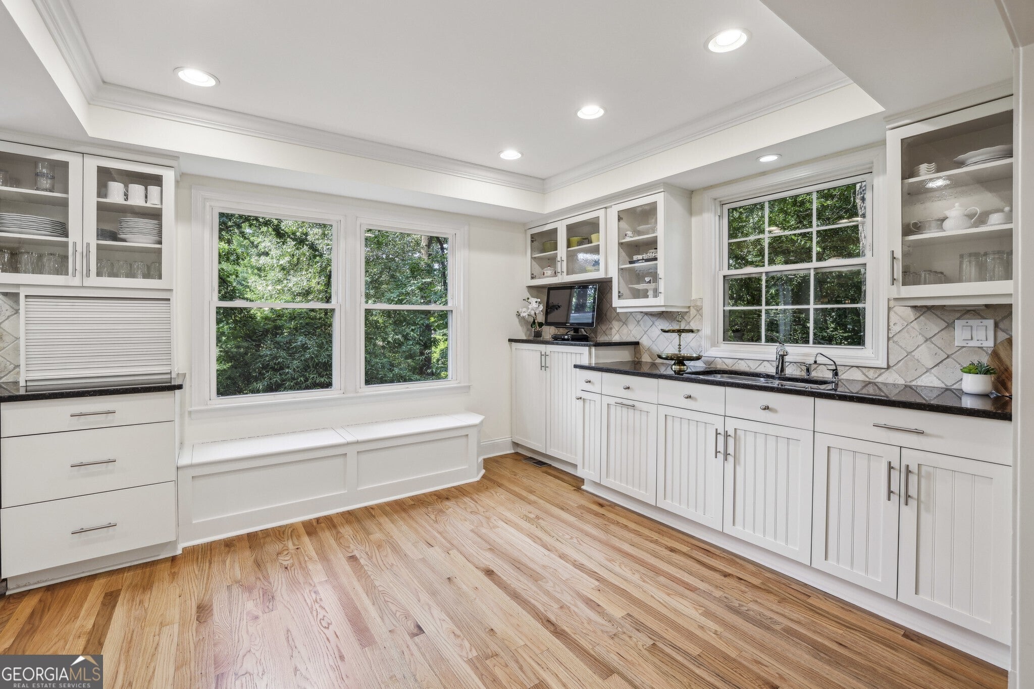 Elegant Home in the Heart of Atlanta's Coveted Pine Hills Community! Nestled between Brookhaven and Buckhead, this beautifully maintained residence blends timeless charm with modern functionality in one of Atlanta's most sought-after neighborhoods and is zoned for the Highly Acclaimed Sarah Smith School District one of the most sought-after schools in all of Atlanta. From the moment you step inside, you're greeted by Rich Hardwood Floors, Crisp White Trim Work, and Light-Filled Living Spaces that flow seamlessly from room to room. The Main Level features a welcoming Foyer Entrance with views into the Fireside Family Room, where Custom Built-Ins flank the Brick Fireplace. The Spacious Kitchen is a true showstopper with White Cabinetry, Granite Countertops, Stainless Steel Appliances, a Garden Window above the Farmhouse Sink, and a wall of windows that bring the outdoors in. A large Breakfast Nook with built-in seating that doubles as a storage drawer overlooks the backyard, while a dedicated Mudroom Area with built-ins includes a Small Office Desk/Workstation for added flexibility and function. Additional living spaces include a Formal Dining Room, and a Powder Room with custom beadboard detailing. Whether entertaining or enjoying quiet evenings at home, this main level is both inviting and functional. Upstairs, retreat to the Oversized Primary Suite featuring ample closet space and a Private Ensuite Bathroom with Dual Granite Vanities and a Frameless Glass Shower with Designer Tilework. Three Additional Bedrooms share a well-appointed Bathroom. A large Laundry Room and Custom Built-In Storage offer convenience at every turn. Downstairs, the Finished Basement with a Full Bathroom is a true Bonus boasting enough space for a Game Room, Home Office, Fitness Room, Guest Suite, or extra entertaining space. The Basement also features a Walk-Out to the Backyard, offering even more functionality. Step outside from the Main Floor to a Screened-In Porch with Vaulted Ceiling and Skylight, ideal for enjoying your morning coffee or hosting a dinner party. A Large Grilling Deck offers space for outdoor dining, and the Private, Wooded Backyard provides a Tranquil Escape with Plenty of Room for Play or Gardening. A Manicured Lawn and Sprinkler System ensure the outdoor space is both beautiful and easy to maintain. A Two-Car Garage with Storage and a Mop Sink, plus Ample Off-Street Parking, offers practical convenience, with Direct, Step-Free Access into the Kitchen. The home also includes Three-Zone Heating and Cooling for year-round comfort. Outside the home, Pine Hills residents enjoy access to a Private Swim and Tennis Club, a Recreation Center, and beautifully landscaped Green Spaces. With unbeatable proximity to I-85, GA-400, I-75, and the Buford Highway Corridor, you're just minutes from premier shopping, dining, and entertainment destinations throughout Brookhaven, Buckhead, and beyond including neighboring Phipps Plaza, Lenox Mall, and MARTA access for easy city commuting.