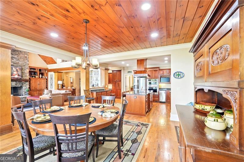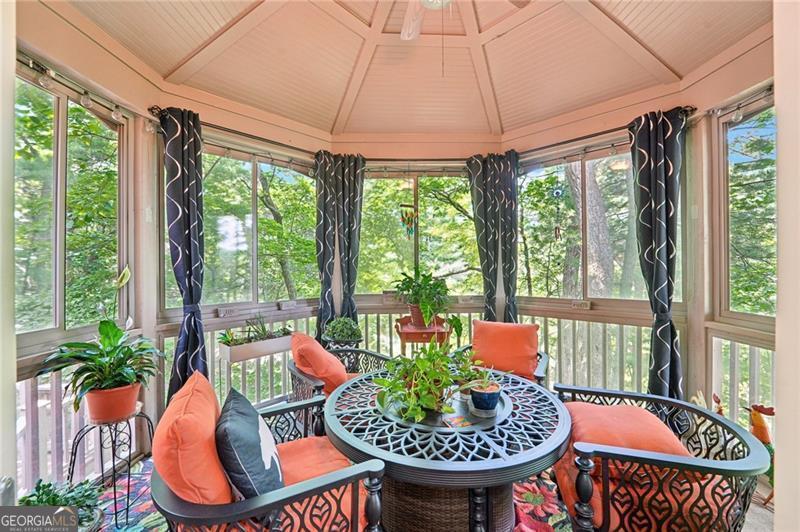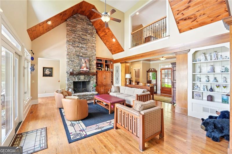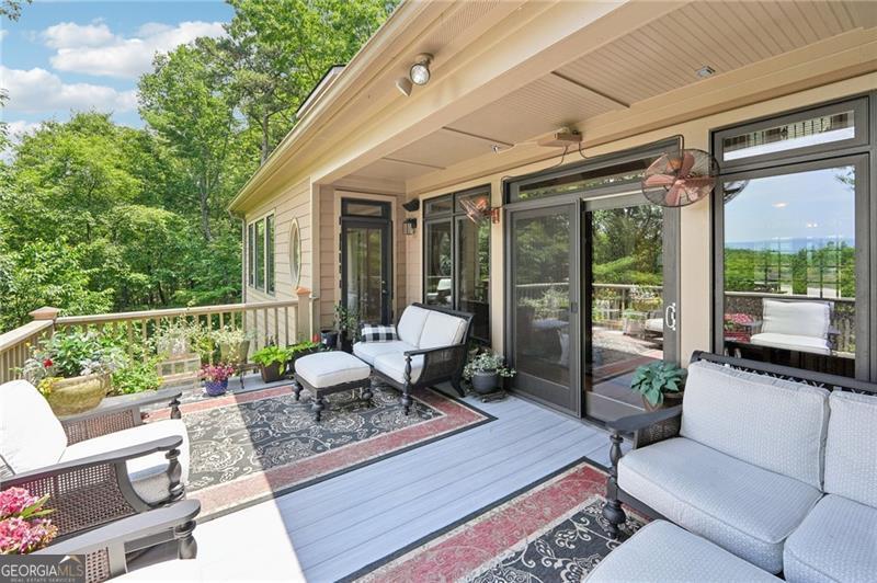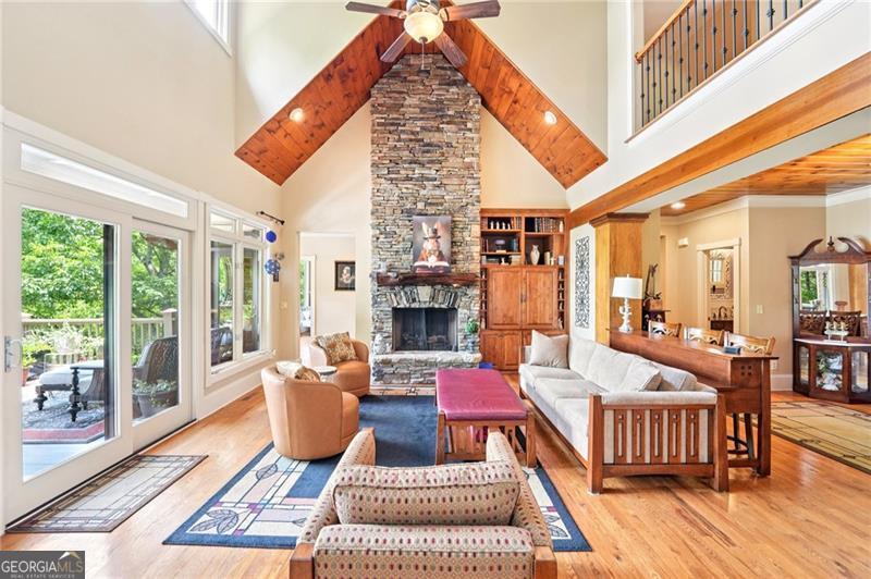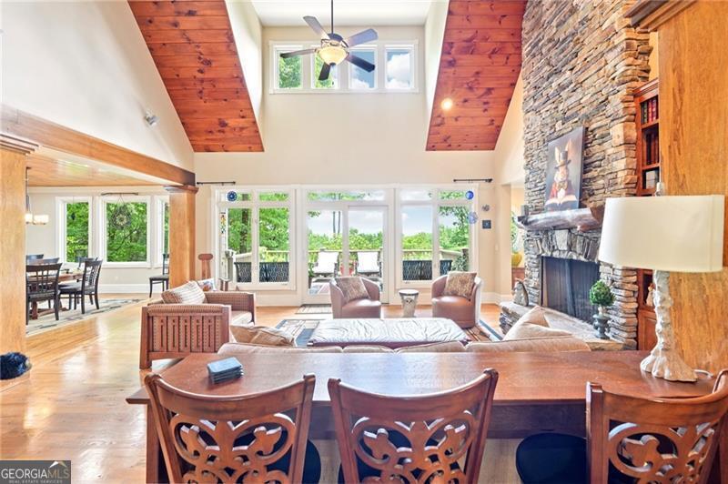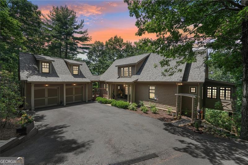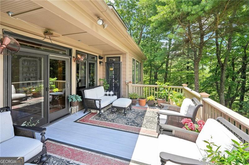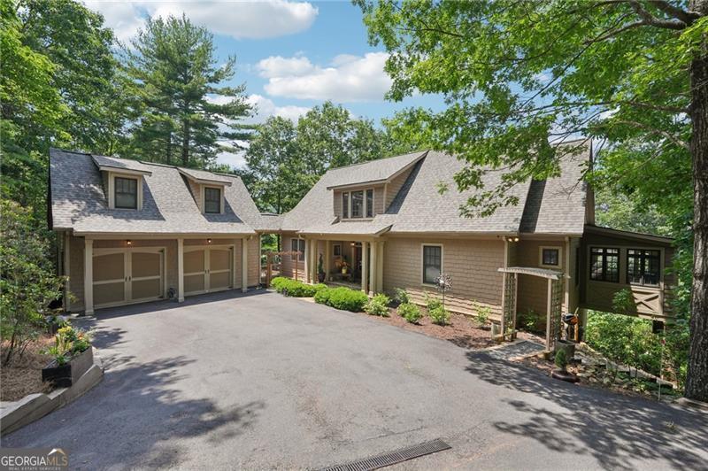 Stunning Chestnut Hill Plan with Panoramic Mountain Views in Big Canoe Step into timeless Southern charm with this beautifully crafted Chestnut Hill home, perfectly positioned to capture sweeping mountain views through walls of windows. Located in the prestigious gated community of Big Canoe, this residence blends architectural elegance with thoughtful functionality. The spacious main-level family room features a soaring stacked stone fireplace and custom built-ins, creating a warm, inviting gathering space. It flows seamlessly into the gourmet kitchen, complete with high-end finishes, generous workspace, and a well-planned layout ideal for both cooking and entertaining. The adjoining dining area opens to an Eze-Breeze screened porch and a side deck, perfect spots to soak in the surrounding natural beauty year-round. The main level owner's suite includes a serene sitting room and a luxurious, spa-inspired bath. Upstairs, you'll find two additional bedroom suites and a cozy loft, offering privacy and comfort for guests or family. The terrace level boasts a second fireside family room that opens onto a large deck and screened porch. An additional guest bedroom with full bath ensures plenty of space for visitors. Also on the terrace level: an impressive, fully equipped woodworking workshop with a half bath and ample storage. Additional Features: Detached garage with finished, climate-controlled bonus space above, ideal for an office, studio, or man cave Newly replaced roof for peace of mind Main-level Trex decking for low-maintenance outdoor living Home generator Central Vac Lightening protection AHC home warranty Exceptional craftsmanship and detail throughout This exceptional home offers a rare combination of craftsmanship, comfort, and breathtaking views in one of North Georgia's most desirable mountain communities.