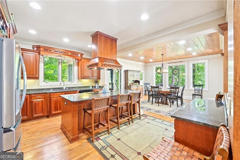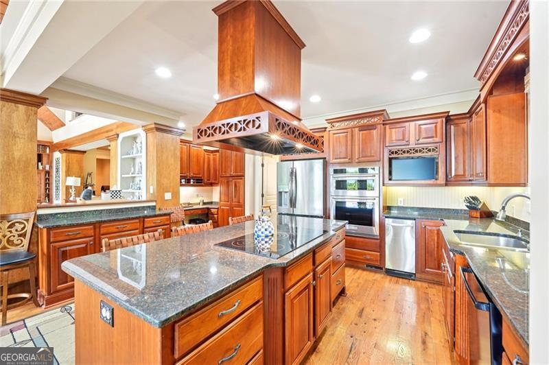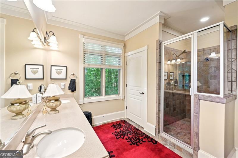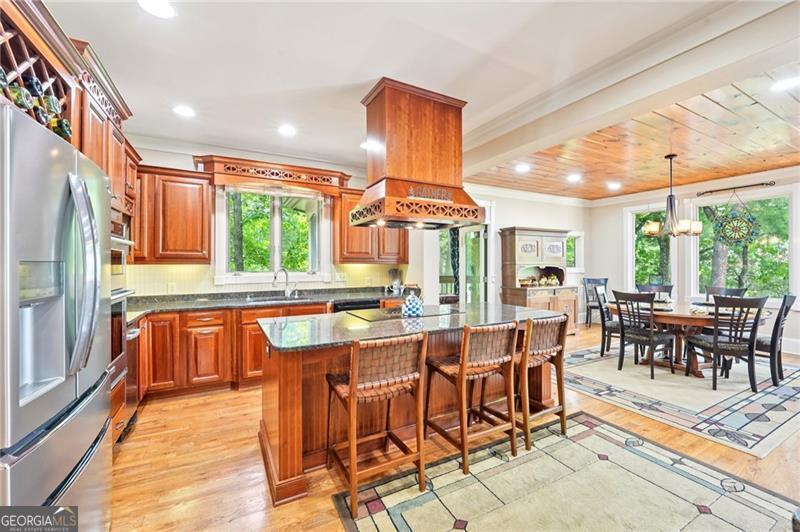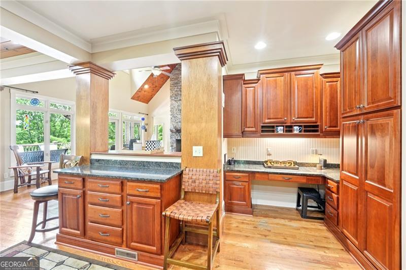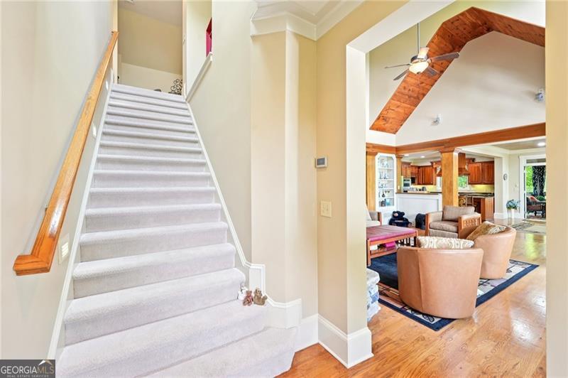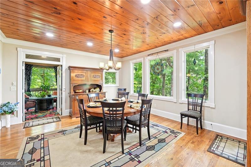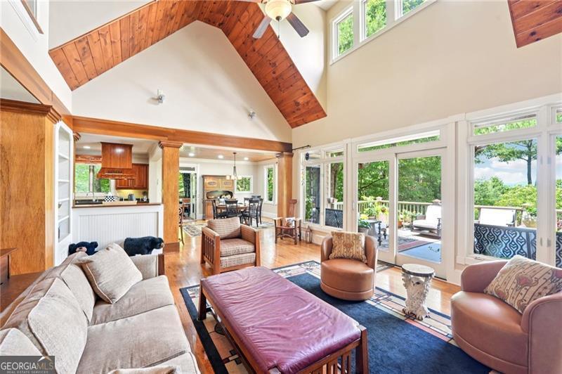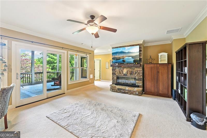 Stunning Chestnut Hill Plan with Panoramic Mountain Views in Big Canoe Step into timeless Southern charm with this beautifully crafted Chestnut Hill home, perfectly positioned to capture sweeping mountain views through walls of windows. Located in the prestigious gated community of Big Canoe, this residence blends architectural elegance with thoughtful functionality. The spacious main-level family room features a soaring stacked stone fireplace and custom built-ins, creating a warm, inviting gathering space. It flows seamlessly into the gourmet kitchen, complete with high-end finishes, generous workspace, and a well-planned layout ideal for both cooking and entertaining. The adjoining dining area opens to an Eze-Breeze screened porch and a side deck, perfect spots to soak in the surrounding natural beauty year-round. The main level owner's suite includes a serene sitting room and a luxurious, spa-inspired bath. Upstairs, you'll find two additional bedroom suites and a cozy loft, offering privacy and comfort for guests or family. The terrace level boasts a second fireside family room that opens onto a large deck and screened porch. An additional guest bedroom with full bath ensures plenty of space for visitors. Also on the terrace level: an impressive, fully equipped woodworking workshop with a half bath and ample storage. Additional Features: Detached garage with finished, climate-controlled bonus space above, ideal for an office, studio, or man cave Newly replaced roof for peace of mind Main-level Trex decking for low-maintenance outdoor living Home generator Central Vac Lightening protection AHC home warranty Exceptional craftsmanship and detail throughout This exceptional home offers a rare combination of craftsmanship, comfort, and breathtaking views in one of North Georgia's most desirable mountain communities.