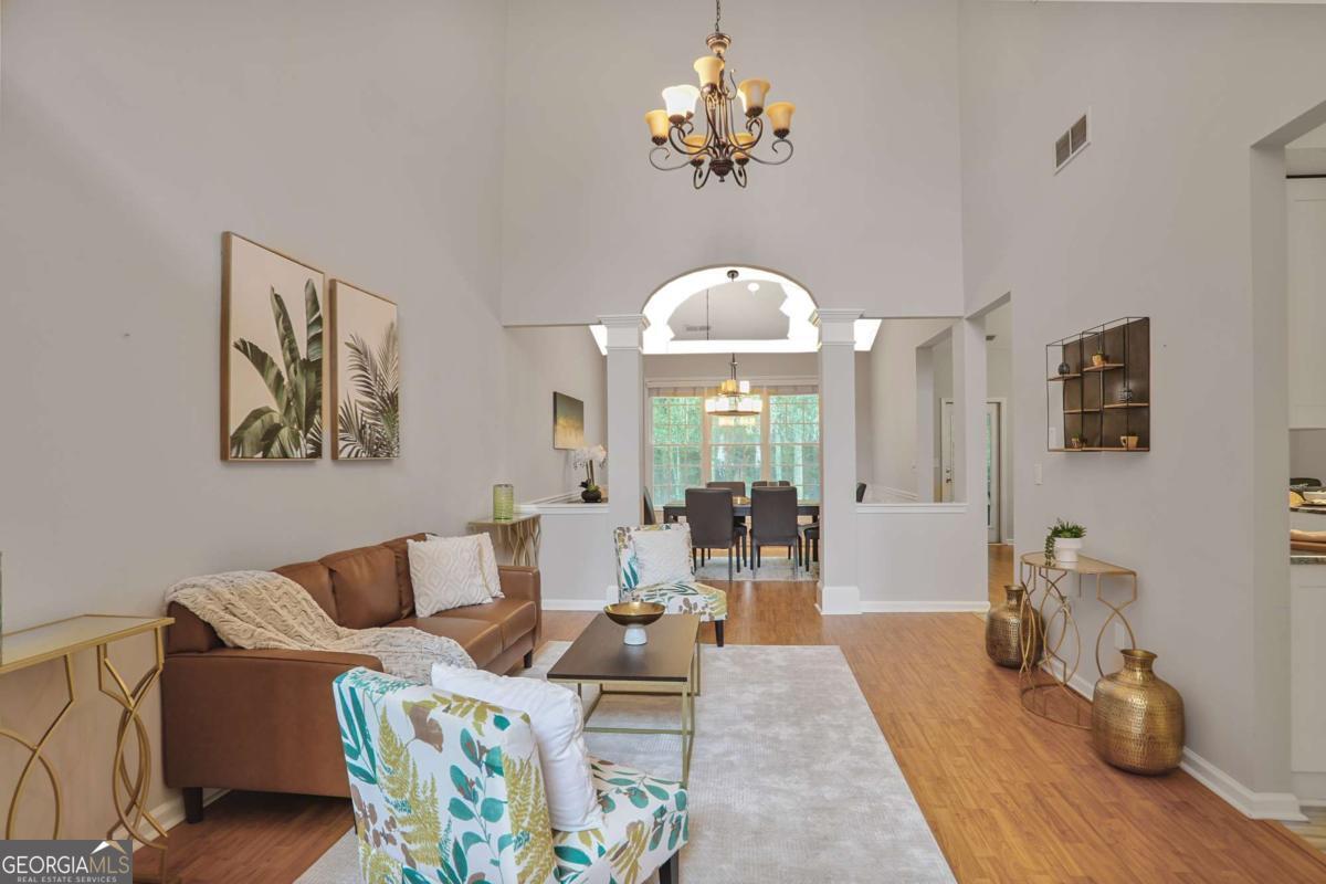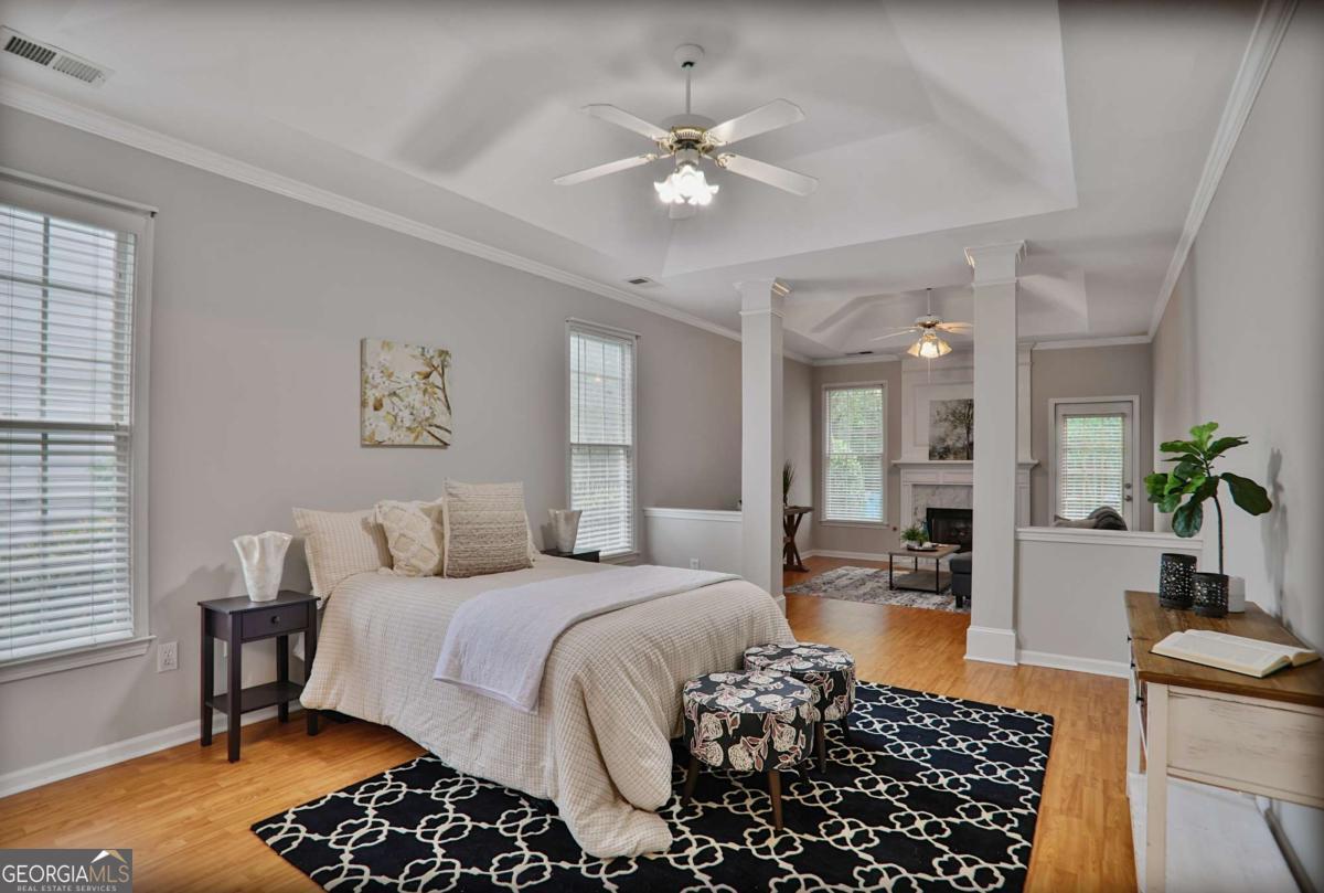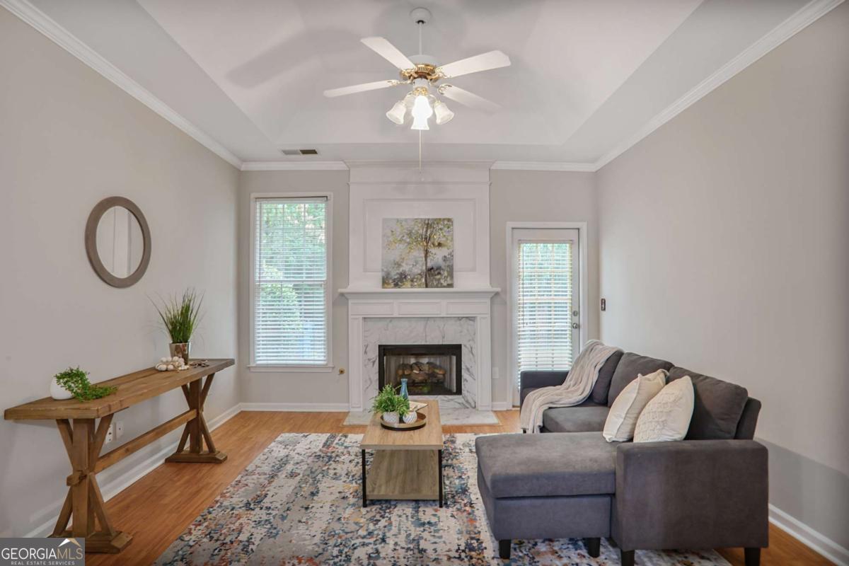 Welcome home to this beautiful home in the heart of Alpharetta. As you enter, you'll be warmly greeted by a 2-story foyer, setting the tone for the spacious and inviting interior. The 2-story formal living room adds an elegant touch, while the separate vaulted dining room provides a delightful view of nature. The spacious Chef's kitchen with Granite Countertop is perfect for both casual dining and entertaining. The kitchen opens to the family room, creating an inviting space for gatherings. Additionally, there is a Sunroom where you can relax and enjoy the natural surroundings. Step outside to discover a Large Patio that opens to a Private Backyard, perfect for outdoor activities and relaxation. The Master On Main is exceptionally spacious and features a Fireside sitting room, where you can enjoy reading, watch TV or relax after a long day. Upstairs, you'll find a loft overlooking the two-story formal living room, and 2 secondary bedrooms, and a hallway bath. Freshly exterior and interior painted with warranty. Amenities are located 2 doors down - Pool, Basketball, Bridge to the Playground, Gazebo, Tennis Courts! The highly acclaimed Milton high school district is known for its excellent academic programs and extracurricular activities. Walking Distance to Wills Park with Alpharetta Community Center, Dog Park, Playground, Pavilions, Recreation Centers, Equestrian Center. Downtown Alpharetta, Avalon, Alpha Loop are also just minutes away, City Hall, Library, Restaurants and Shopping, Movie Theater... Don't miss the opportunity to make this wonderful property your new home. Contact us today to schedule a viewing and experience all that this exceptional Alpharetta home has to offer!