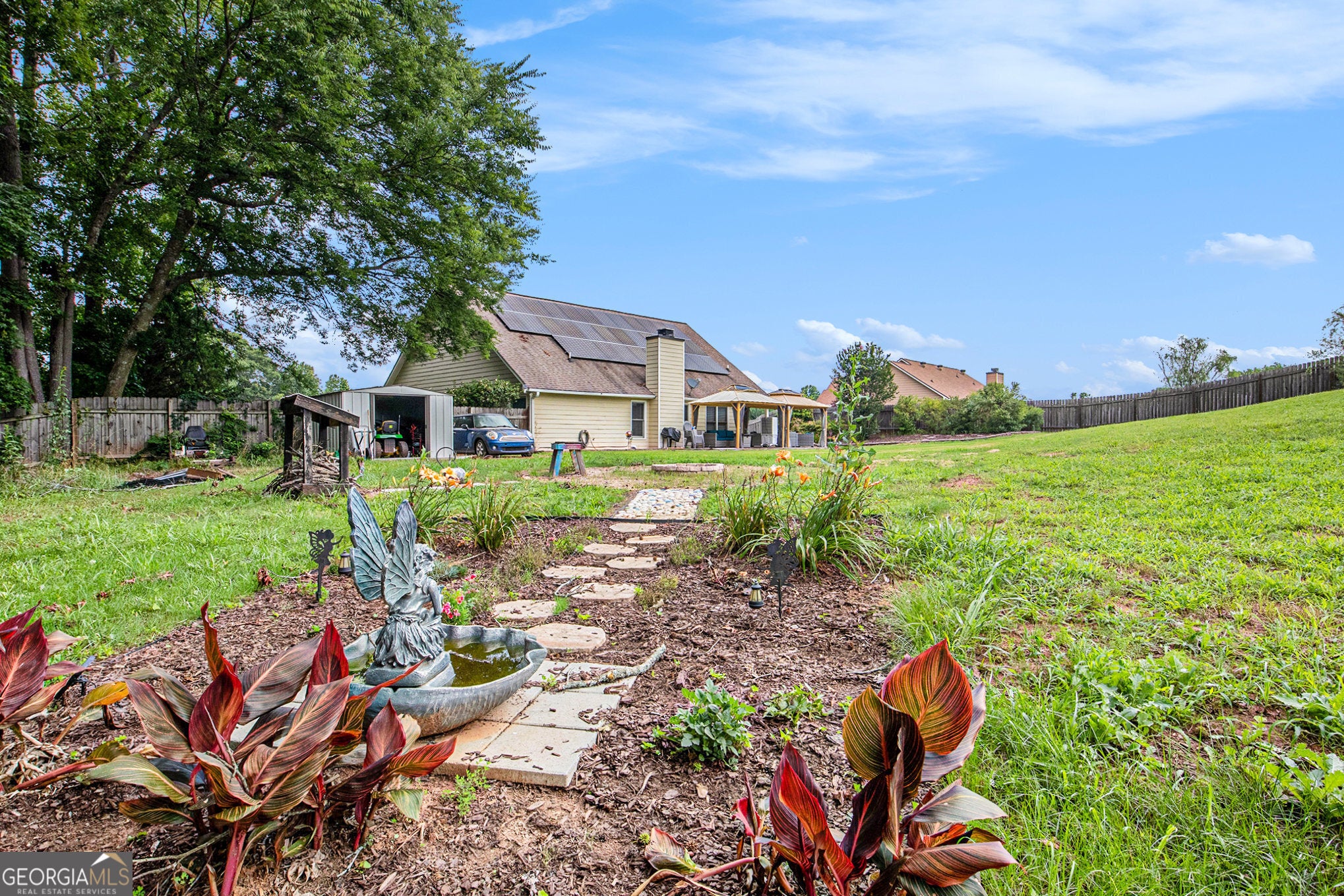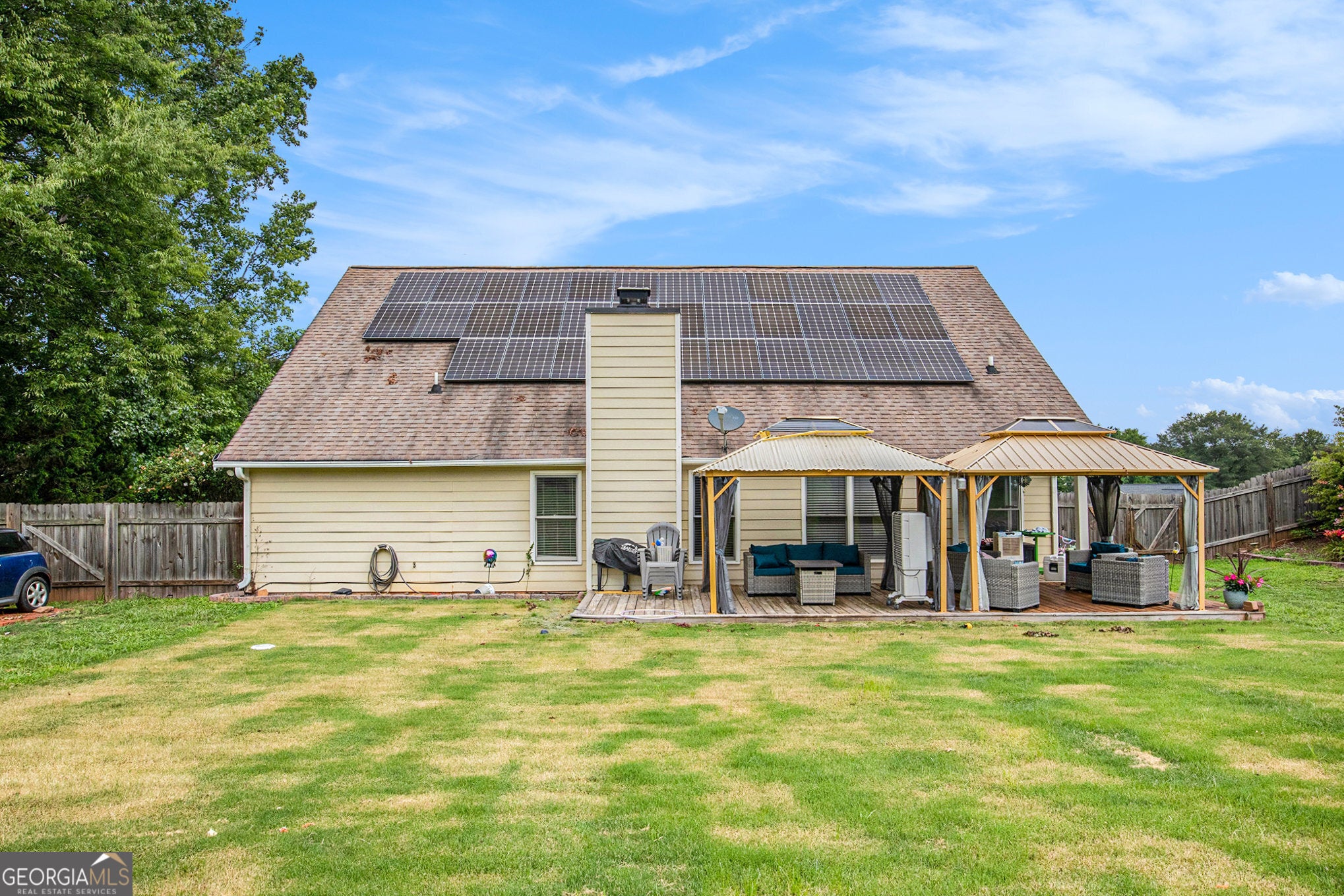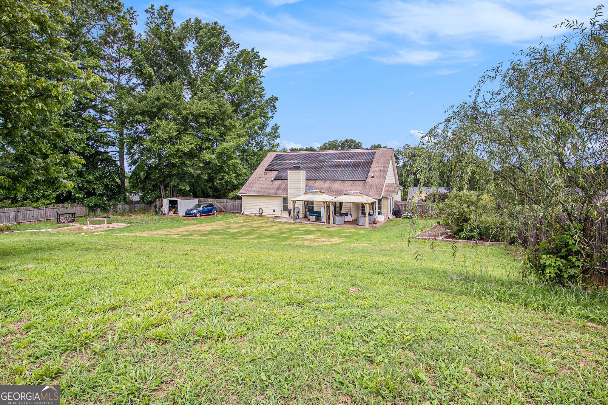 Beautifully Updated Home with Bonus Room, Solar, and Spacious Fully Fenced Backyard - No HOA - USDA Eligible USDA LOAN-ELIGIBLE - ASSUMABLE MORTGAGE WITH 2.75% INTEREST RATE FOR QUALIFYING BUYERS! 34 SOLAR PANELS THAT HELP CUT YOUR ELECTRICAL BILL BY 50-60% PER YEAR! Welcome to this beautifully updated, energy-efficient, single-family home that combines modern living, flexible space, and fantastic outdoor amenities. Featuring 4 spacious bedrooms, 2 full bathrooms, a separate laundry room, and a versatile second-floor bonus room, this home offers the perfect layout for families, remote workers, or those who simply want more room to live and grow. Step inside to an inviting floor plan filled with natural light and stylish upgrades, including all-new fixtures, Wi-Fi-enabled stainless steel appliances, and updated paint and flooring (LVP throughout much of the main in 2024). The kitchen seamlessly connects with the dining and living areas, making it perfect for entertaining. The primary suite, complete with a walk-in closet, features an en-suite bath with dual vanity, tub, and shower, making for an ideal retreat. Additionally, the guest bath features an updated vanity and light fixture. Outdoors, enjoy a fully fenced backyard designed for both relaxation and entertainment. A charming gazebo provides a shady space to unwind or host guests, while the deck and patio space provide the perfect place to sit and enjoy the privacy that the lot offers. A fire pit, decorative garden, as well as outbuilding for additional storage are all additional features to be enjoyed in this outdoor oasis. This fully electric, energy-efficient home comes with thirty-four solar panels, vastly helping reduce utility costs year-round. The solar panel loan can be transferred or paid off with an adjustment to sales price. With modern updates, valuable outdoor features, and incredible financing options, this move-in-ready home truly has it all. Don't miss your chance-schedule your private tour today!