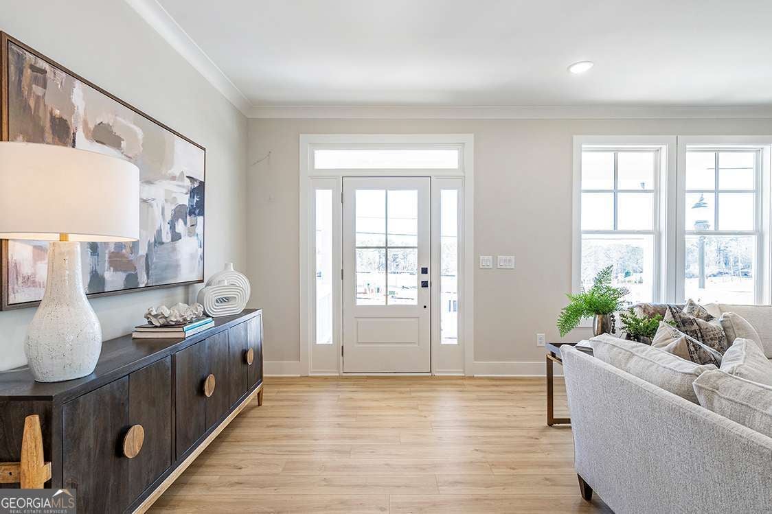Come home to the heart of it all in one of Cherokee's most dynamic new addresses at the new Holly Springs Town Center with walkable access to Town Center's restaurants, retail stores, green spaces, events and a new outdoor amphitheater. Centered on the landmark new Holly Springs City Hall, the heart of Holly Springs Town Center will be an inviting community space set to play host to festivals, markets and community events like the city's annual Autumn Fest, monthly concerts, food truck nights, morning farmers markets, Christmas Parade and more. The NEW Holly Floor Plan by Stonecrest Homes serves as our model home and is now available for purchase.. This townhome residence offers the best in lock and go living with 4 bedrooms, 3.5 bathrooms, over 2700 sq ft across three levels. Family room with fireplace overlook covered brick front porch. Stunning Kitchen with center island and walk in pantry walk out to rear covered porch. Generous primary suite with spa bath. Two secondary bedrooms up share a gracious hall bath. Flex room on lower level with walk in closet and full bath with shower stall serves as rec space or guest suite. Additional unfinished room on the lower level can easily convert to an exercise or work from home space. Two car rear entry garage with addt'l storage. Perfect floorplan for today's ACTIVE lifestyle. Walk to the new HOLLY SPRINGS TOWN CENTER! Enjoy Food Truck Alley on the 3rd Thursday of every month and Holly Springs Harmonies Concert night one Saturday of the month all summer held at the adjacent Historic Train Depot at the corner of Holly Springs Parkway & Hickory Rd. Don't miss this early opportunity to live in another Cherokee County TOWN CENTER like DT Woodstock or Canton before it goes vertical. Calling all who remember that real estate's most important factor is location, location, location!