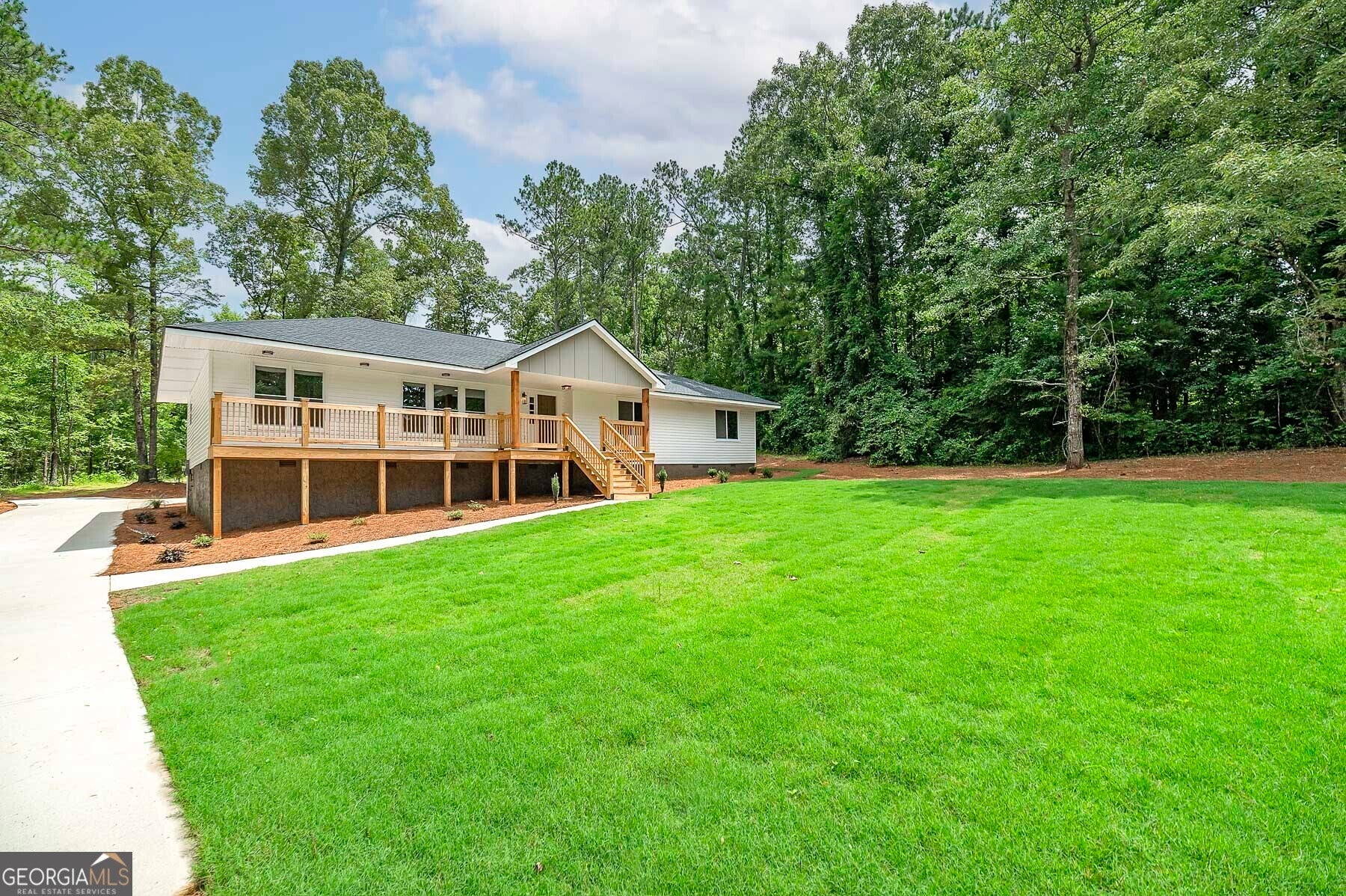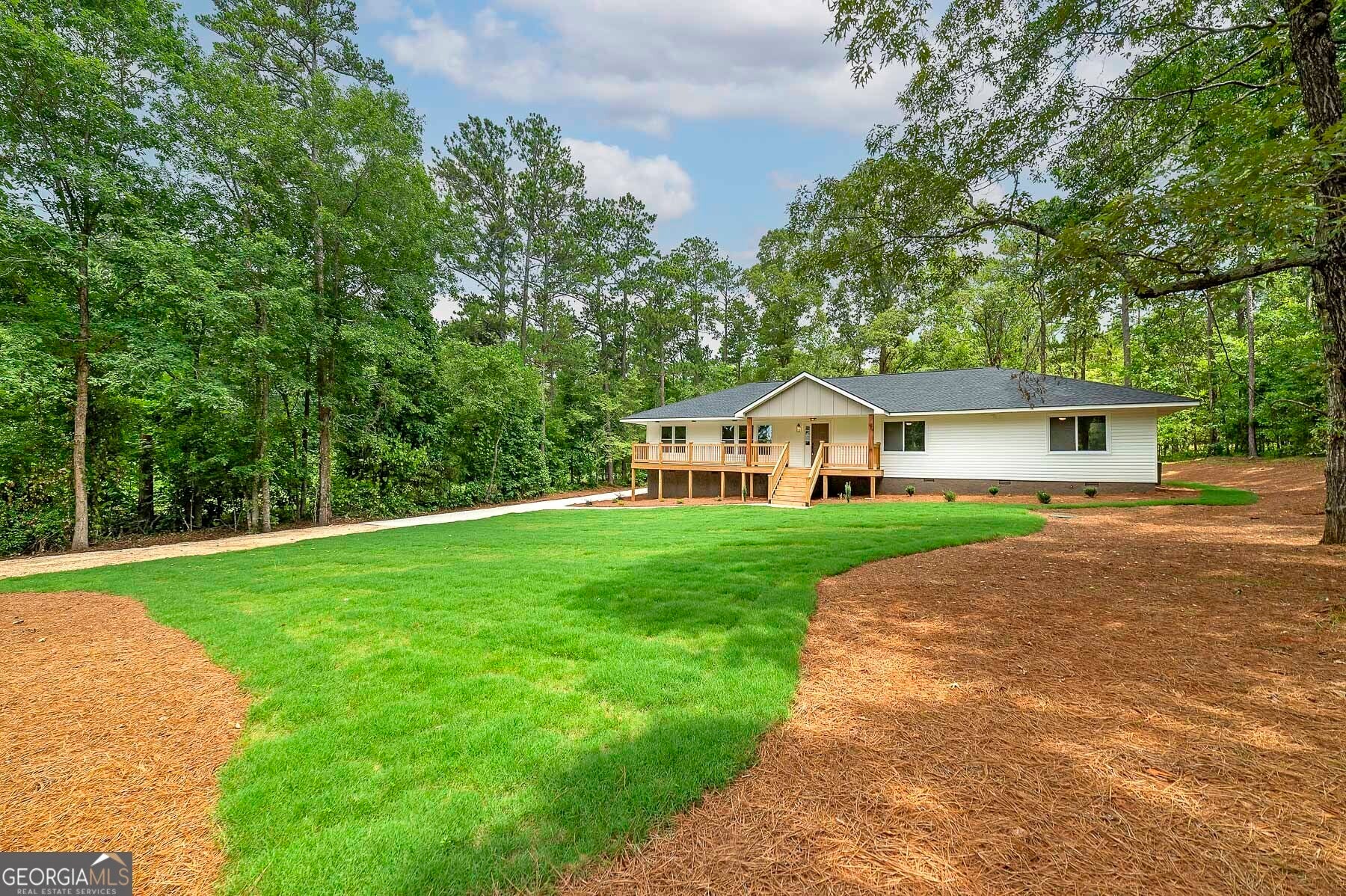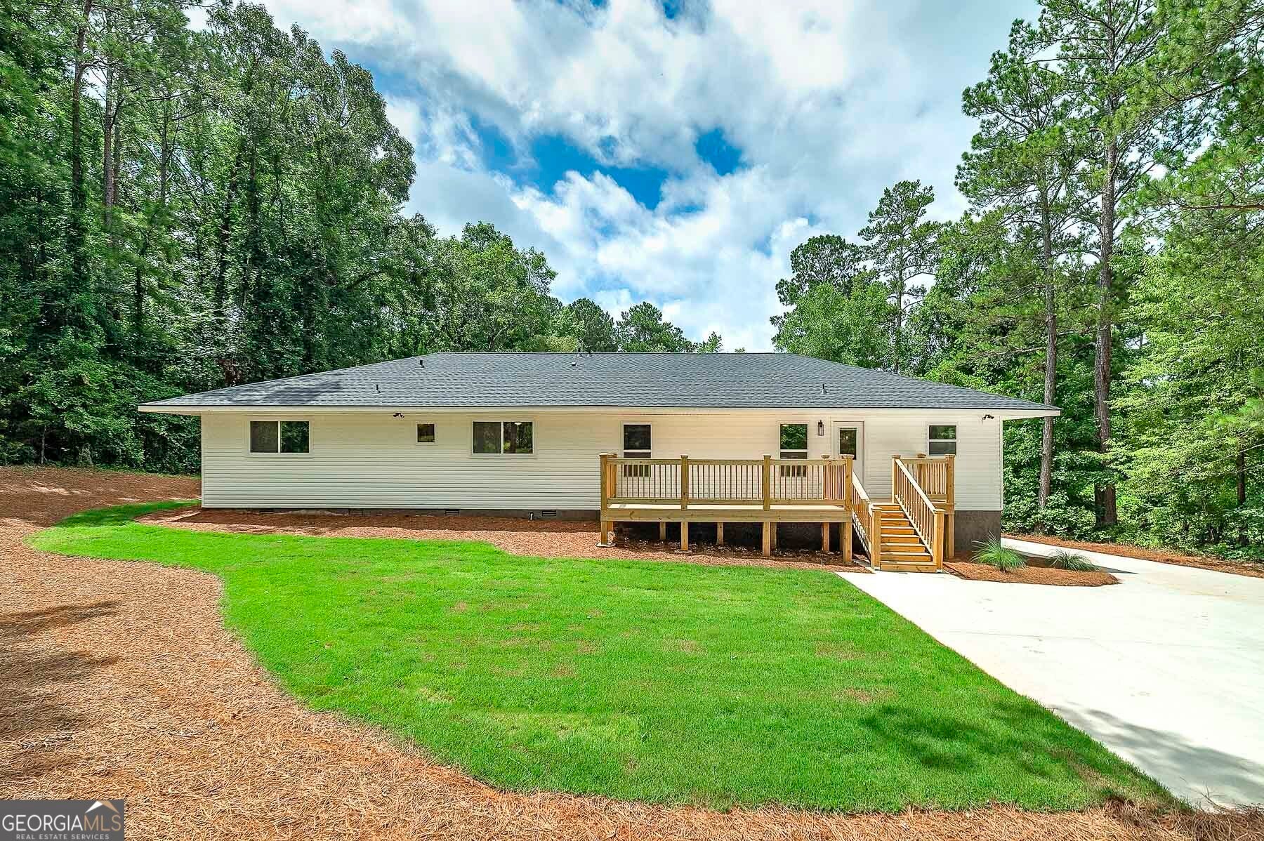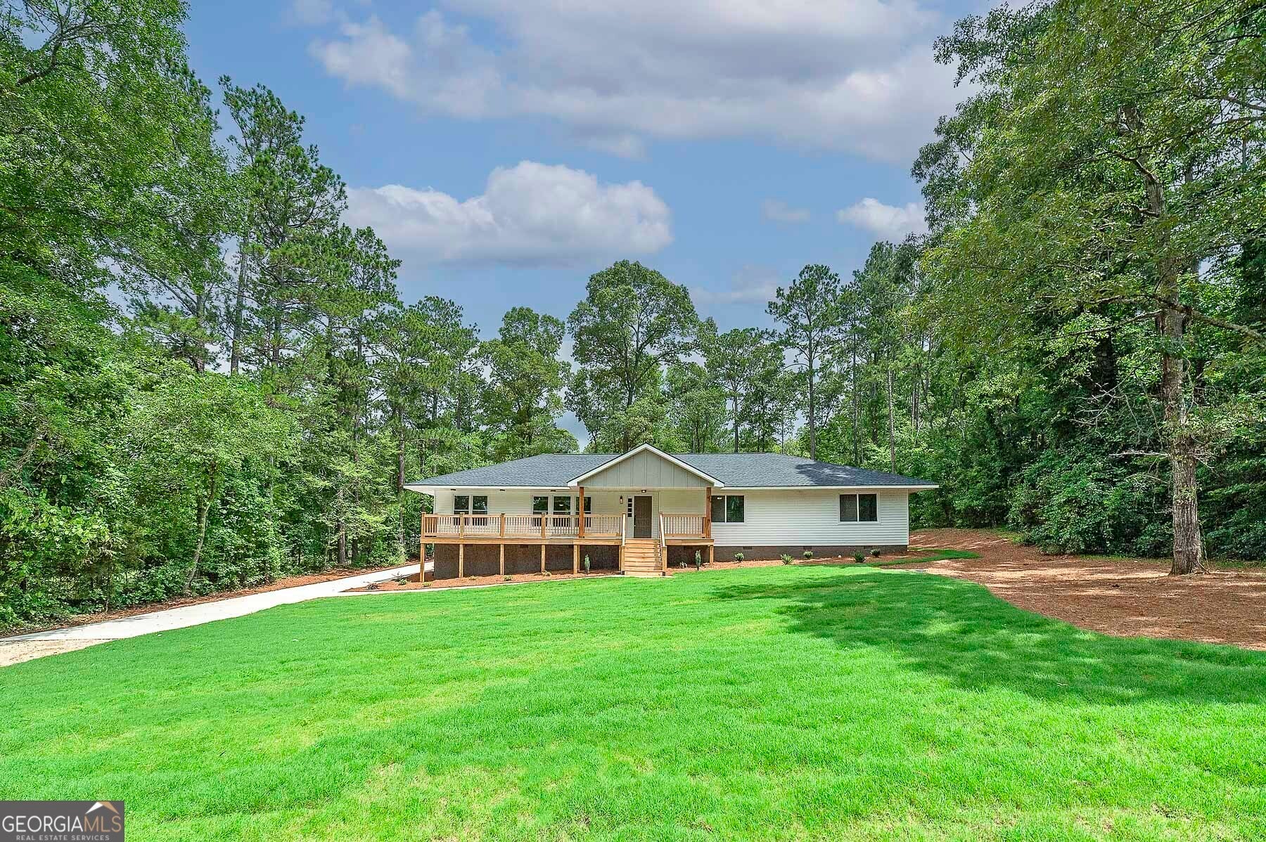 Big Reduction - Priced to Sell! Compare this home to new construction in many ways. Welcome to your dream home, where modern comfort meets serene country living. Nestled on 2.75 private acres, this fully renovated property offers privacy, functionality, and style-just minutes from town but worlds away from the hustle. From the moment you arrive, you'll notice the thoughtful upgrades: a brand-new roof, new concrete driveway, a charming gable over the entry, and a custom-built front porch. Out back, a new deck provides the perfect setting for morning coffee or evening gatherings overlooking the private yard. Inside, every detail has been reimagined for modern living. The expansive kitchen features custom all-wood cabinetry with soft-close drawers, quartz countertops, walk-in pantry, and brand-new stainless appliances. A dedicated office ensures true work-from-home functionality, while the relocated laundry is conveniently positioned near the bedrooms. The primary suite is designed as a retreat. A custom feature wall adds character, the spacious walk-in closet provides ample storage, and the spa-like bath is both beautiful and functional. Enjoy dual comfort-height vanities with quartz counters, a frameless glass shower with designer tile, and a reimagined layout that elevates everyday living. Renovation highlights include: * Fully permitted through Spalding County * All new windows and low-flow plumbing fixtures * New HVAC, plumbing, and electrical systems * New water heater and insulated crawlspace for efficiency * Luxury vinyl plank flooring and upgraded trim throughout * Fully insulated for maximum comfort and energy savings * Fresh sod, landscaping, and cleared backyard for full use of the land Everything is done. Everything is new. Move right in and enjoy the peace of country living with modern amenities already in place. Bonus: Eligible for 100% USDA Financing plus $5,000 in closing costs when using an approved lender!