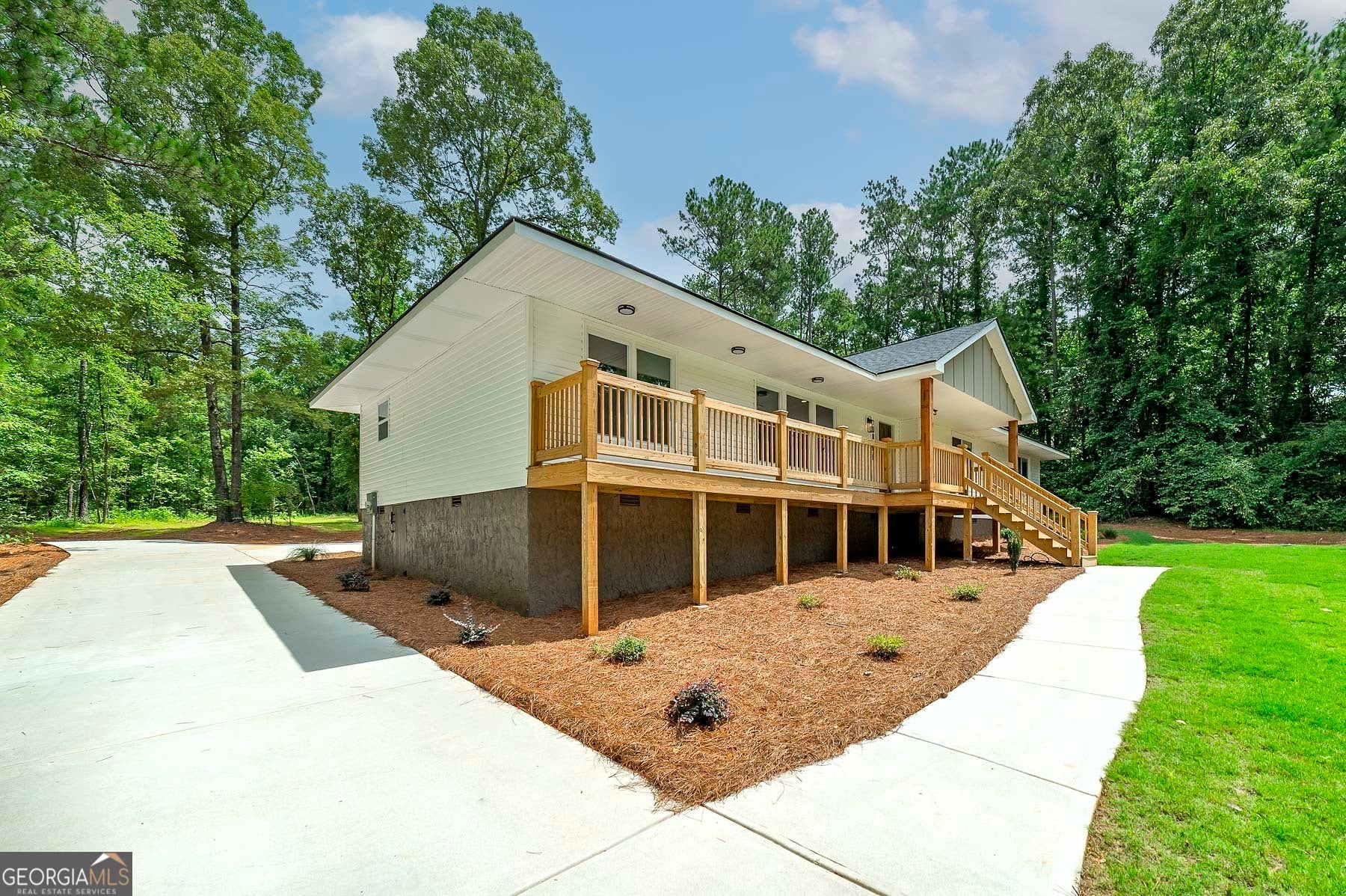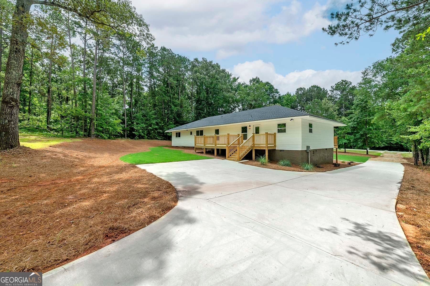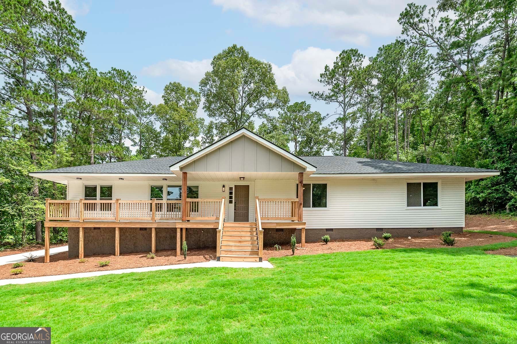 Big Reduction - Priced to Sell! Compare this home to new construction in many ways. Welcome to your dream home, where modern comfort meets serene country living. Nestled on 2.75 private acres, this fully renovated property offers privacy, functionality, and style-just minutes from town but worlds away from the hustle. From the moment you arrive, you'll notice the thoughtful upgrades: a brand-new roof, new concrete driveway, a charming gable over the entry, and a custom-built front porch. Out back, a new deck provides the perfect setting for morning coffee or evening gatherings overlooking the private yard. Inside, every detail has been reimagined for modern living. The expansive kitchen features custom all-wood cabinetry with soft-close drawers, quartz countertops, walk-in pantry, and brand-new stainless appliances. A dedicated office ensures true work-from-home functionality, while the relocated laundry is conveniently positioned near the bedrooms. The primary suite is designed as a retreat. A custom feature wall adds character, the spacious walk-in closet provides ample storage, and the spa-like bath is both beautiful and functional. Enjoy dual comfort-height vanities with quartz counters, a frameless glass shower with designer tile, and a reimagined layout that elevates everyday living. Renovation highlights include: * Fully permitted through Spalding County * All new windows and low-flow plumbing fixtures * New HVAC, plumbing, and electrical systems * New water heater and insulated crawlspace for efficiency * Luxury vinyl plank flooring and upgraded trim throughout * Fully insulated for maximum comfort and energy savings * Fresh sod, landscaping, and cleared backyard for full use of the land Everything is done. Everything is new. Move right in and enjoy the peace of country living with modern amenities already in place. Bonus: Eligible for 100% USDA Financing plus $5,000 in closing costs when using an approved lender!