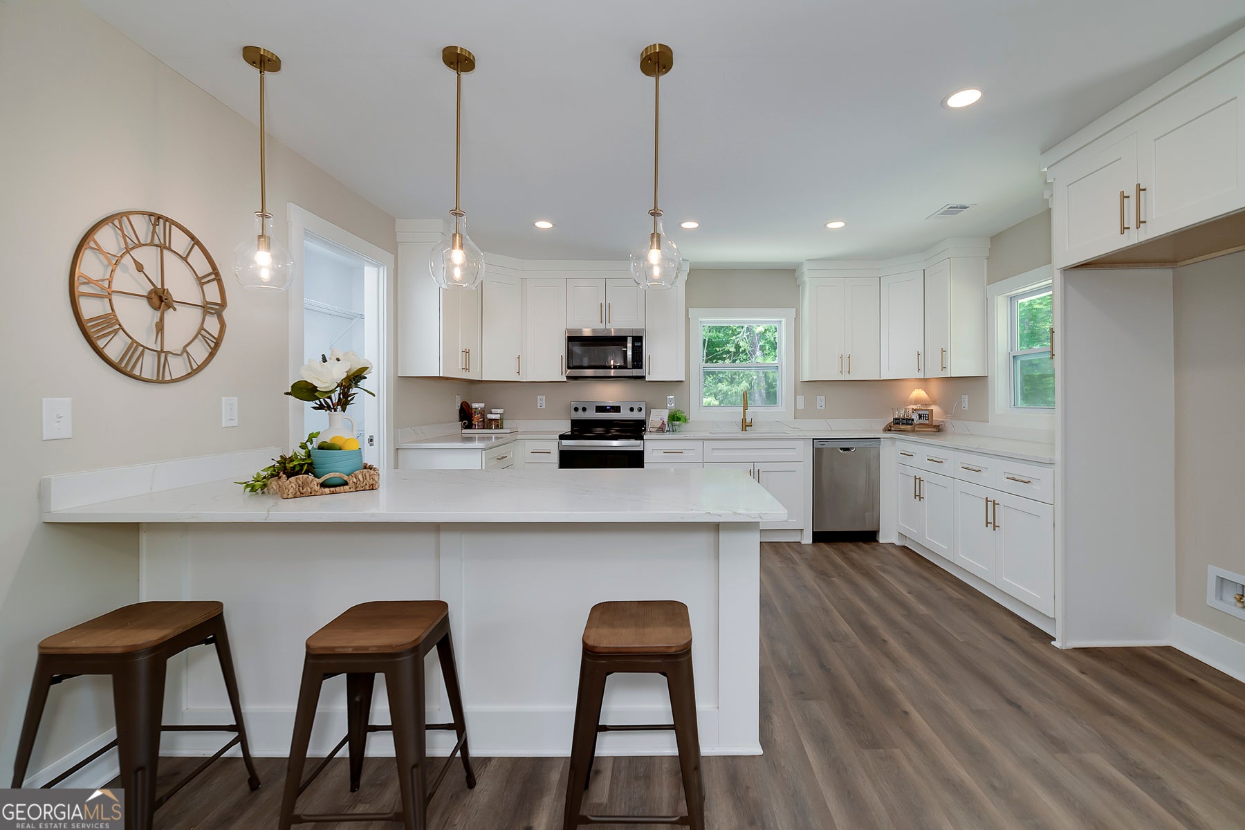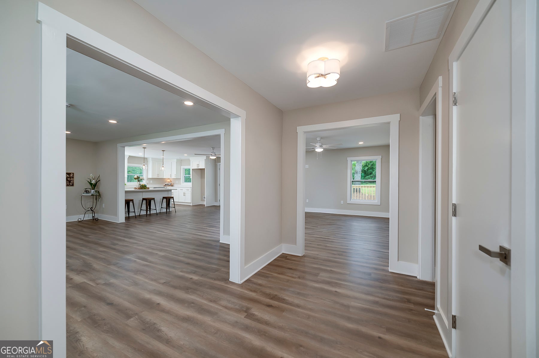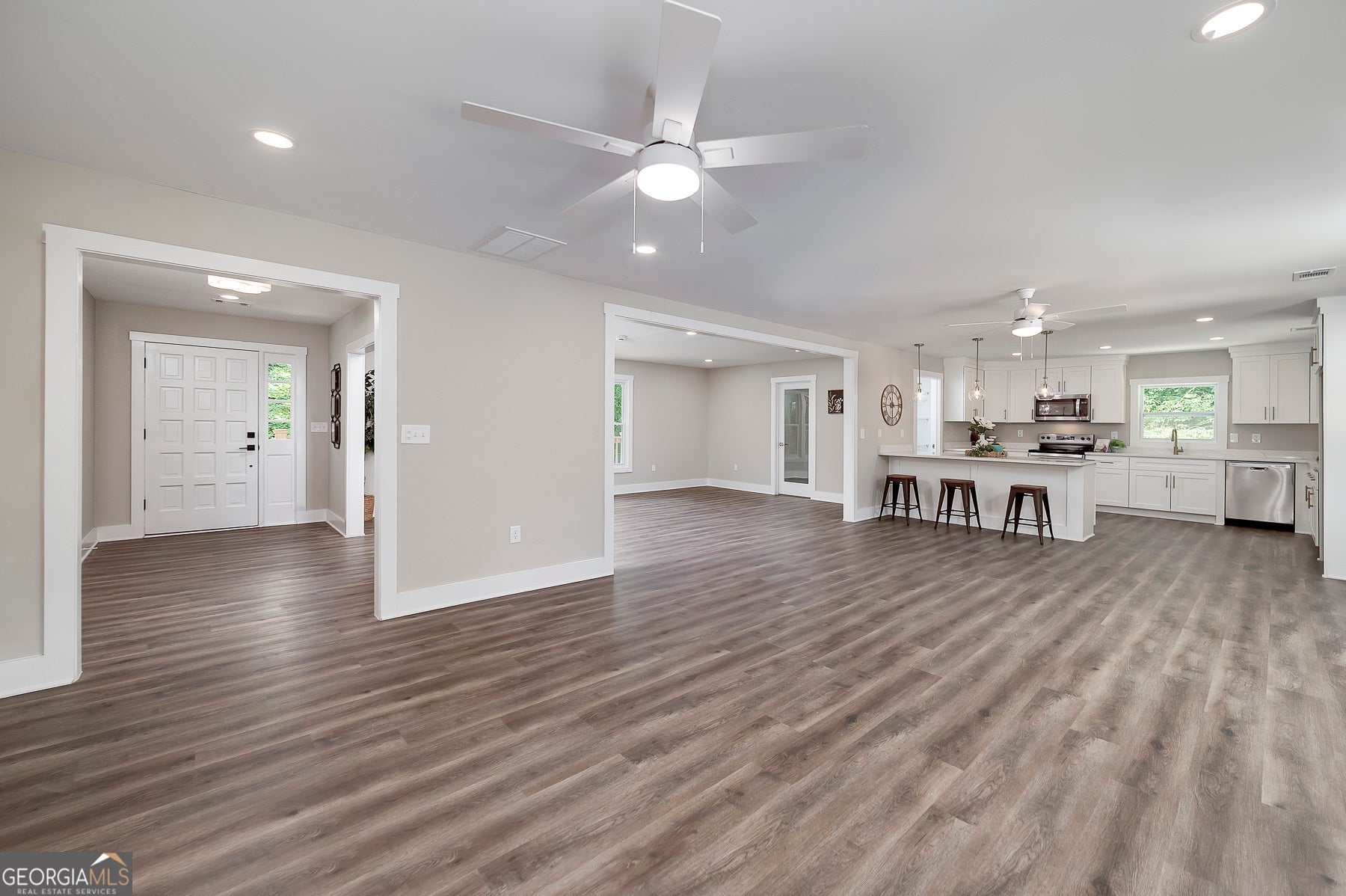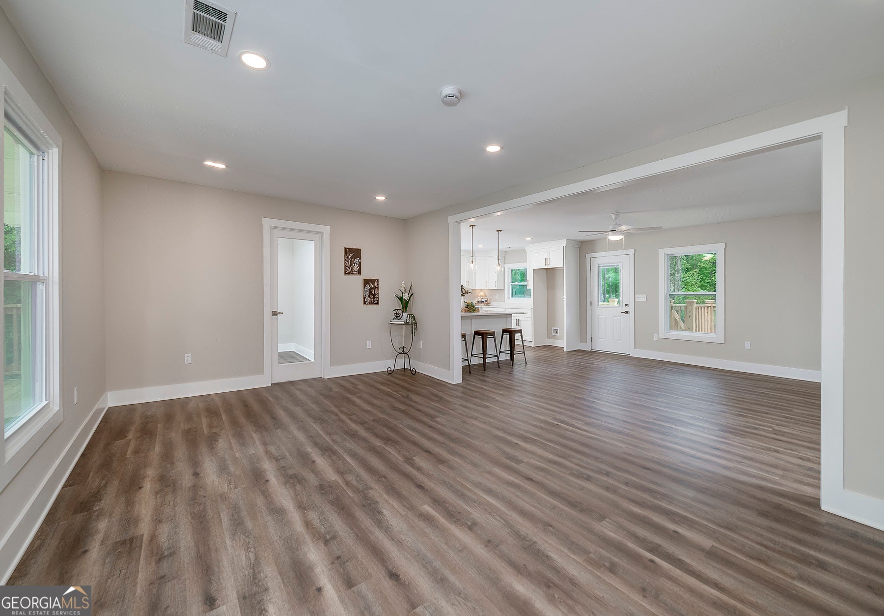 Big Reduction - Priced to Sell! Compare this home to new construction in many ways. Welcome to your dream home, where modern comfort meets serene country living. Nestled on 2.75 private acres, this fully renovated property offers privacy, functionality, and style-just minutes from town but worlds away from the hustle. From the moment you arrive, you'll notice the thoughtful upgrades: a brand-new roof, new concrete driveway, a charming gable over the entry, and a custom-built front porch. Out back, a new deck provides the perfect setting for morning coffee or evening gatherings overlooking the private yard. Inside, every detail has been reimagined for modern living. The expansive kitchen features custom all-wood cabinetry with soft-close drawers, quartz countertops, walk-in pantry, and brand-new stainless appliances. A dedicated office ensures true work-from-home functionality, while the relocated laundry is conveniently positioned near the bedrooms. The primary suite is designed as a retreat. A custom feature wall adds character, the spacious walk-in closet provides ample storage, and the spa-like bath is both beautiful and functional. Enjoy dual comfort-height vanities with quartz counters, a frameless glass shower with designer tile, and a reimagined layout that elevates everyday living. Renovation highlights include: * Fully permitted through Spalding County * All new windows and low-flow plumbing fixtures * New HVAC, plumbing, and electrical systems * New water heater and insulated crawlspace for efficiency * Luxury vinyl plank flooring and upgraded trim throughout * Fully insulated for maximum comfort and energy savings * Fresh sod, landscaping, and cleared backyard for full use of the land Everything is done. Everything is new. Move right in and enjoy the peace of country living with modern amenities already in place. Bonus: Eligible for 100% USDA Financing plus $5,000 in closing costs when using an approved lender!