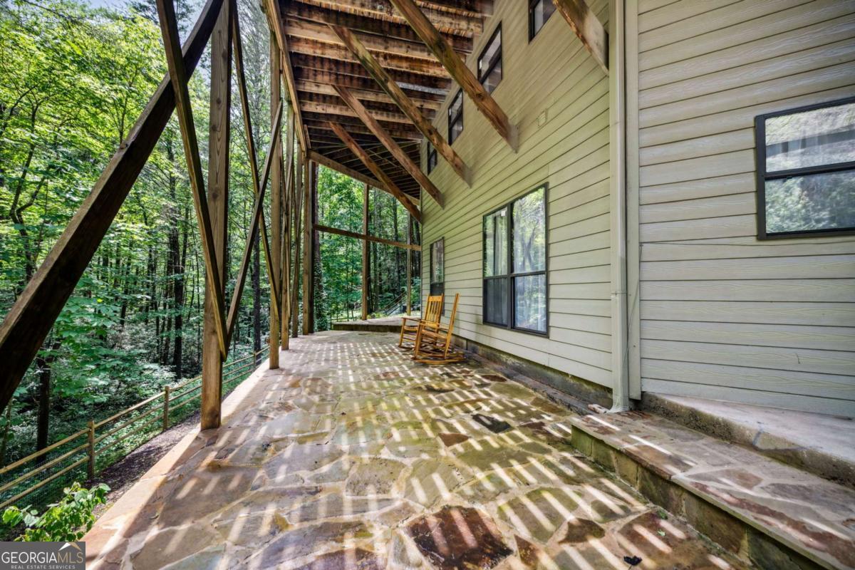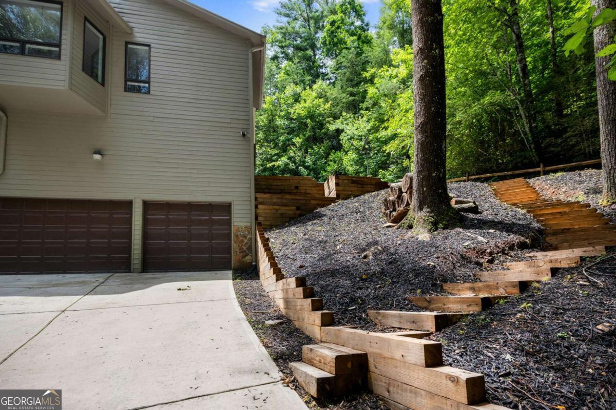 Cascading Trout Stream, private wooded acreage, and stunning architecture-this mountain estate has it all! Nestled on 5.84 acres and backing up to the National Forest, this 5 bed, 5 bath custom tri-level home offers over 6,500 sq ft of extraordinary living space with unmatched privacy and natural beauty. A charming wooden bridge leads you across the stream and into a true mountain retreat. Inside, you'll find a grand vaulted foyer with highlight windows, soaring ceilings, and a unique layout filled with thoughtful design and a chef's kitchen with high-end Gaggenau appliances. The tri-level floor plan provides multiple living areas and flexible space-ideal for a family compound, multigenerational living, or hosting guests. 2nd kitchen in basement and Media Room. Enjoy a 3-car garage, concrete driveway, and the serenity of surrounding water and forest views. With direct access to National Forest trails, this is a mountain biker's dream come true-ride, hike, or explore the Cohutta Forest. A rare opportunity to own an architectural gem in one of North Georgia's most scenic and peaceful settings.