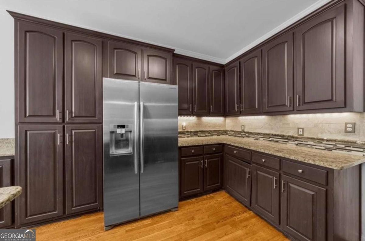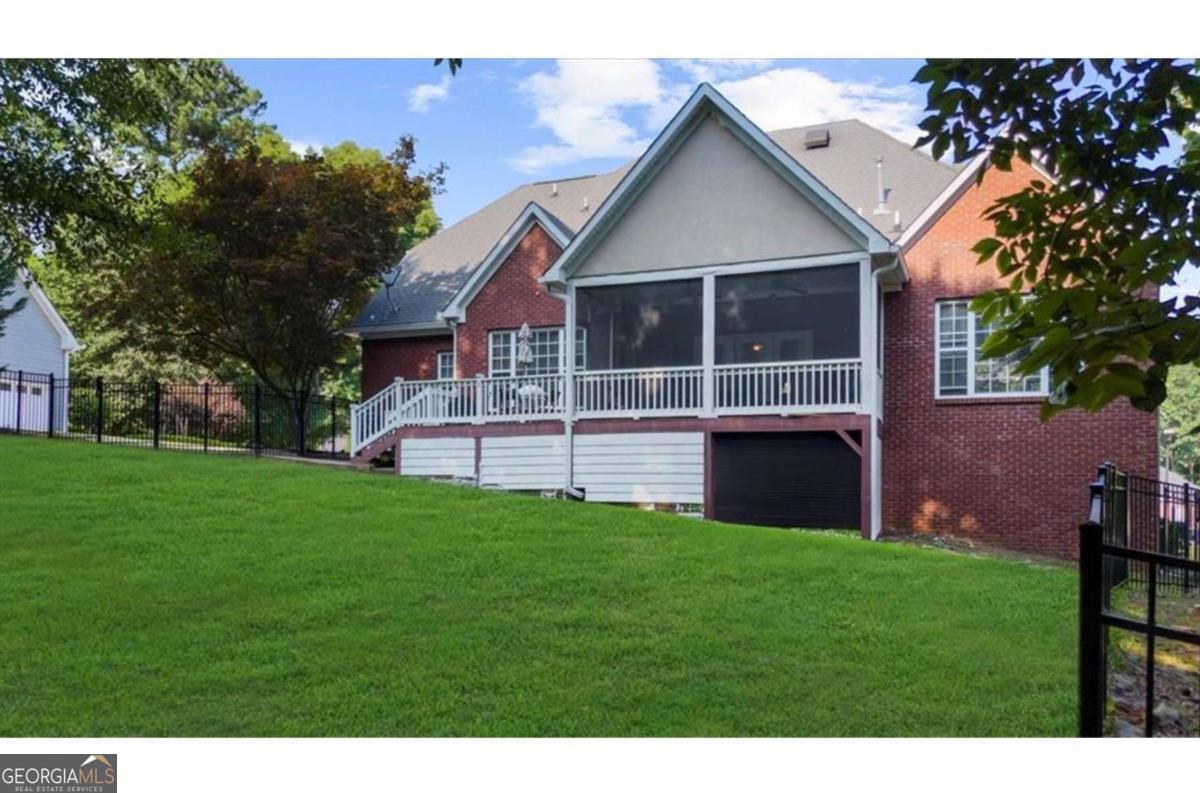 Beautiful 4-Sided Brick Home In A Swim/Tennis Community! This Stunning Home Features A Spacious Master Suite On The Main Level, Along With A Guest Suite For Added Convenience. The Main Floor Boasts Hardwood Floors Throughout, An Eat-In Kitchen, A Separate Dining Room, And An Office For Your Work-From-Home Needs. The kitchen features Granite Counters, Stainless Steel Appliances, Pull Out Garbage Bins, Barstool Seating & More! The Family Room Is Enhanced With Custom-Built-Ins And Features Cozy Gas Logs, Perfect For Relaxing Or Entertaining. An Oversized Laundry Room On The Main Level with an Upstairs Laundry Chute Adds To The Home's Functionality. The Garage Is Conveniently Located At The Kitchen Level For Easy Access. Upstairs, You'll Find Two Secondary Bedrooms And A Versatile Bonus Room, Providing Ample Space For Family And Guests. The Partially Finished Basement Offers A Large Workshop And Additional Storage Area, Ideal For Hobbies Or Extra Belongings. Ample Parking Space Is Available For Family And Visitors. The Large Backyard Is Fully Fenced With Wrought Iron, Perfect For Outdoor Activities And Entertaining, Featuring Screened-in Porch & Grilling Area. Located Just Minutes From I-20, Top Schools, Shopping, The Airport, And More, This Home Combines Comfort, Convenience, And Community Amenities In A Desirable Neighborhood.