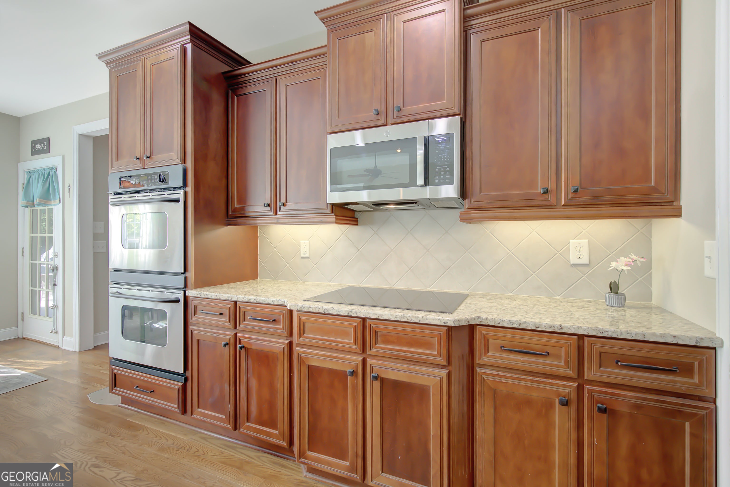 - AppliancesDishwasher, Gas Water Heater, Microwave, Double Oven, Cooktop, Stainless Steel Appliance(s)