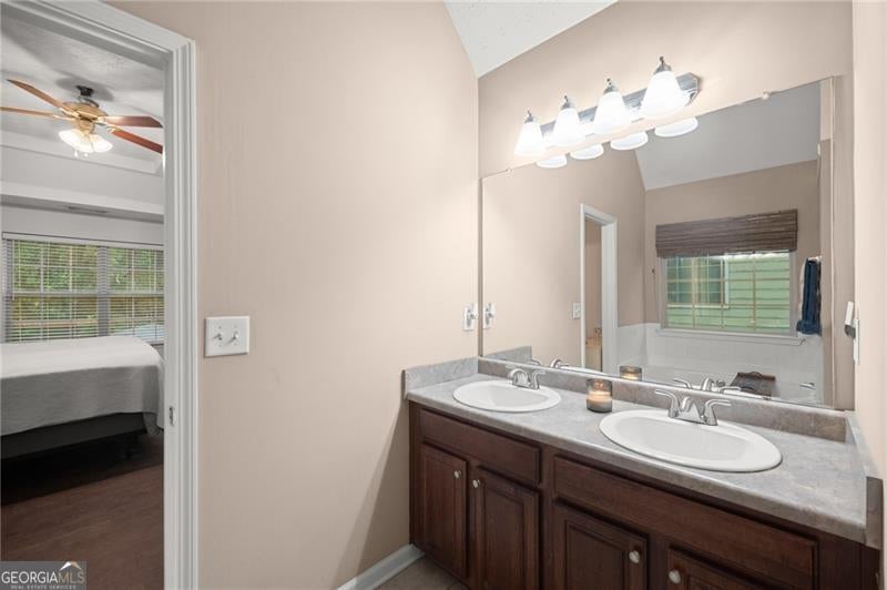 - Interior FeaturesDouble Vanity, High Ceilings, Pulldown Attic Stairs, Vaulted Ceiling(s), Walk-In Closet(s)