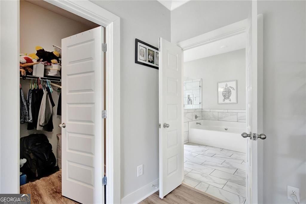 - Interior FeaturesWalk-In Closet(s), High Ceilings, Master On Main Level, Pulldown Attic Stairs, Separate Shower, Soaking Tub, Tile Bath