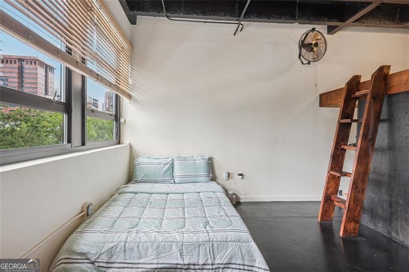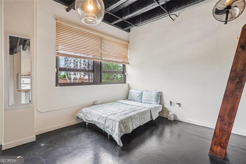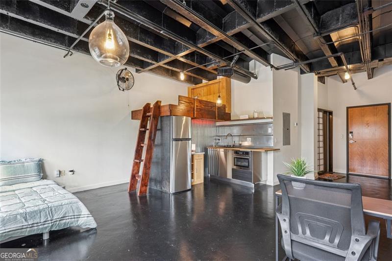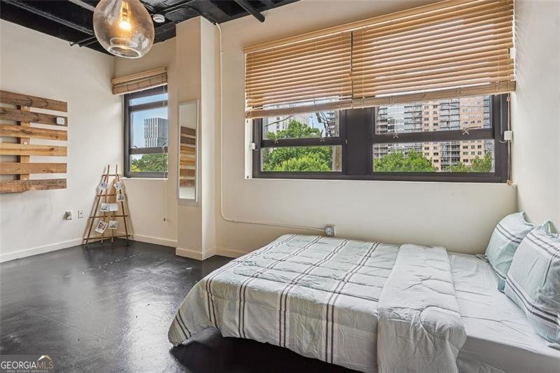 Modern and stylish loft in the heart of Midtown Atlanta, tucked away at the back of the Peachtree Lofts building for ultimate privacy and no street noise. This quiet industrial-style studio showcases exposed concrete walls, high ceilings, and an open-concept layout that blends character with functionality. Enjoy the convenience of an in-unit washer and dryer, a garbage chute on the same floor, and direct access to parking and the dog park. Includes one covered parking space with bike rack. Building amenities include 24/7 concierge, gym, pool, dog park, outdoor dining and grilling area, renovated lobby and elevators, and high-speed internet with Google Fiber and Xfinity. Low HOA fees and guest parking available on 7th Street with concierge assistance. Entrance next to Blick Art Store. All within steps of Midtown's best dining and nightlife, The Fox Theatre, Piedmont Park, the Beltline, and more. A distinctive home for those with discerning taste. FHA approved! Schedule your private showing today!