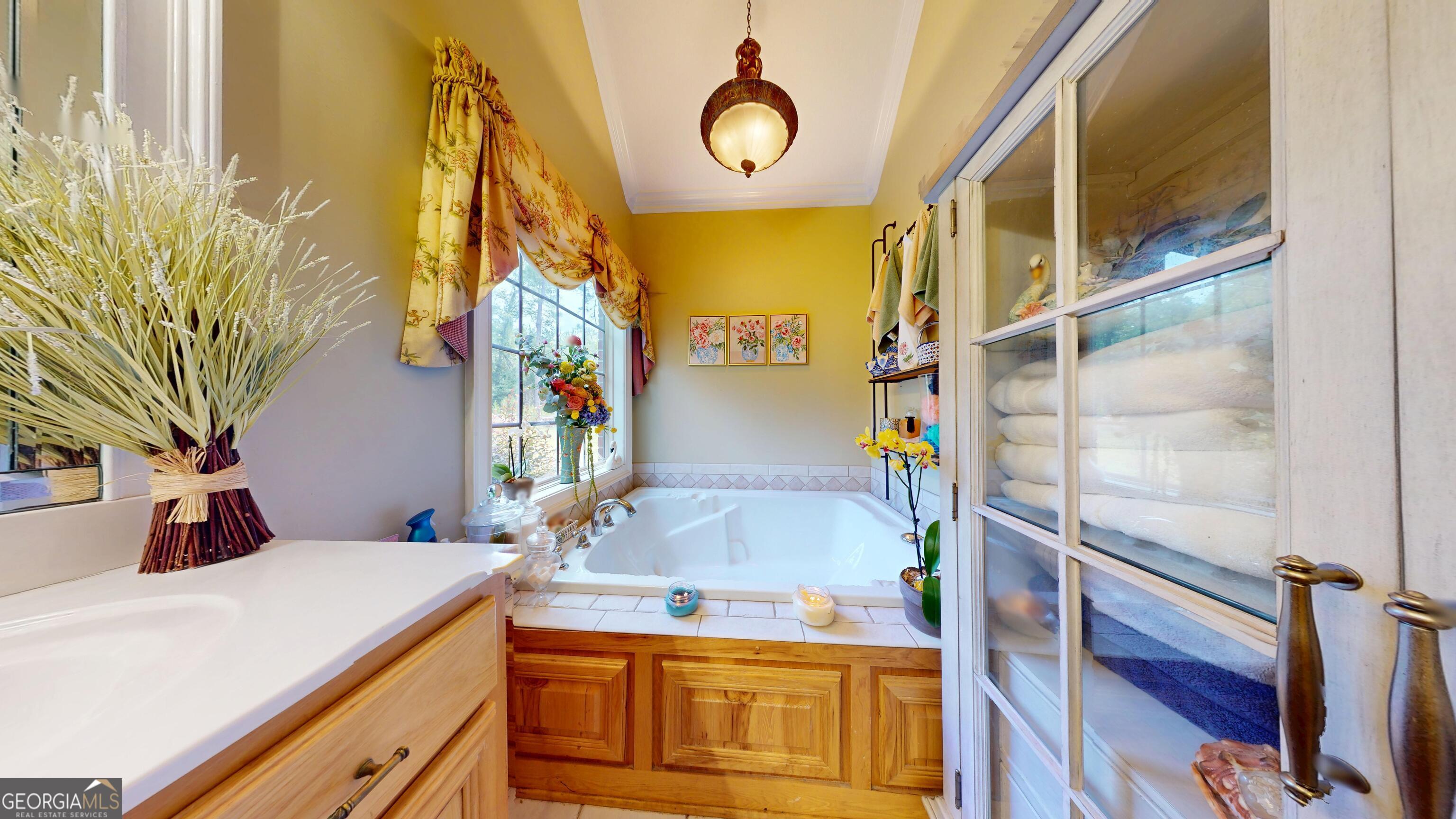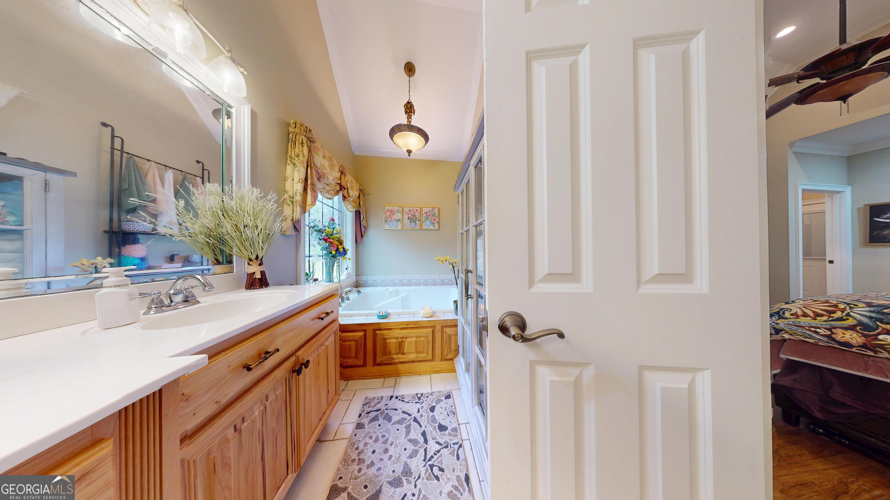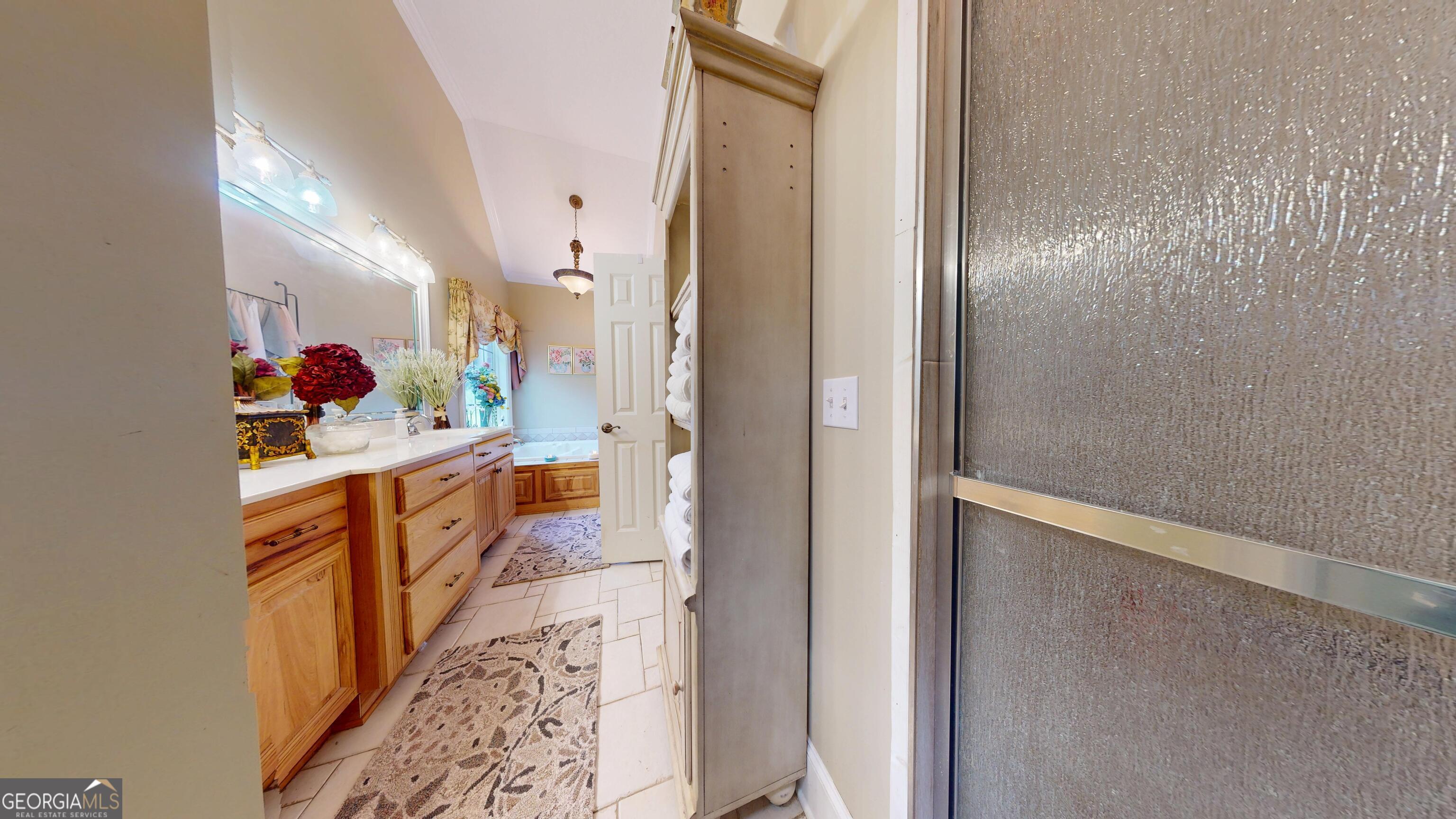 - Interior FeaturesDouble Vanity, High Ceilings, Master On Main Level, Separate Shower, Soaking Tub, Tile Bath, Vaulted Ceiling(s), Walk-In Closet(s)