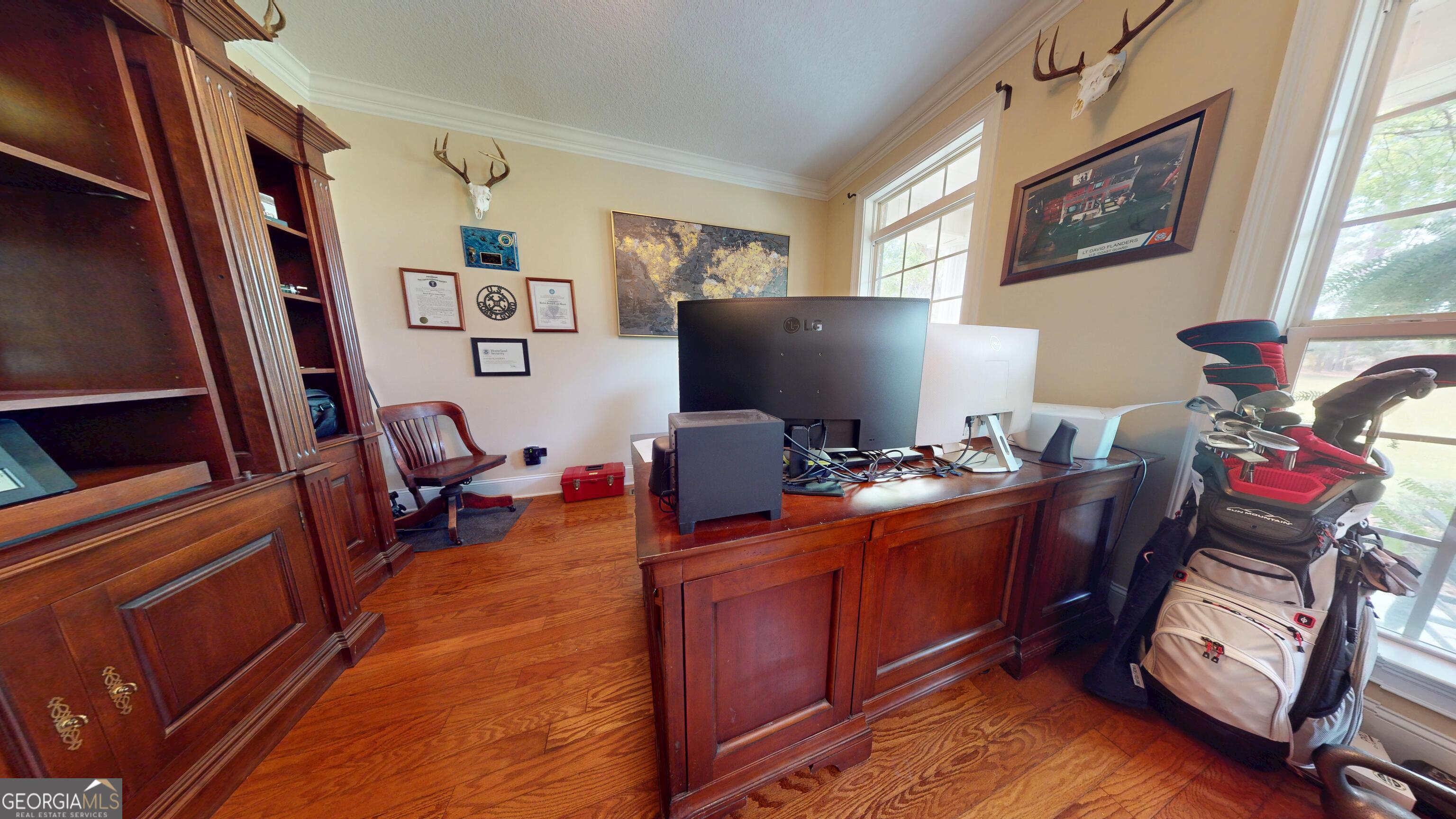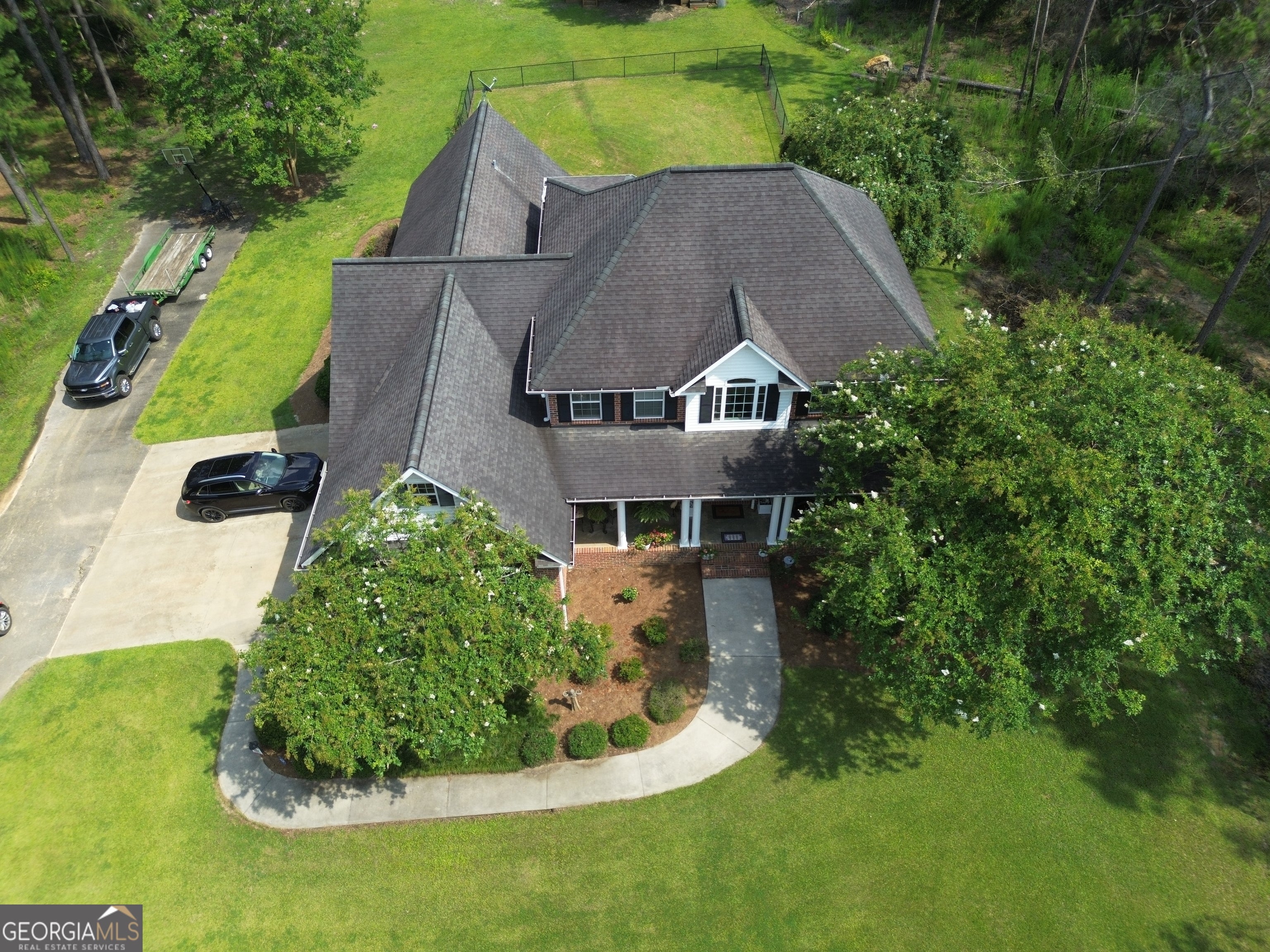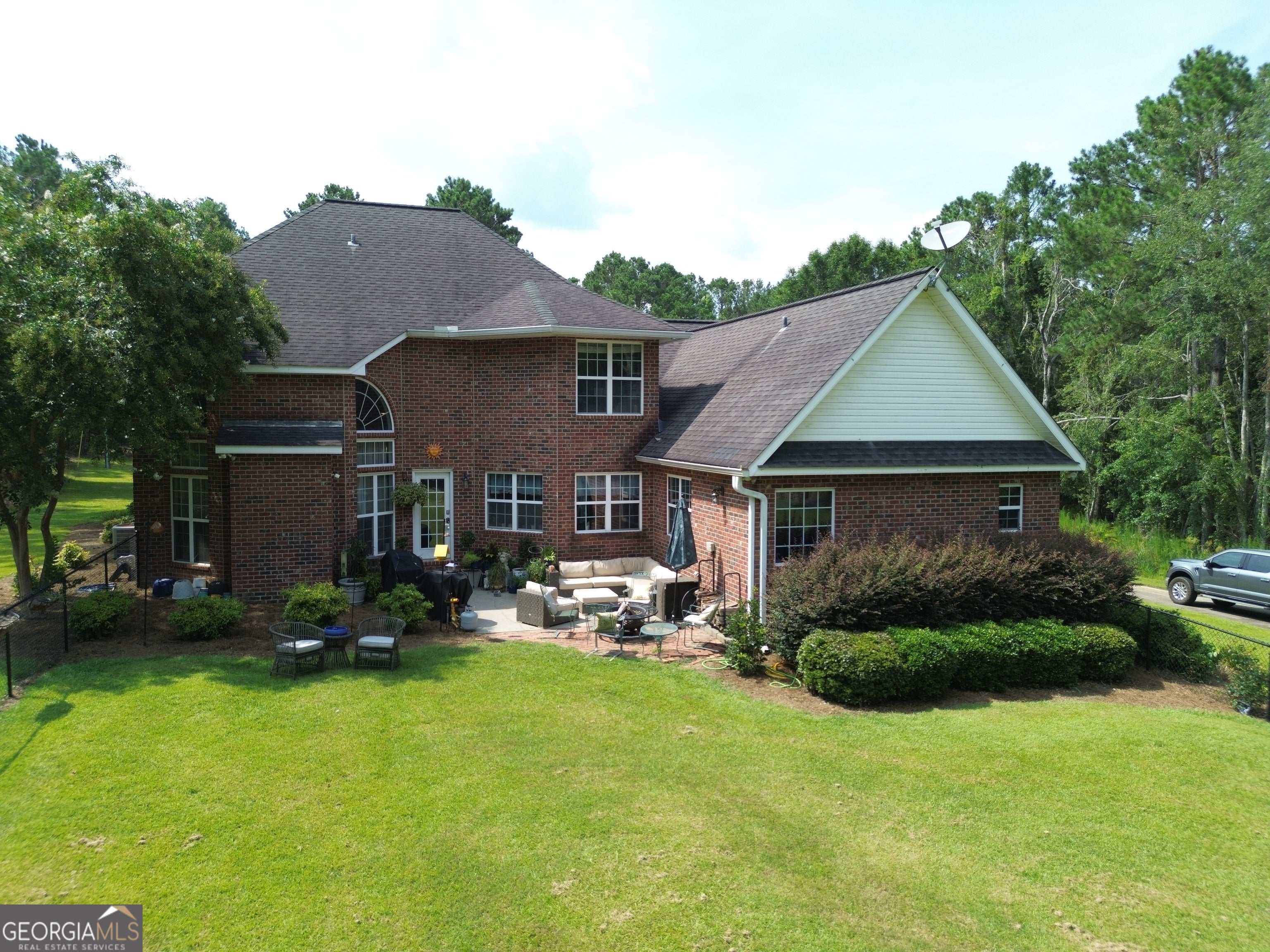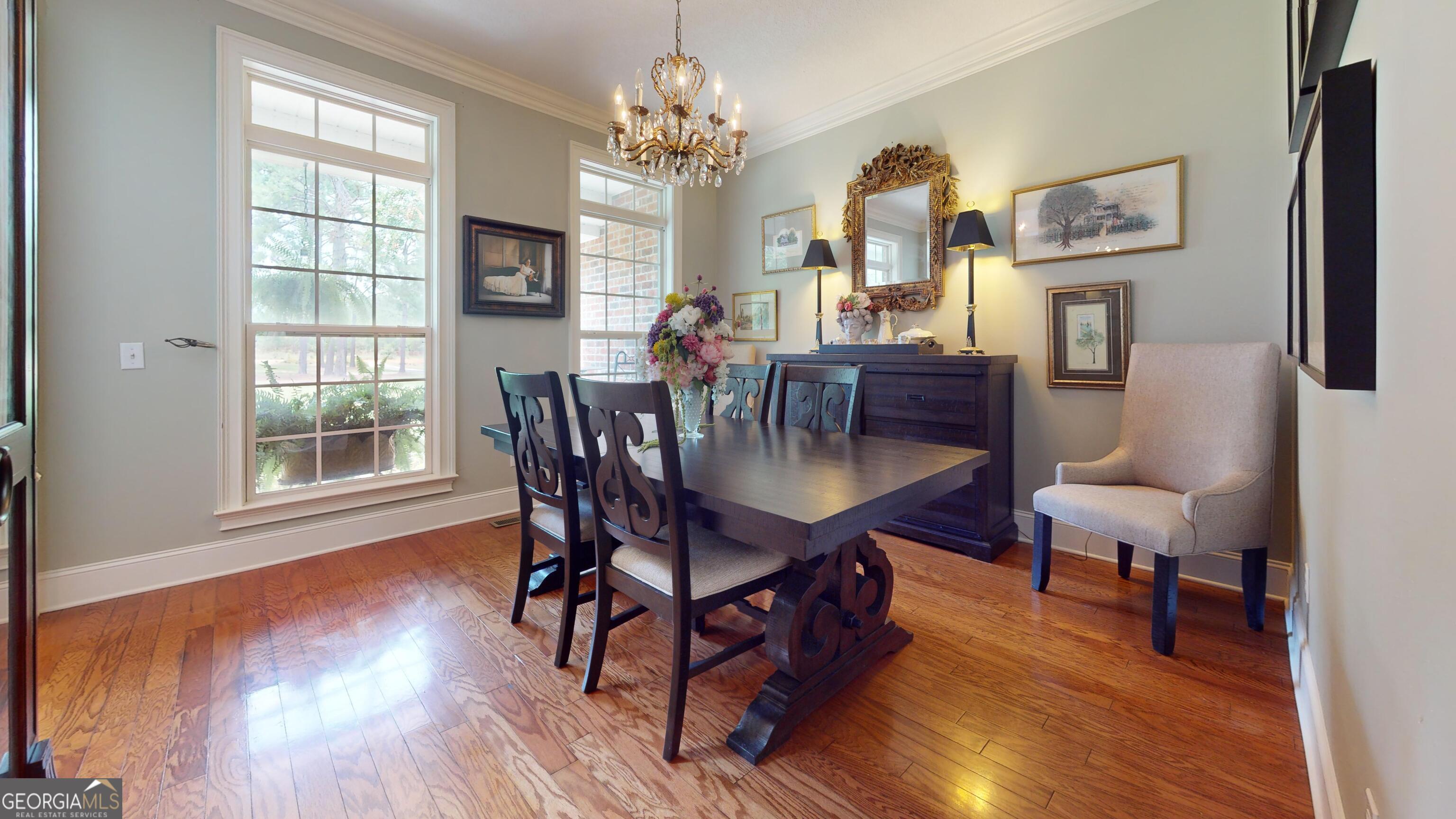 Discover unparalleled elegance and comfort in this stunning 2-story brick four-bedroom, three-and-a-half bathroom residence, ideally situated on a 3.79-acre lot. This high-end home offers a sophisticated blend of classic design and modern amenities, ideal for discerning buyers seeking spacious living and serene surroundings. Step inside to discover a meticulously maintained home boasting an abundance of natural light and exquisite details. The heart of the house, a beautifully appointed gourmet kitchen, features rich wood cabinetry, ample counter space, and integrated appliances, seamlessly flowing into a charming breakfast nook and formal dining room. The spacious living room offers a welcoming atmosphere, complete with high ceilings, large windows, and a stately fireplace, making it perfect for entertaining or relaxing. Retreat to the expansive master bedroom, a true sanctuary with vaulted ceilings and ample space for a sitting area. The accompanying en-suite bathroom is a spa-like oasis featuring a double vanity, ample counter space, and elegant fixtures. This home offers flexible living with versatile bonus spaces, including a large bonus room with a unique sloped ceiling, perfect for a media room, game room, or private retreat, and an additional dedicated office/studio space, providing an ideal environment for work or creative pursuits. Enjoy the privacy and tranquility of your expansive 3.79-acre property, a lush outdoor oasis offering plenty of space for outdoor activities, gardening, or simply taking in the natural beauty. Additional highlights include gleaming hardwood floors and classic tile throughout, thoughtfully designed architectural details and custom finishes, ample storage throughout, and an attached two-car garage with additional space for a golf cart or side-by-side. This exceptional property presents a rare opportunity to own a prestigious home in a private, natural setting, while remaining conveniently located. Schedule your private showing today and experience the luxury and charm of this magnificent property. Call Tanya Lane at 912-536-1454.