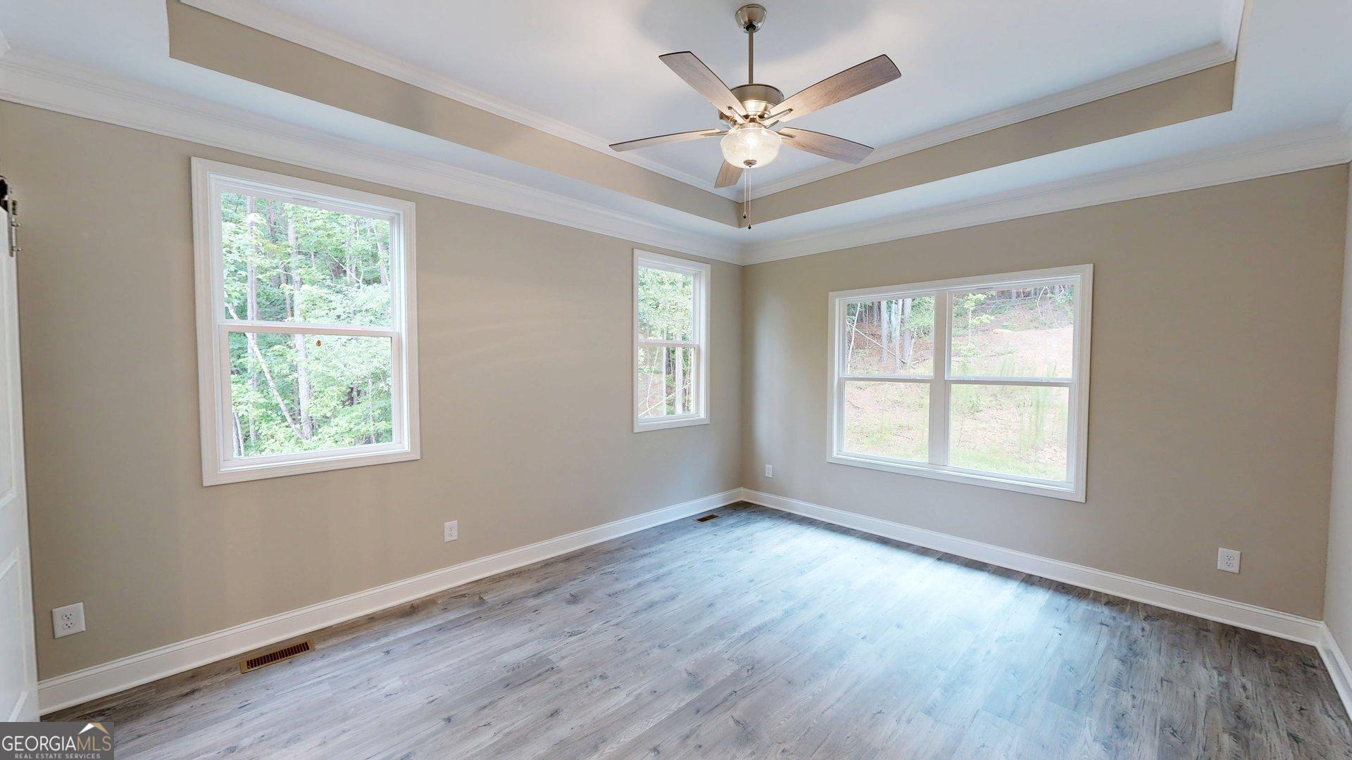 - Interior FeaturesDouble Vanity, High Ceilings, Master On Main Level, Pulldown Attic Stairs, Separate Shower, Split Bedroom Plan, Tile Bath, Tray Ceiling(s), Walk-In Closet(s)